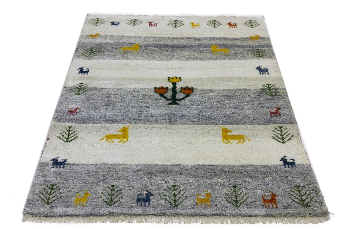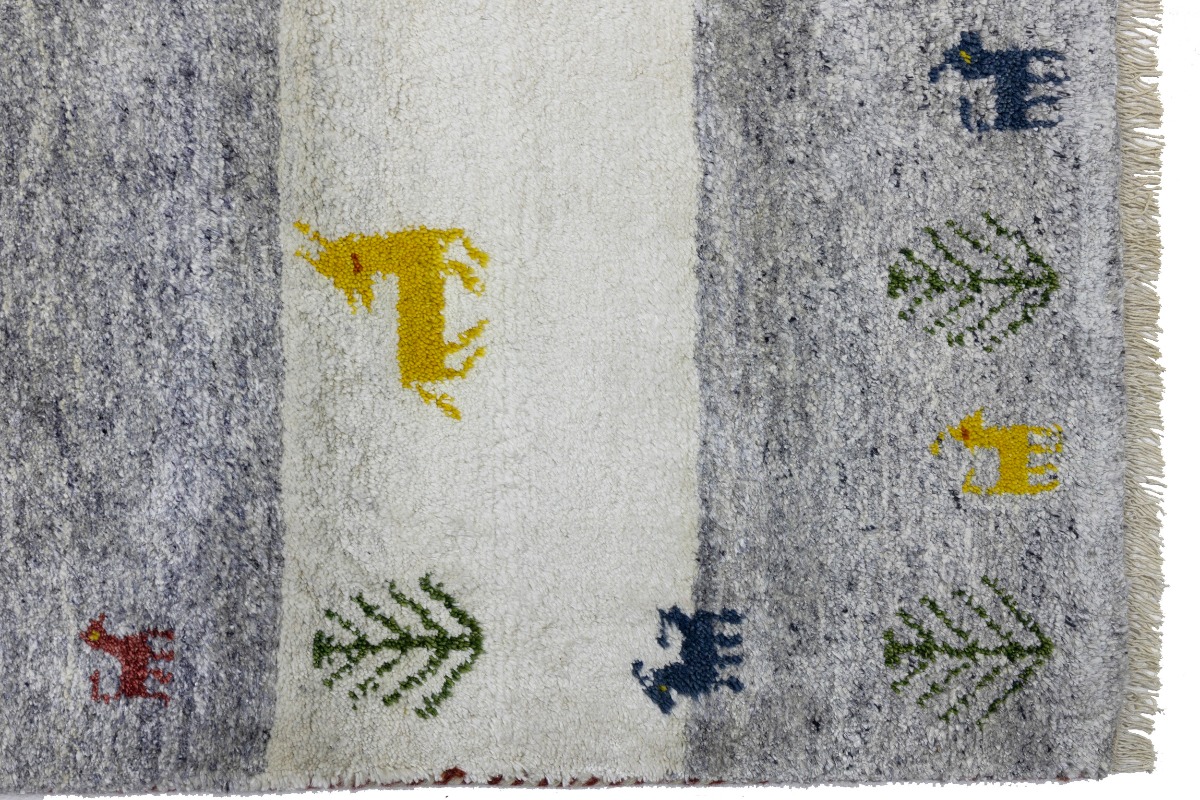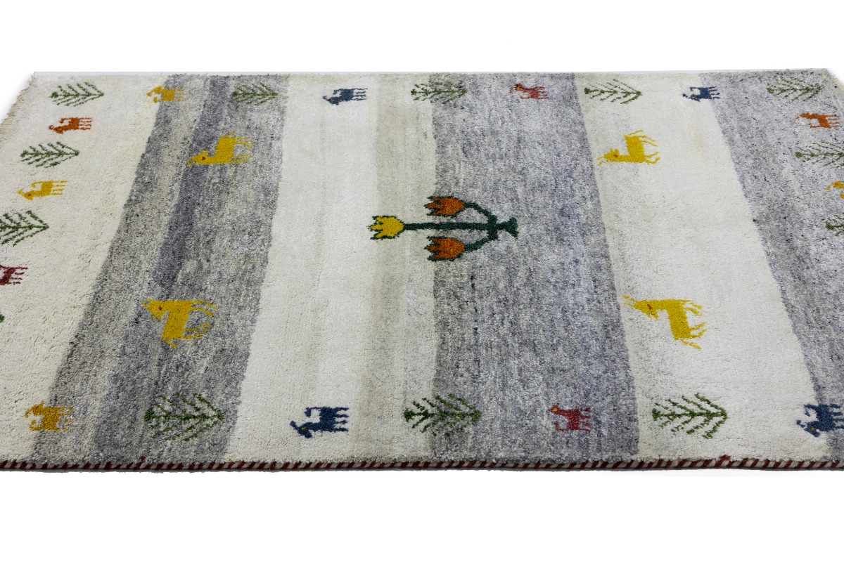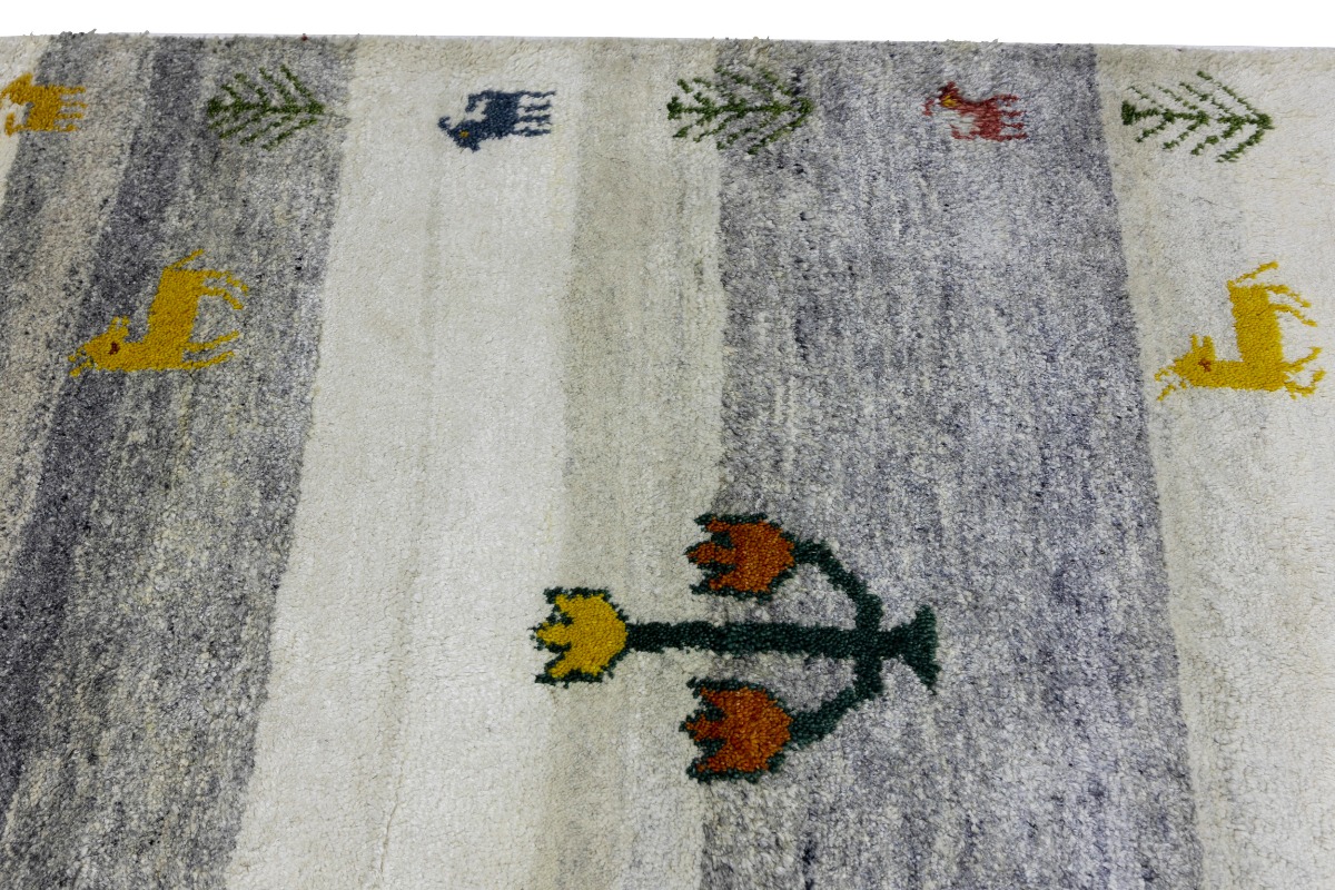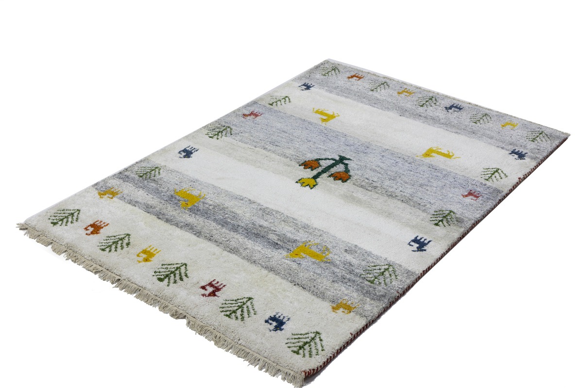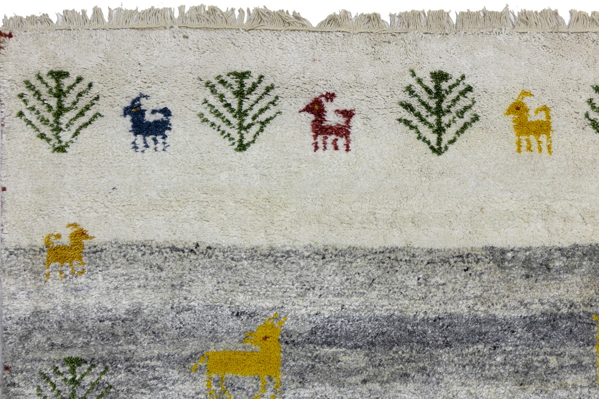 Cream Gray Pictorial Tribal 4X6 Indo-Gabbeh Oriental Rug