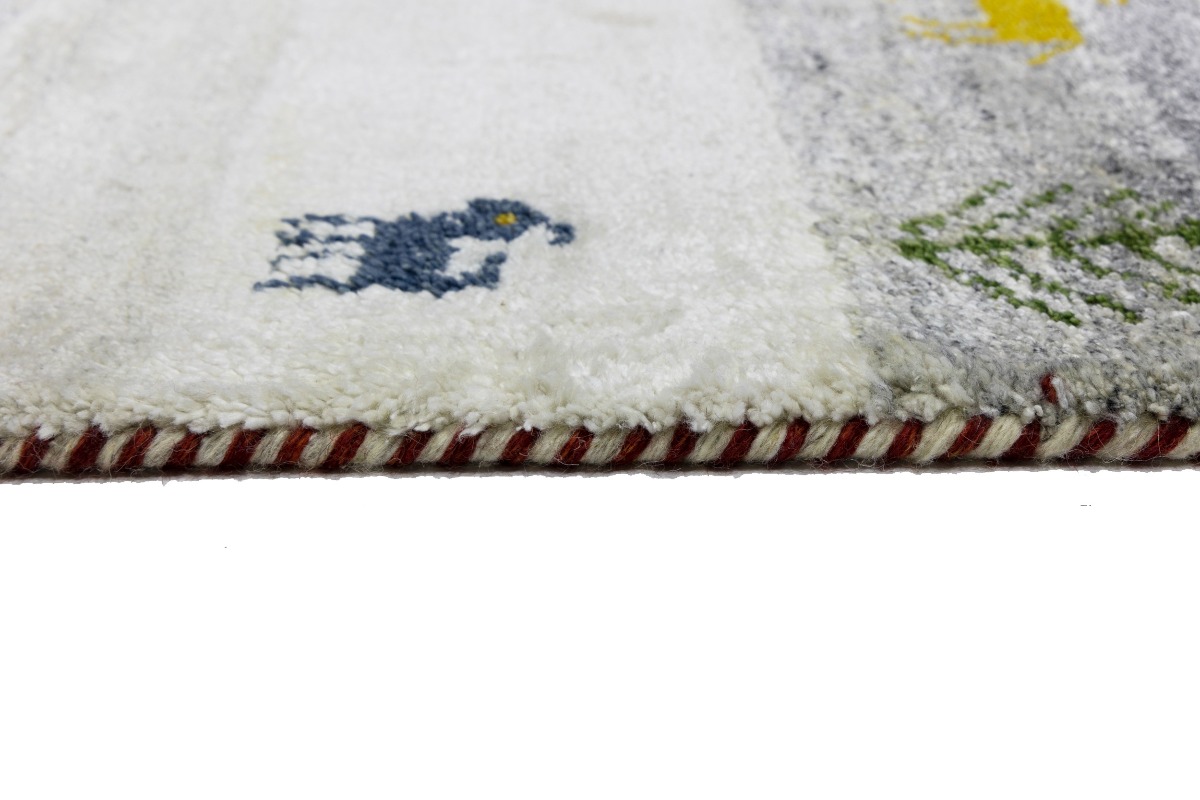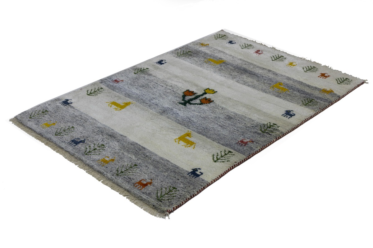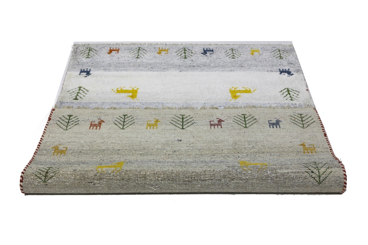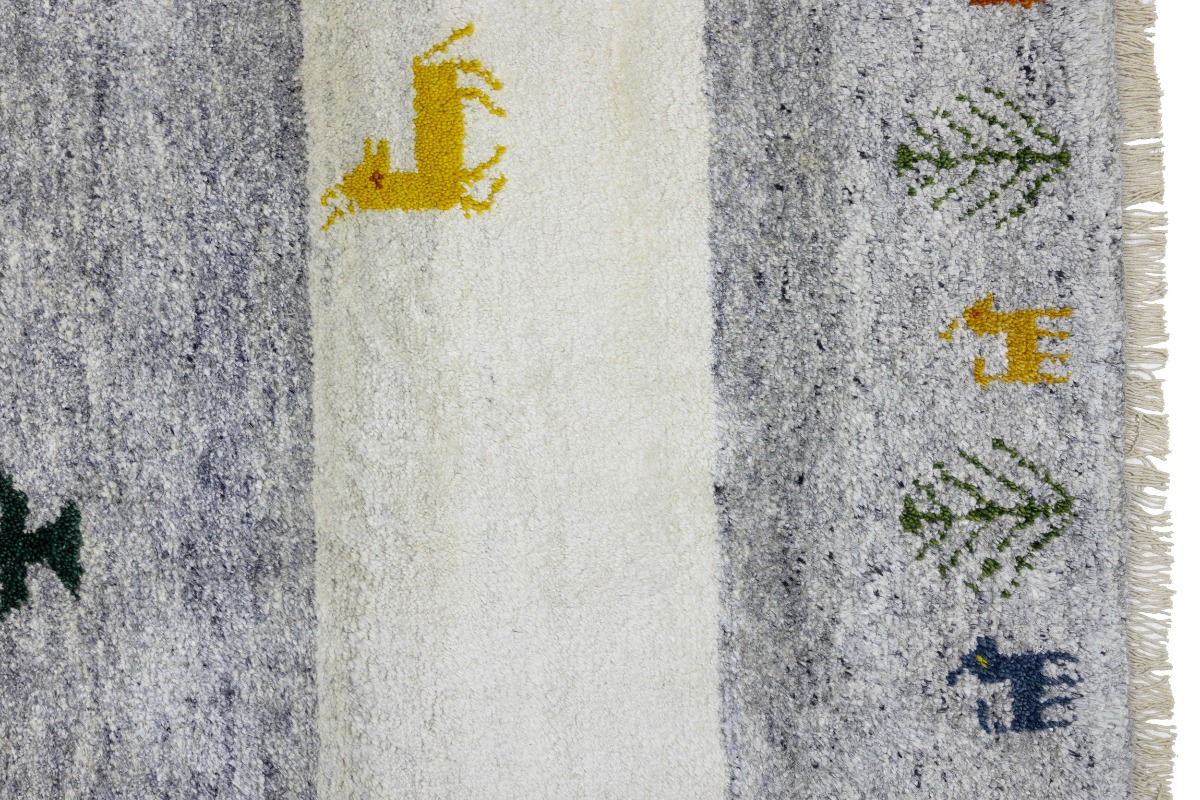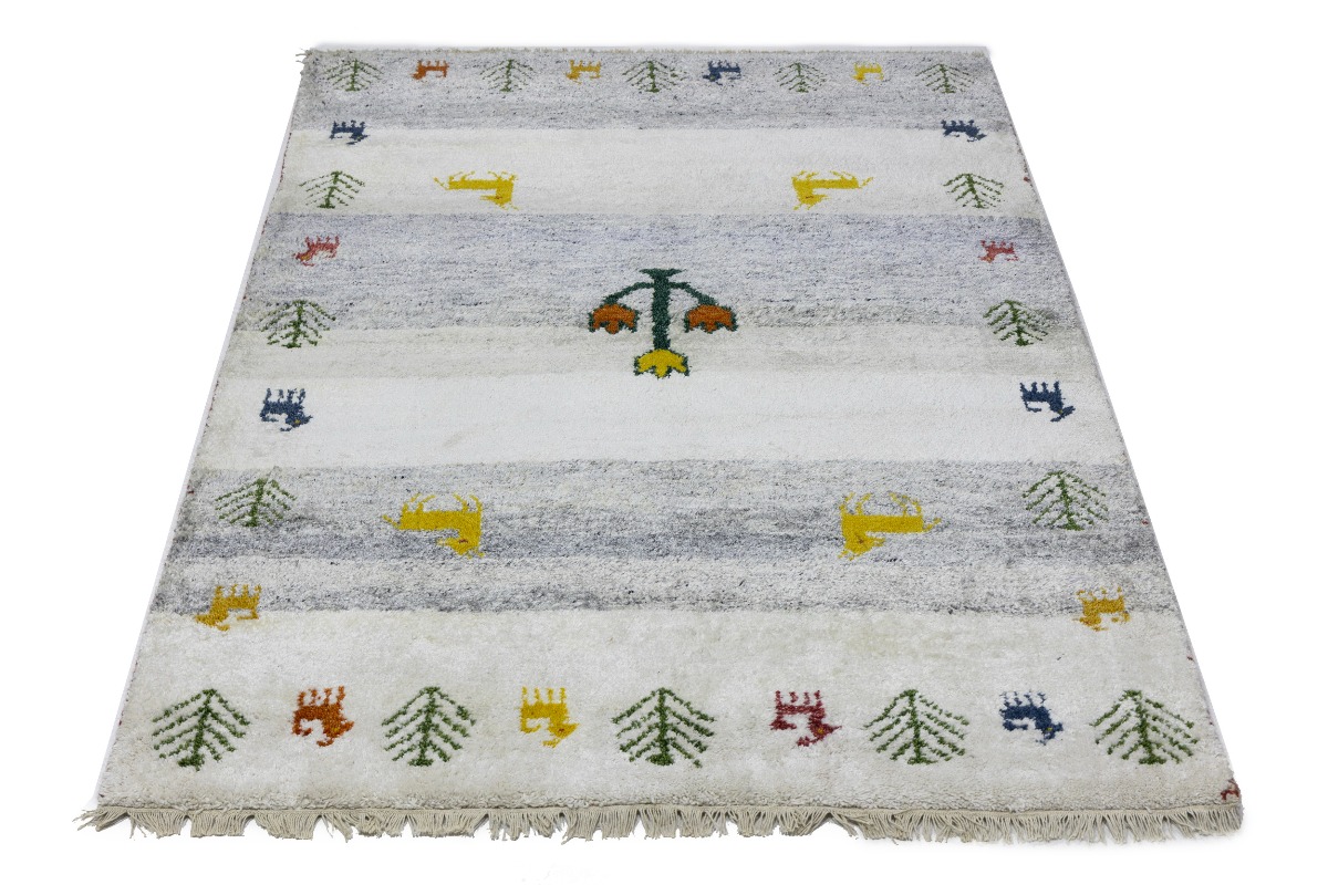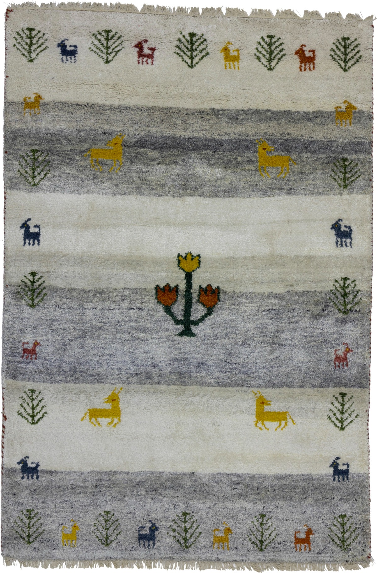 Cream Gray Pictorial Tribal 4X6 Indo-Gabbeh Oriental Rug