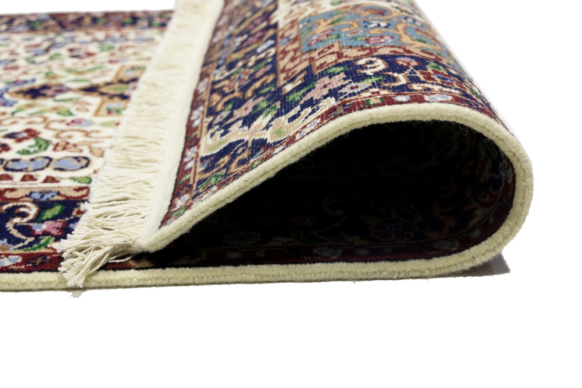This authentic 3X10 cream new Oriental runner was masterly knotted by the hands of weavers inspired by a variety of wonderful artistic designs, to recreate the aged look of the original piece with a richness of color and intricate patterned background field. What set this vintage style Oriental area runner from the others are the material and dye used (wool pile and cotton foundation), knot count, antique designs, fantastic grades, and its regional historical connection: it has deep roots, from the story of the people who produced it to the meaning of the symbols and colors displayed across its canvas that have been praised for centuries. This Indian home décor carpet will be completely cozy and inviting that never will go out of style! Also, this Oriental rug would be among your most valuable treasures, it is a great investment that accrues value over time, and it will last for generations because was woven with high-quality, all-natural wool. Environmentally friendly, opulent yet affordable; this runner will give you a thorough amount of character to help define your living space with luxury and warmth that will capture the eyes and attention of your audience (homeowners, designers, decorators, family and friends). OT-8214
