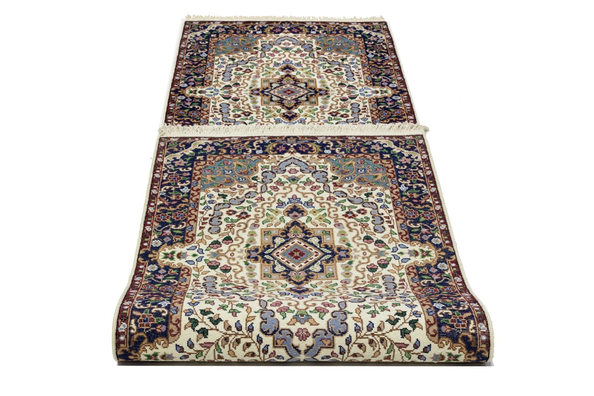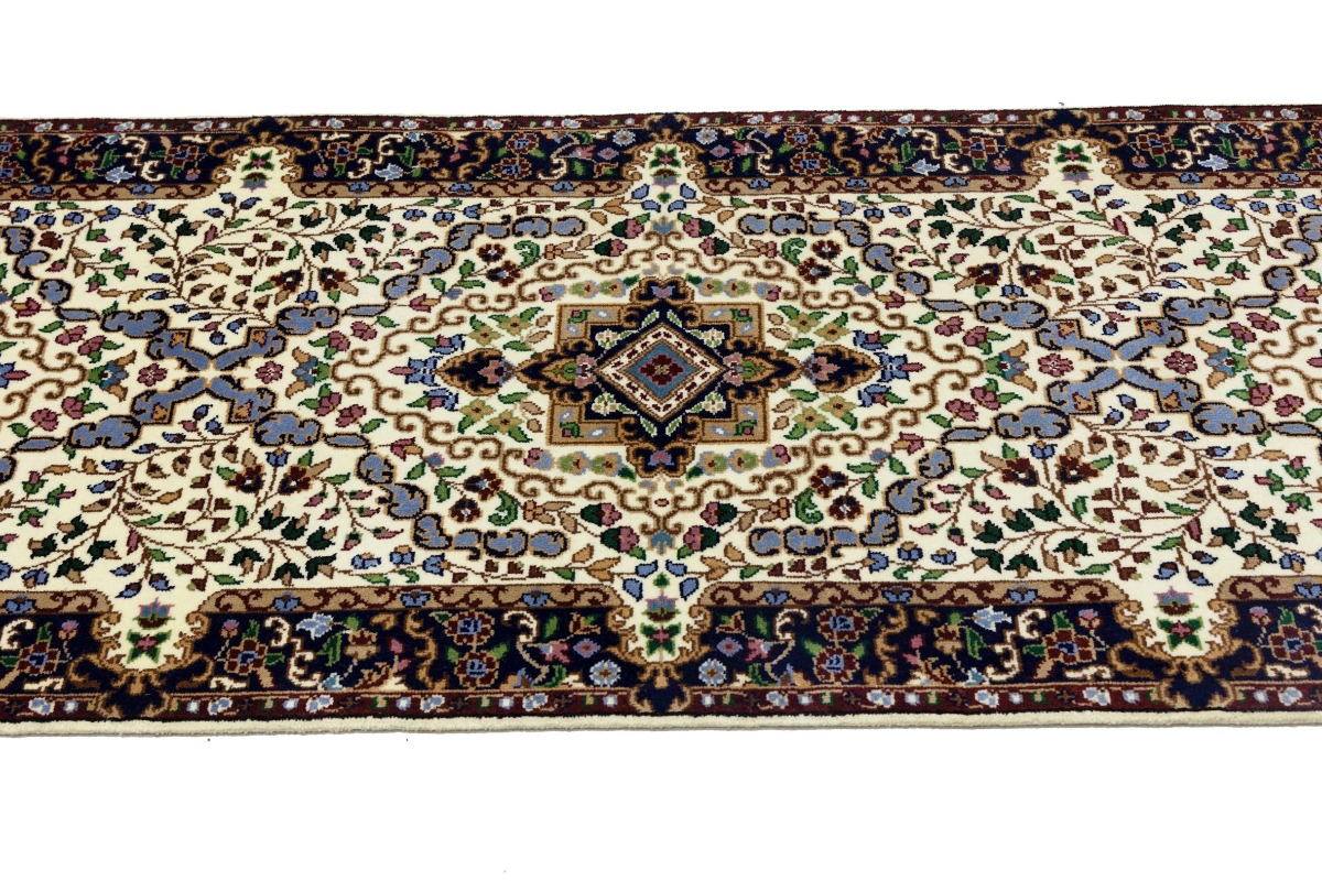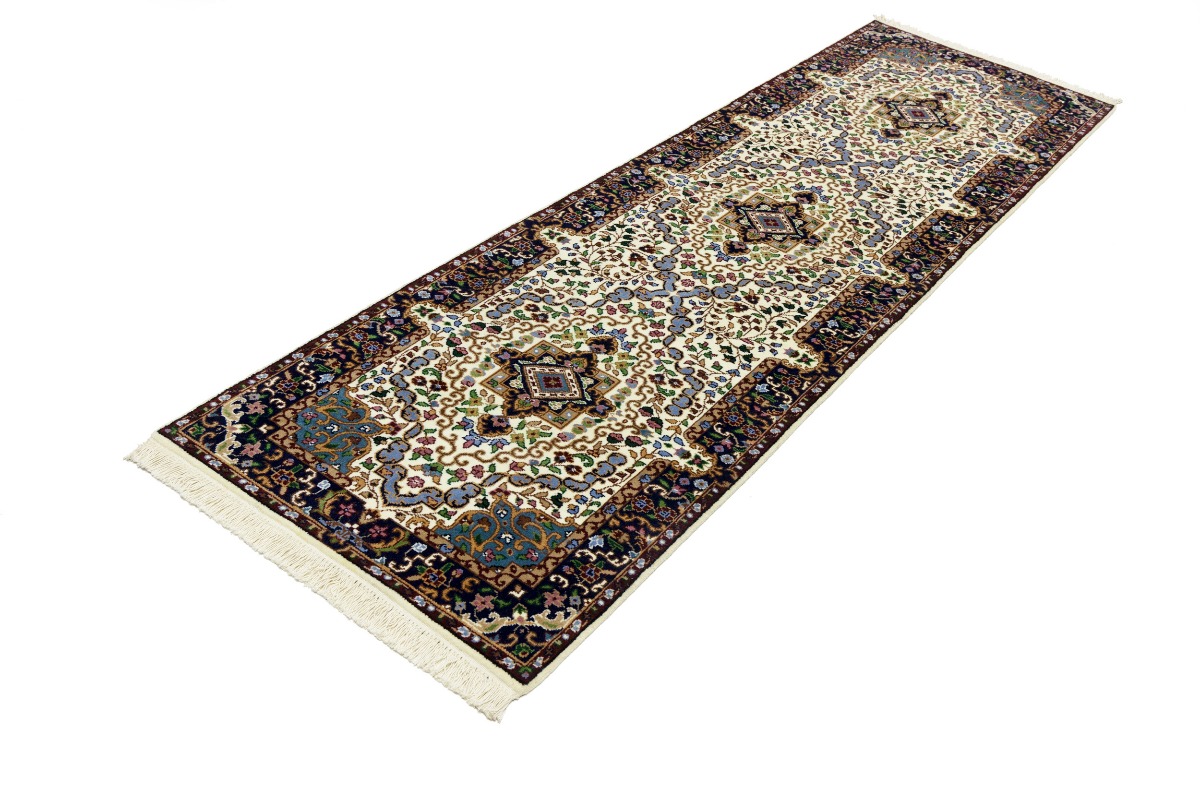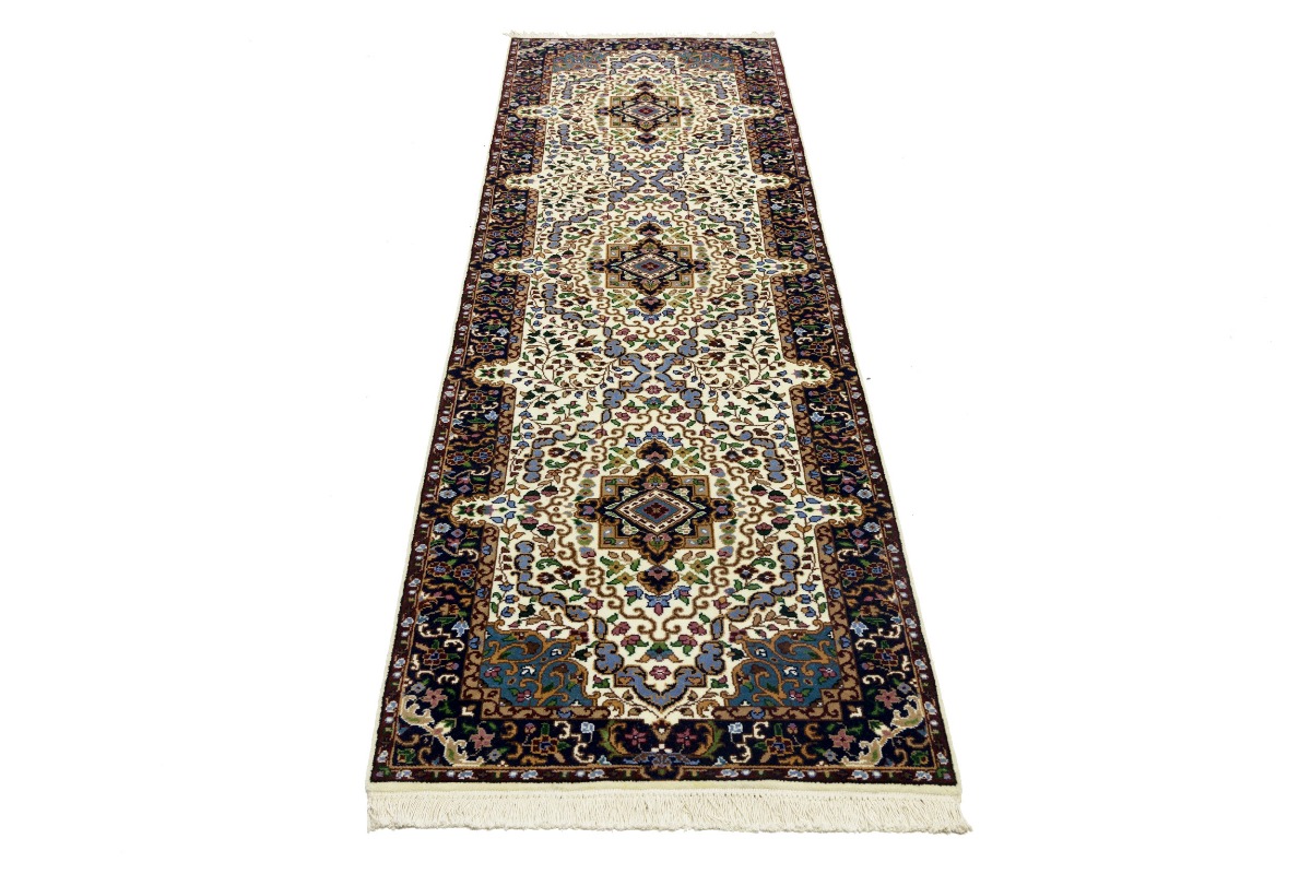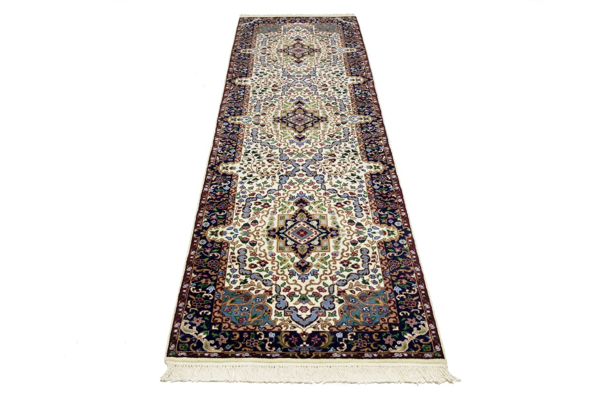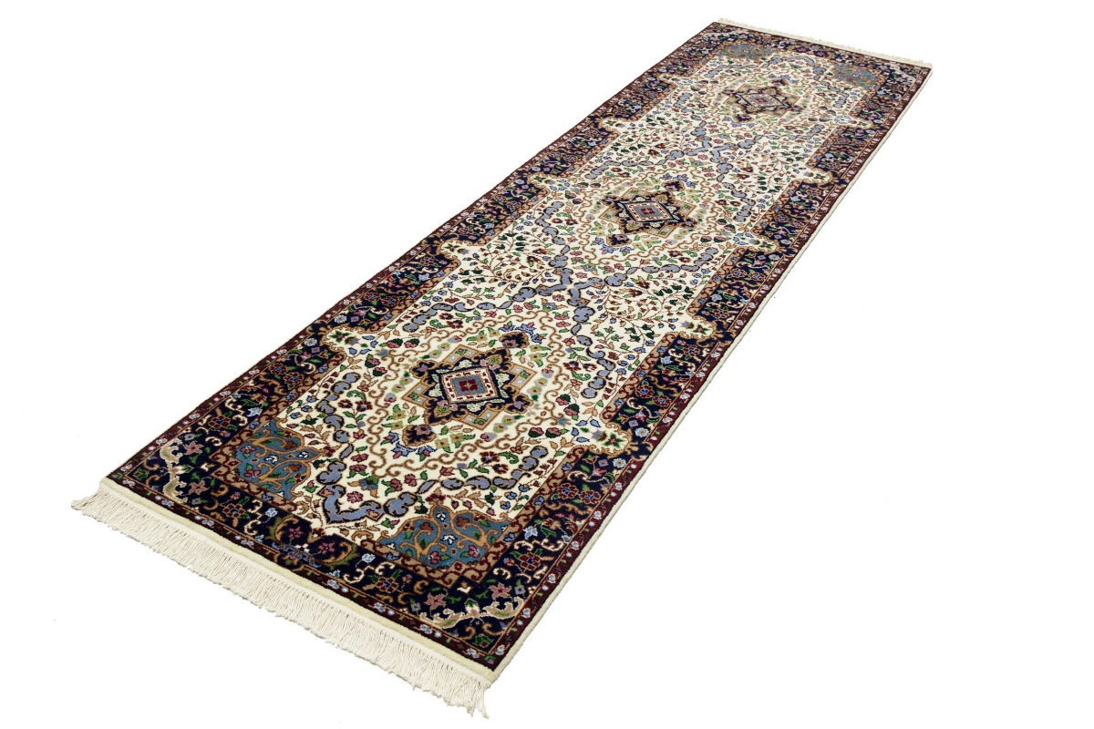 Hand Knotted 3X10 cream oriental runner made with vegetable dyes (fine wool pile and cotton foundation), superior knot count, and alluring ancient designs. This Oriental runner never will go out of style and would be among your most valuable treasures.