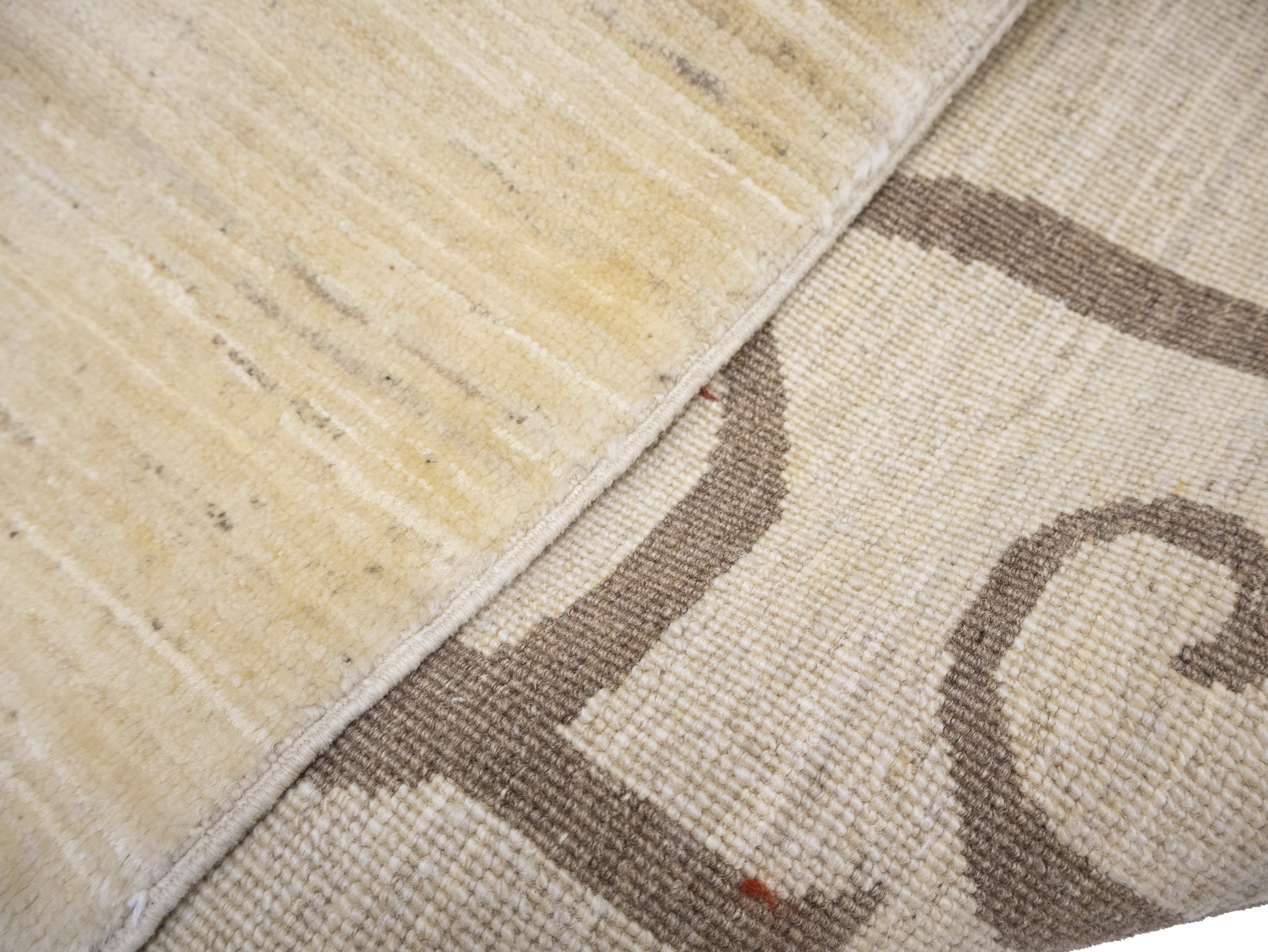 This original 5X6'5 cream new Oriental rug was finely knotted by the hands of weavers influenced by a variety of amazing artistic designs, to recreate the aged look of the exceptional piece with a richness of color and embellished background field. What set this vintage style Oriental area rug from the others are the material and dye used (wool pile and cotton foundation), knot count, antique designs, fantastic grades, and its regional historical connection: it has deep roots, from the story of the people who produced it to the meaning of the symbols and colors displayed across its canvas that have been praised for centuries. This Indian home décor carpet will be completely cozy and inviting that never will go out of style!