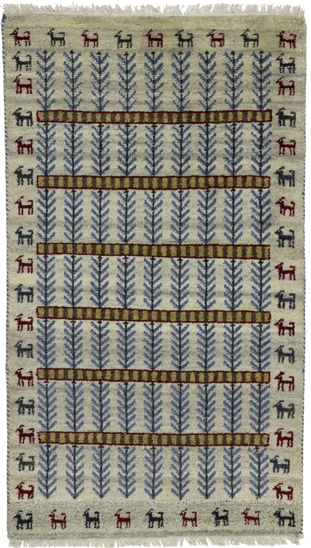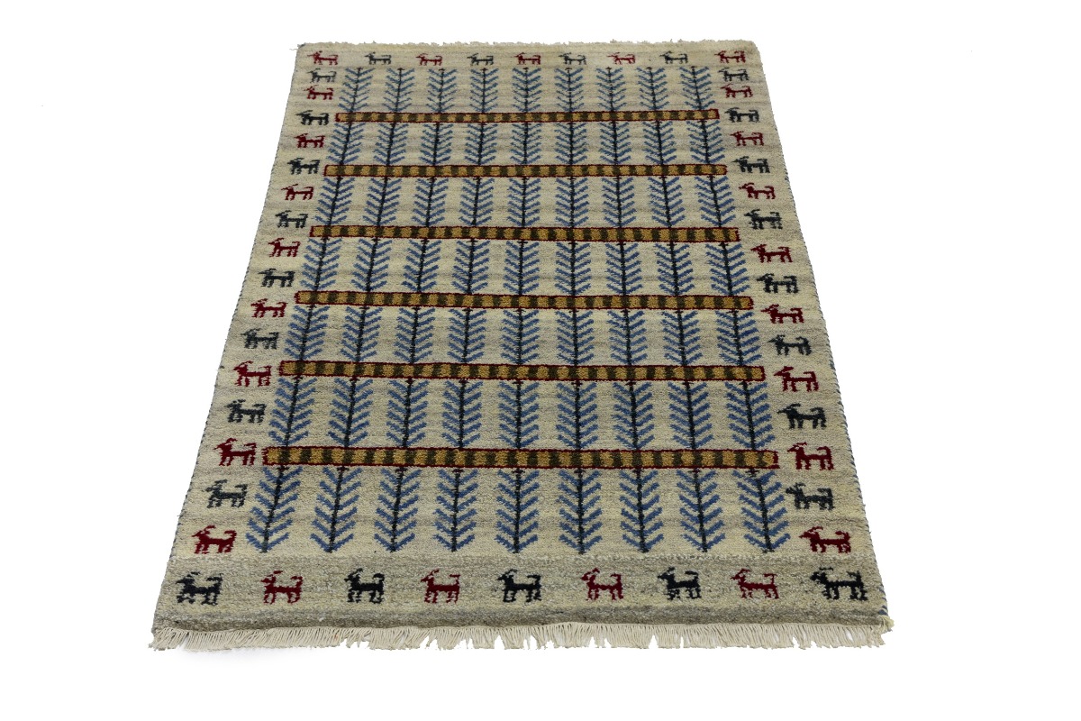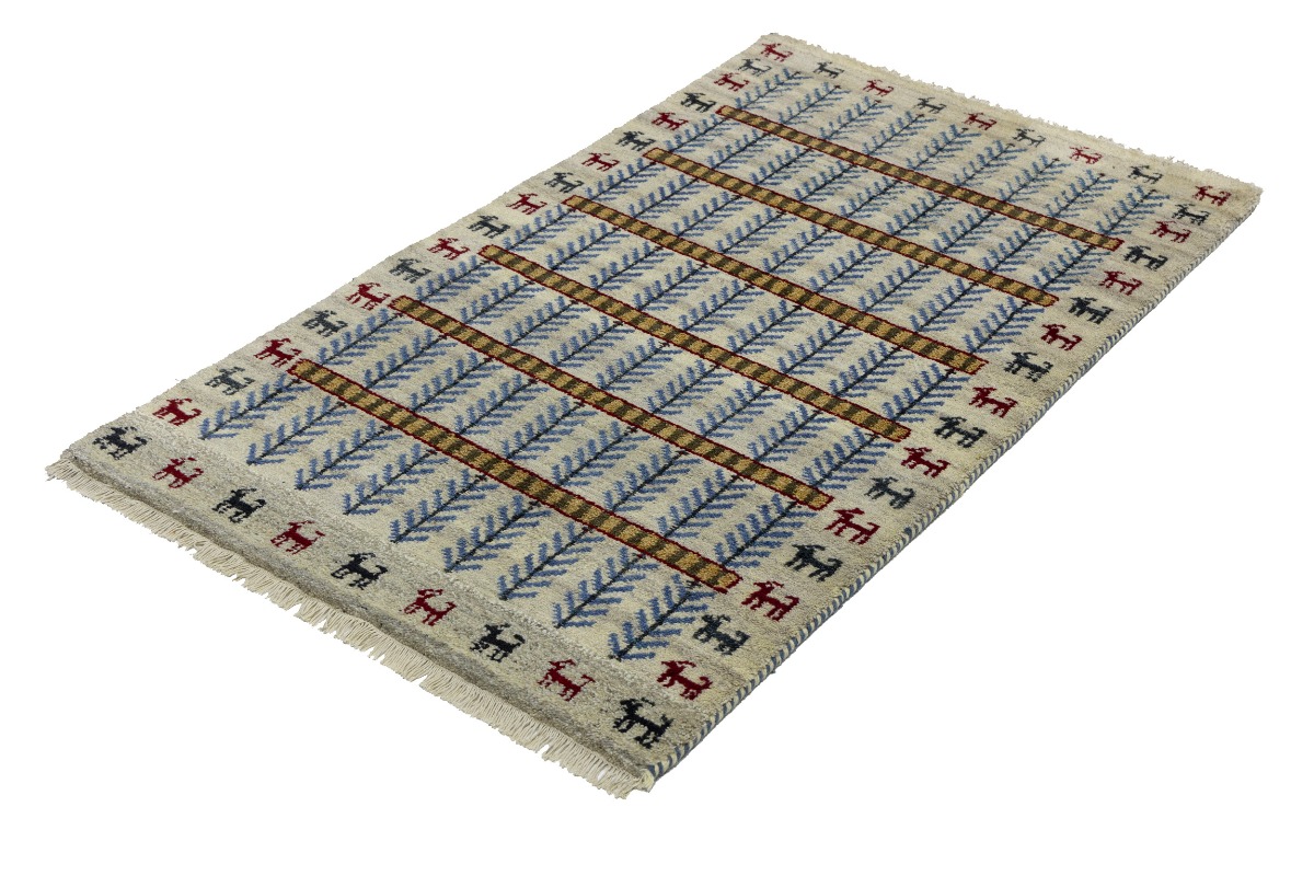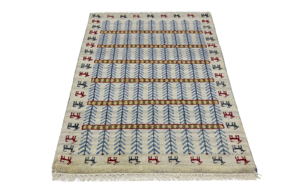 Cream Pictorial Tribal 3X5 Indo-Gabbeh Oriental Rug