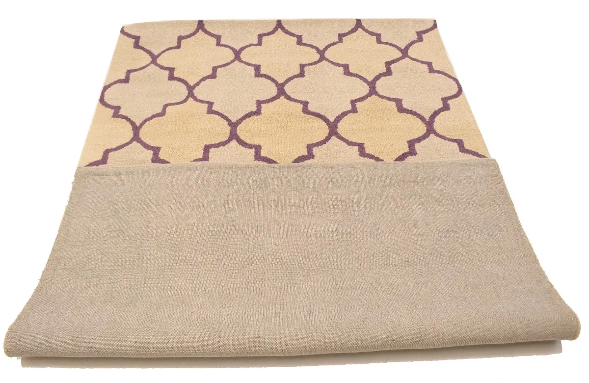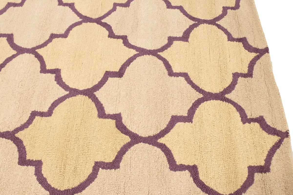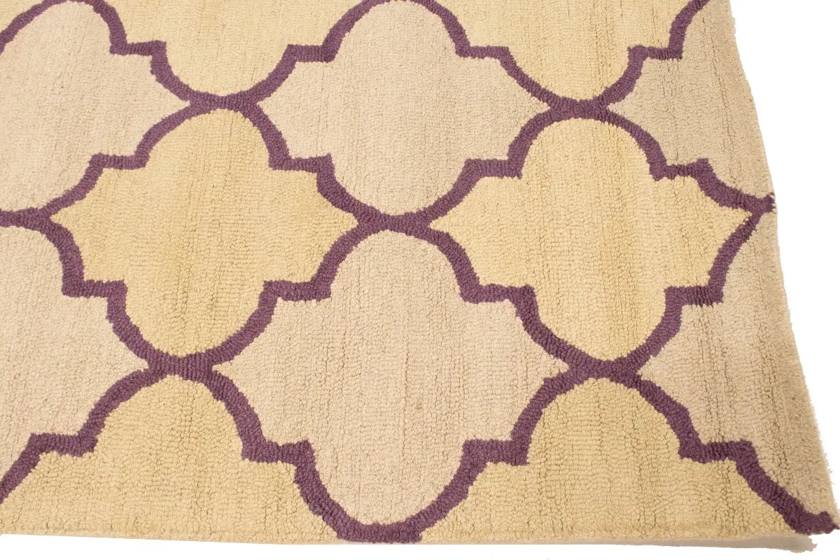 Cream & Purple Trellis Design 5X8 Hand-Tufted Modern Rug Contemporary Carpet