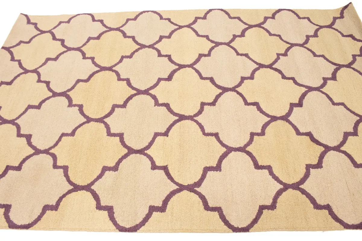 Cream & Purple Trellis 5X8 Hand-Tufted Modern Rug