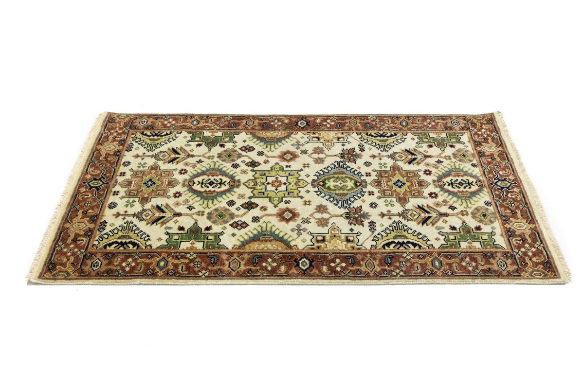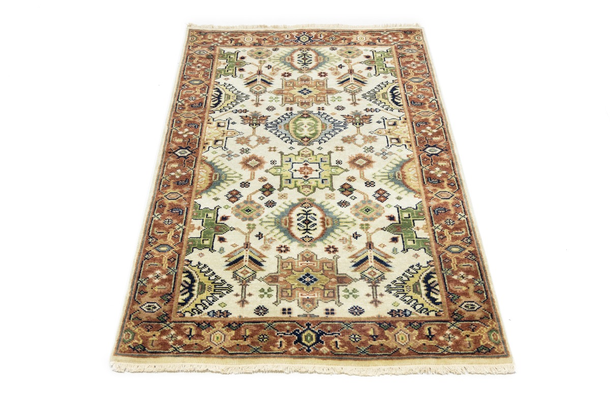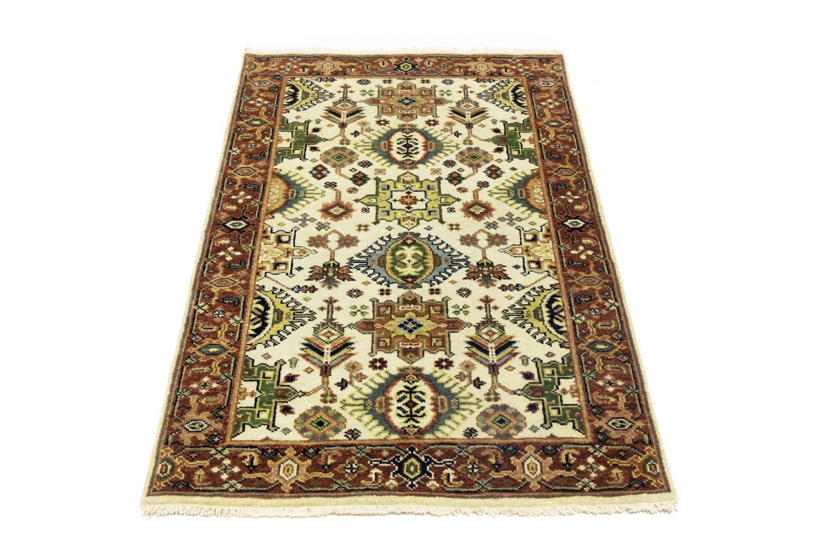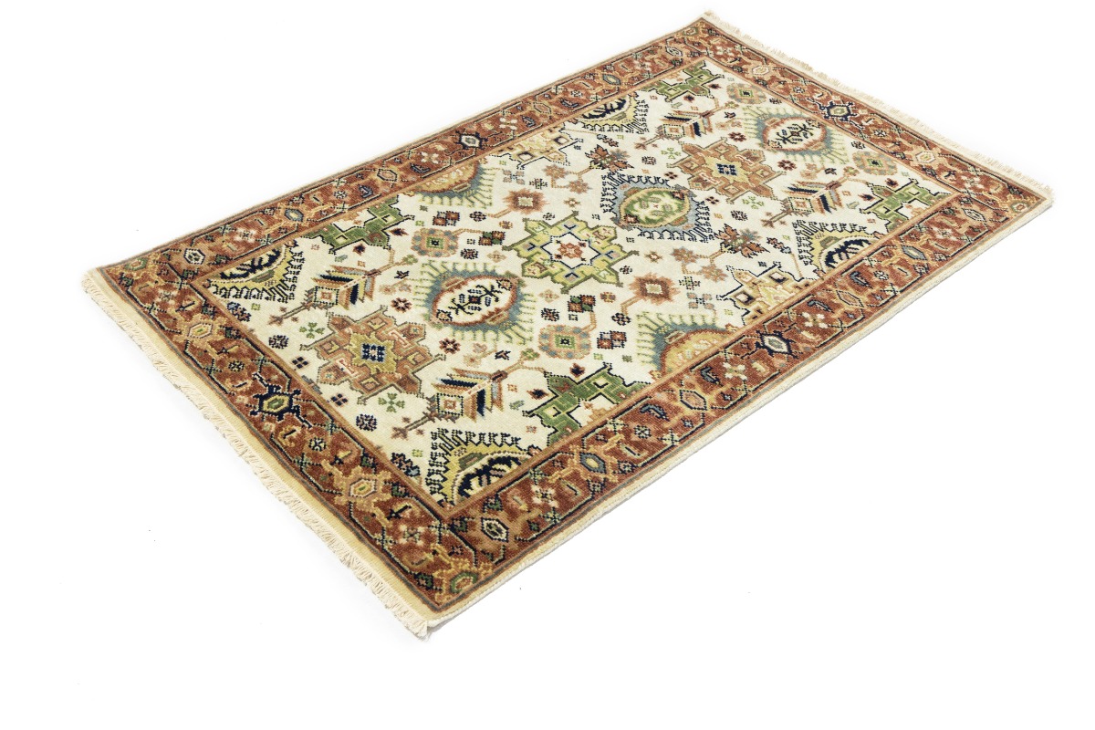 Cream & Rust Tribal Geometric 3X5 Indo-Karajeh Oriental Rug