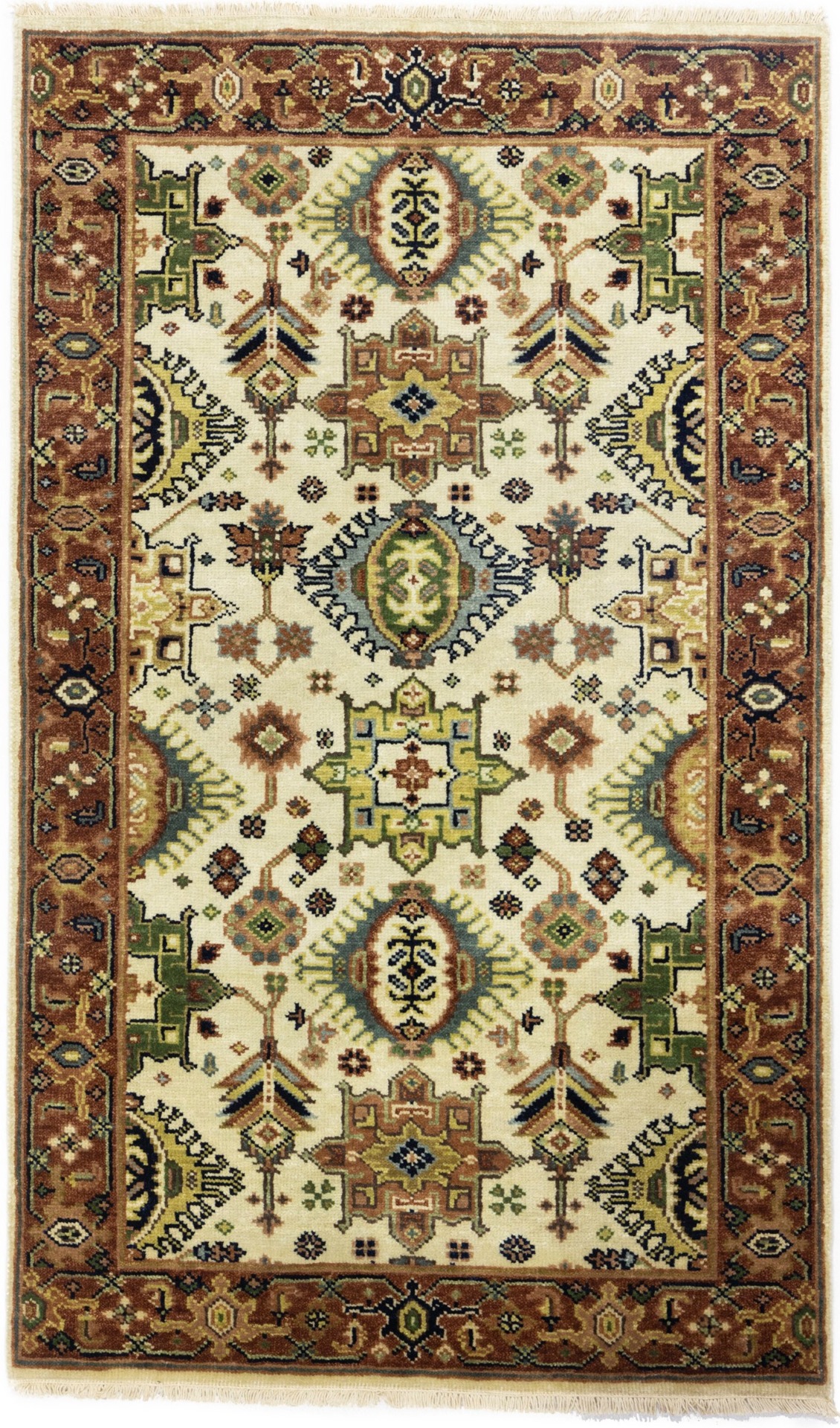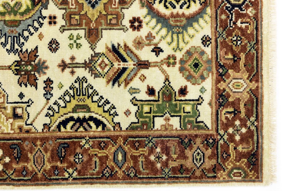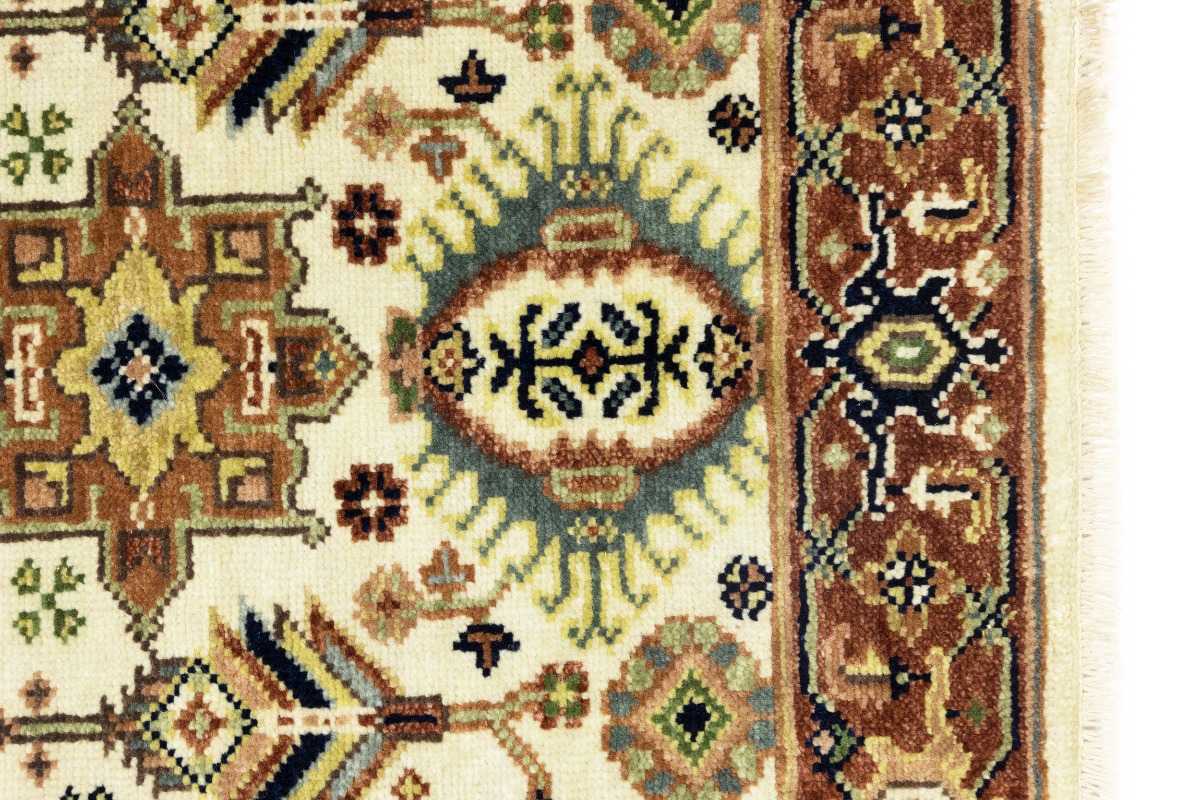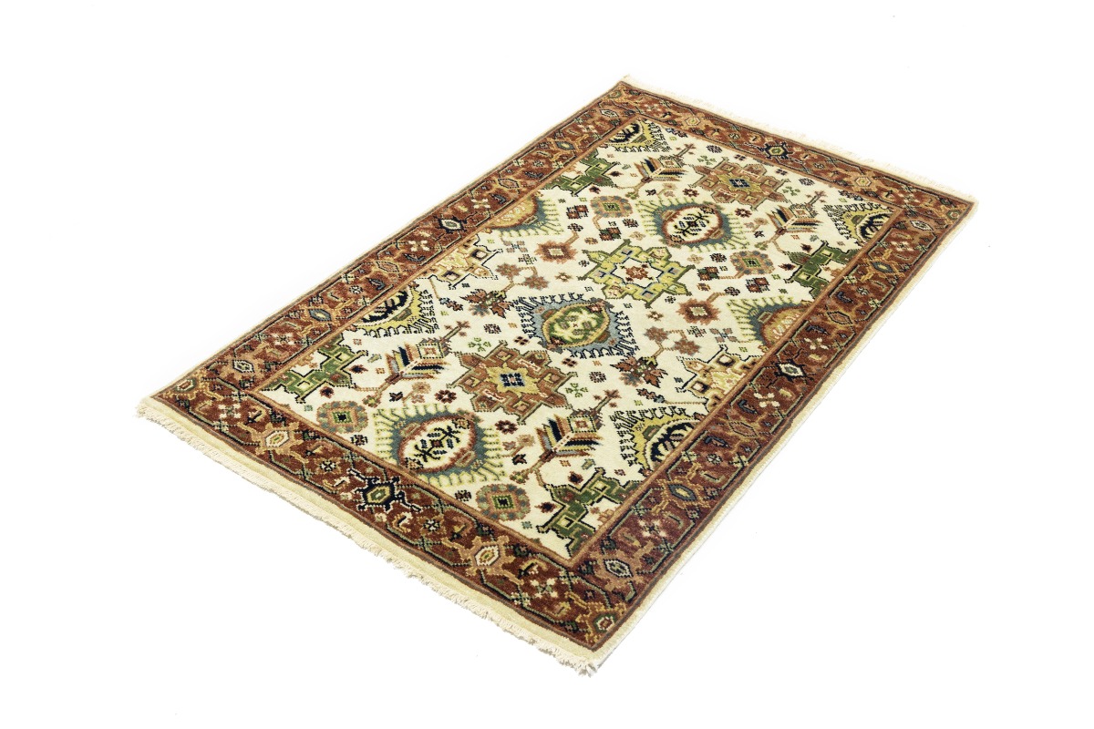 Cream & Rust Tribal Geometric 3X5 Indo-Karajeh Oriental Rug