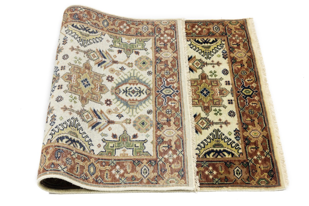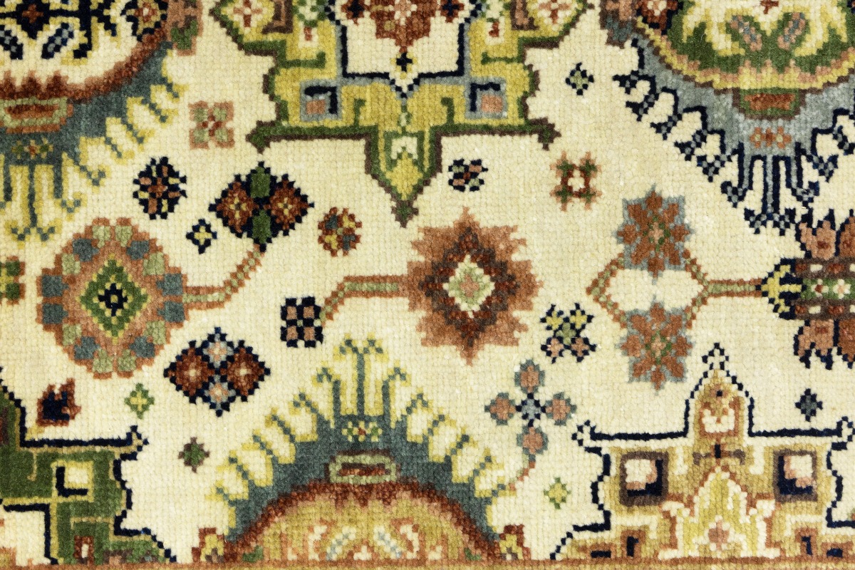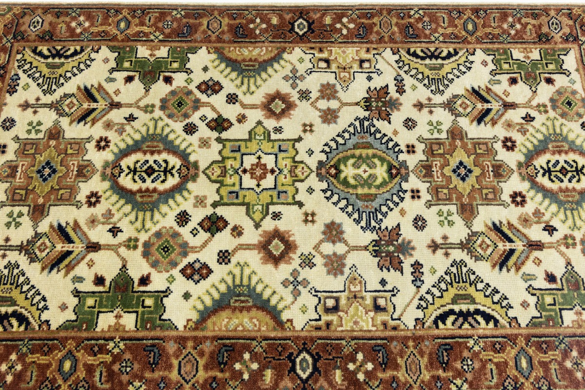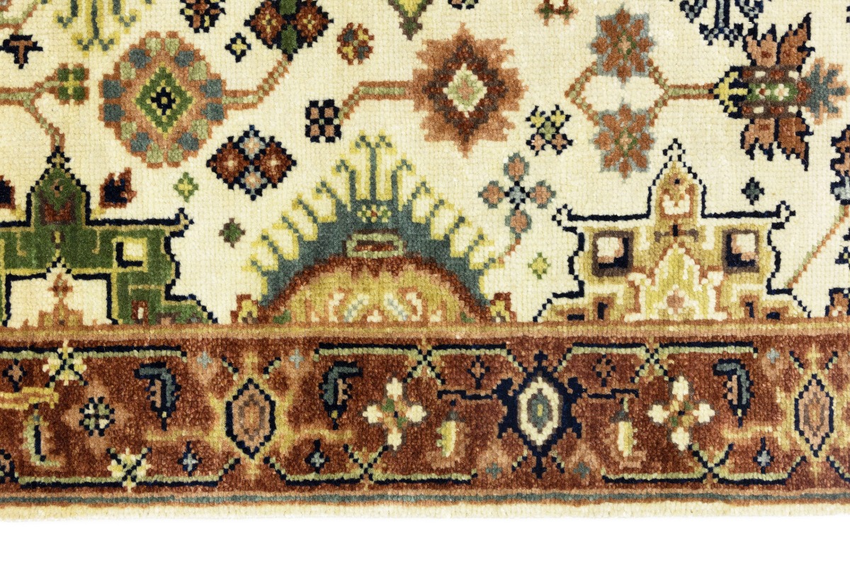 This authentic 3X5 cream new Oriental rug was crafted by the hands of skilled weavers enthused by a variety of lovely artistic designs, to recreate the aged look of the unique piece with a richness of color and beautifully elaborated background field. What set this vintage style Oriental area rug from the others are the material and dye used (wool pile and cotton foundation), knot count, ancient designs, fantastic grades, and its regional historical connection: it has deep roots, from the story of the people who produced it to the meaning of the symbols and colors displayed across its canvas that have been praised for centuries. This Indian home décor carpet will be completely cozy and inviting that never will go out of style! Also, this Oriental rug would be among your most valuable treasures, it is a great investment that increase in value over time, and it will last for generations because was woven with high-quality, all-natural wool. Environmentally friendly, opulent yet affordable; this rug will give you a thorough amount of character to help define your living space with sophistication and warmth that will capture the eyes and attention of your audience (homeowners, designers, decorators, family and friends). OT-8254