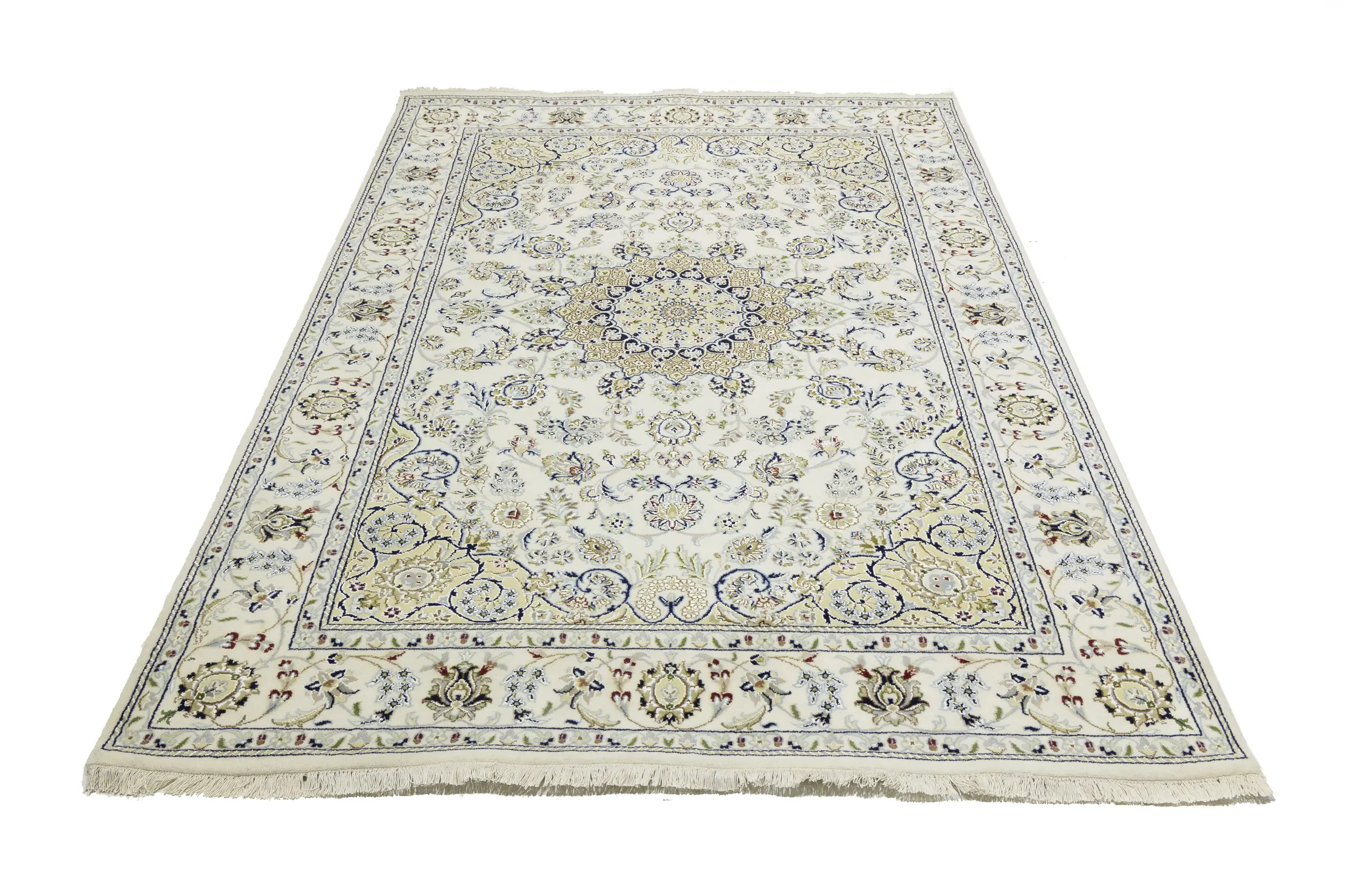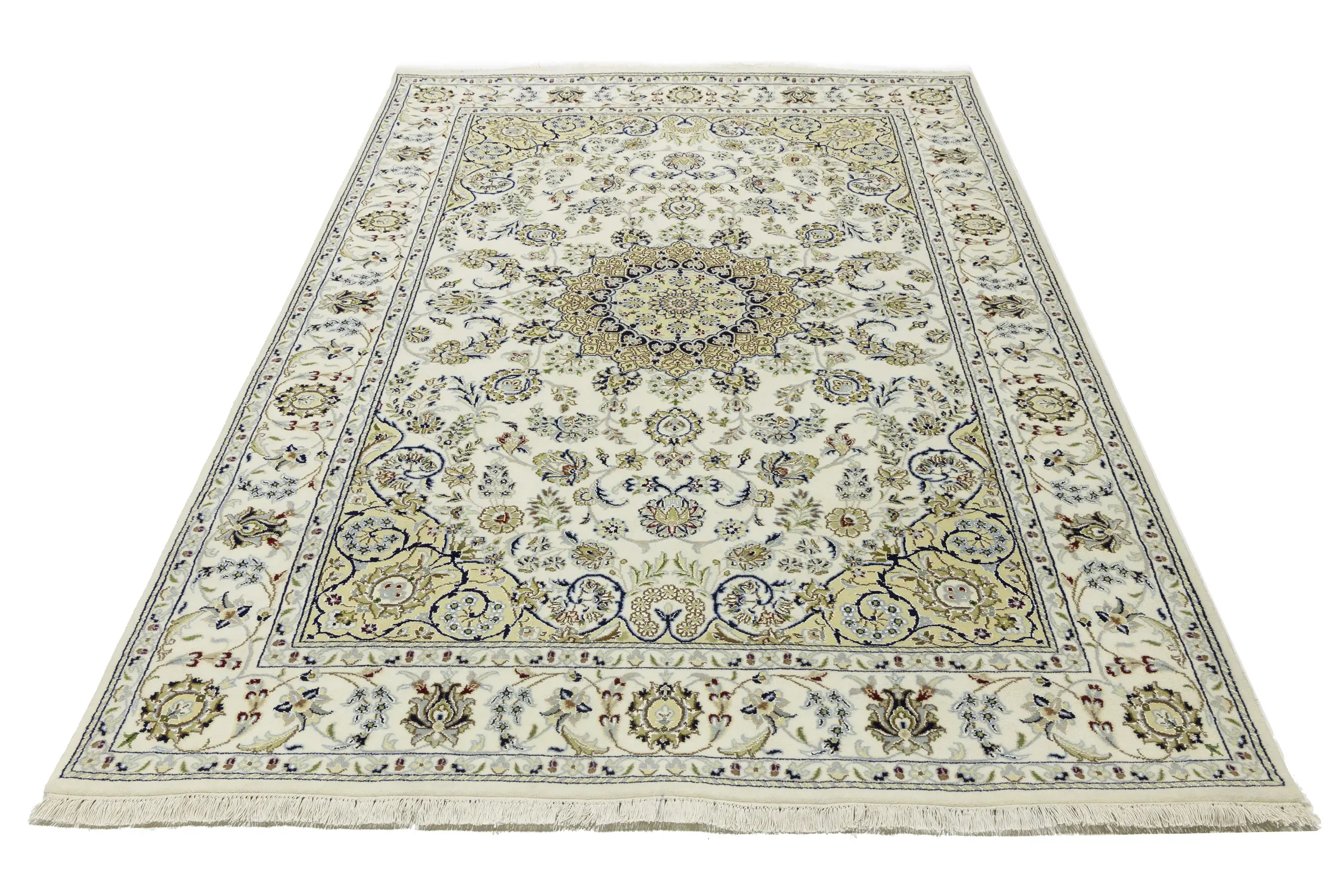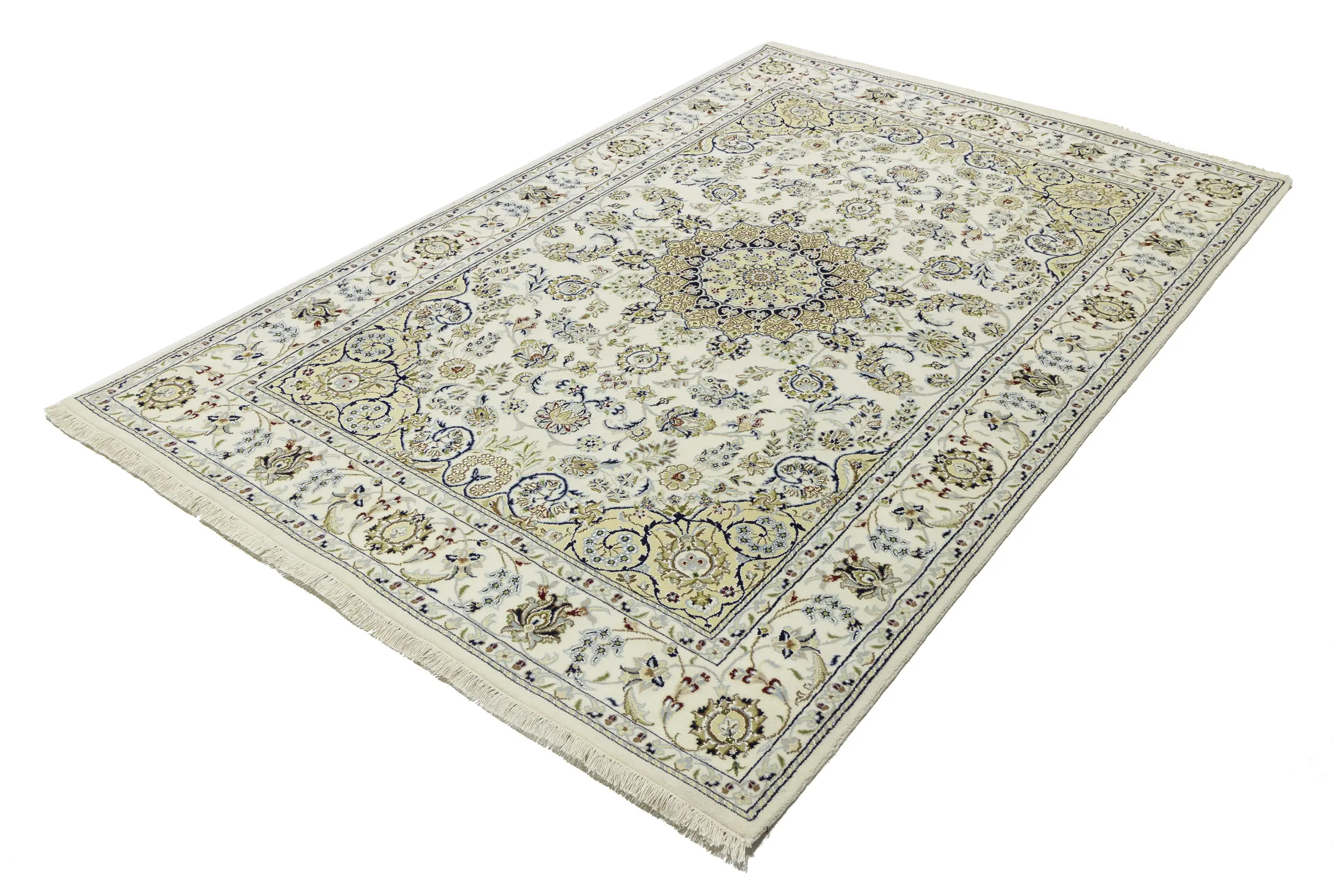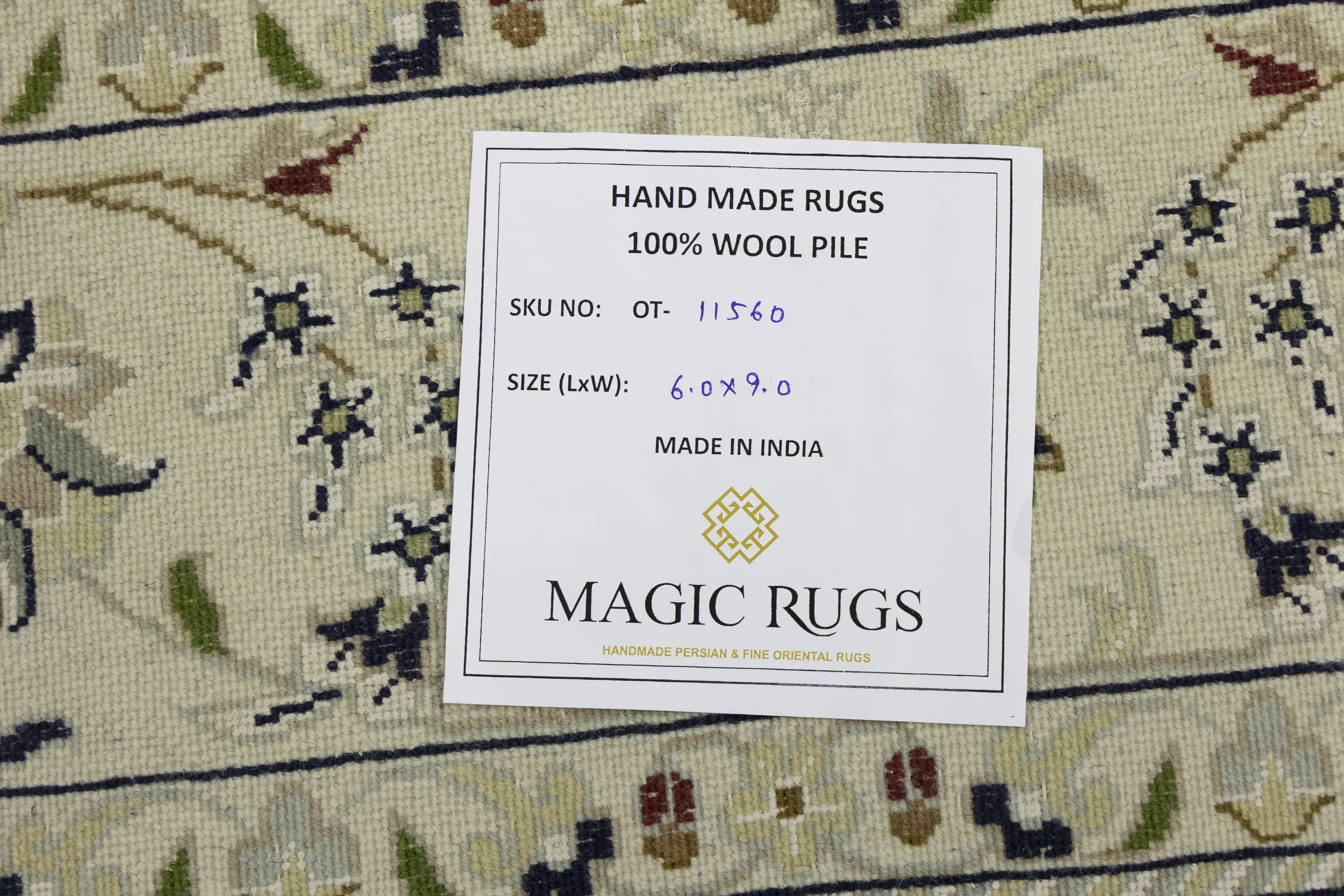 Cream Traditional Floral 6X9 Indo-Nain Oriental Rug