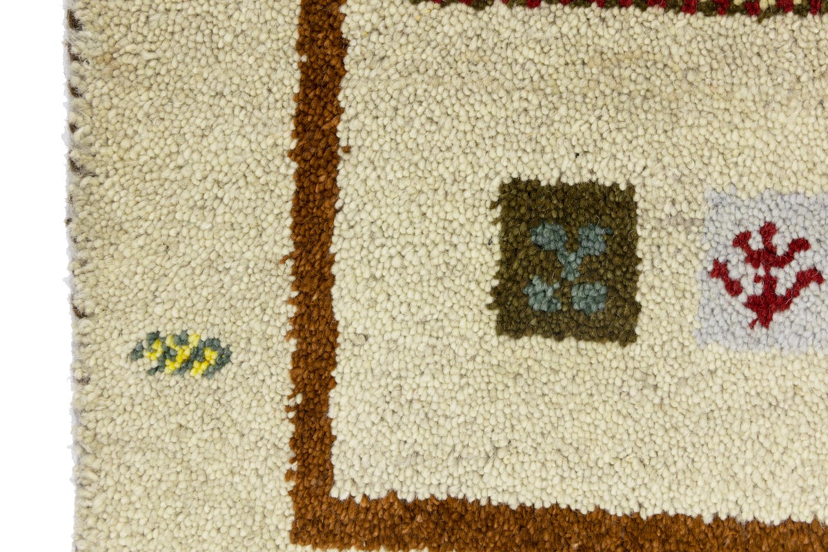 Cream Tribal 1'5X2'7 Indo-Gabbeh Oriental Rug