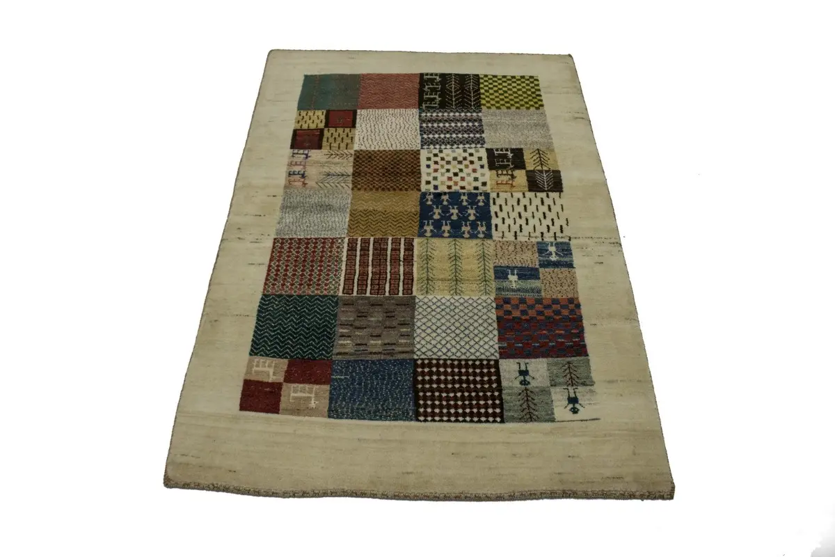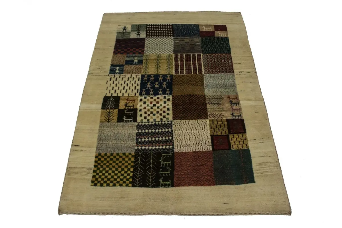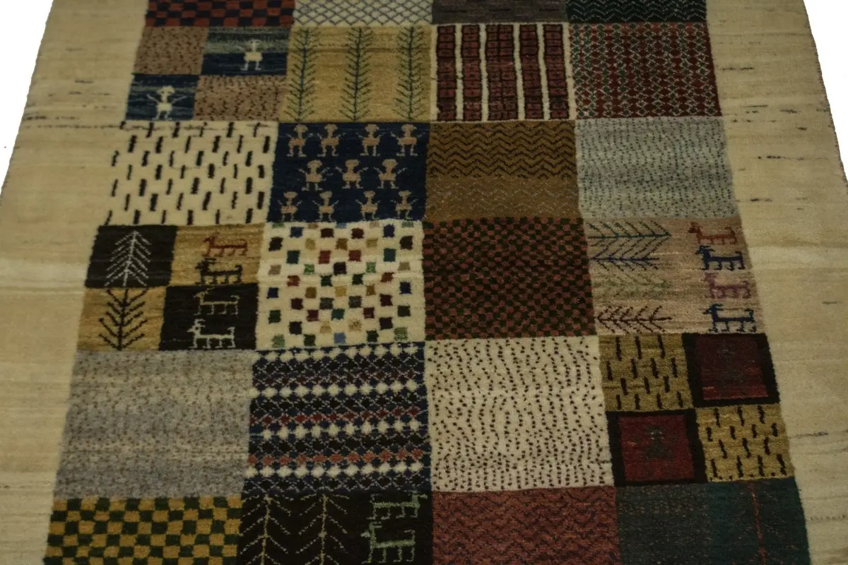 Cream Tribal 3'6X5'4 Gabbeh Persian Rug
