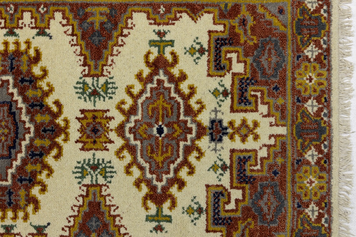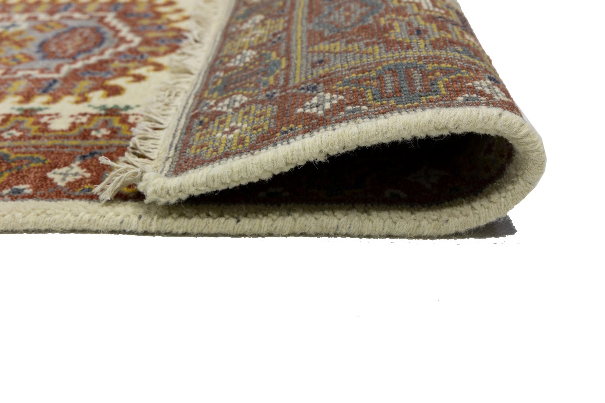 This authentic 3X10 cream new Oriental runner was crafted by the hands of skilled weavers enthused by a variety of lovely artistic designs, to recreate the aged look of the unique piece with a richness of color and beautifully elaborated background field. What set this vintage style Oriental area runner from the others are the material and dye used (wool pile and cotton foundation), knot count, ancient designs, fantastic grades, and its regional historical connection: it has deep roots, from the story of the people who produced it to the meaning of the symbols and colors displayed across its canvas that have been praised for centuries. This Indian home décor carpet will be completely cozy and inviting that never will go out of style! Also, this Oriental rug would be among your most valuable treasures, it is a great investment that increase in value over time, and it will last for generations because was woven with high-quality, all-natural wool. Environmentally friendly, opulent yet affordable; this runner will give you a thorough amount of character to help define your living space with sophistication and warmth that will capture the eyes and attention of your audience (homeowners, designers, decorators, family and friends). OT-8014