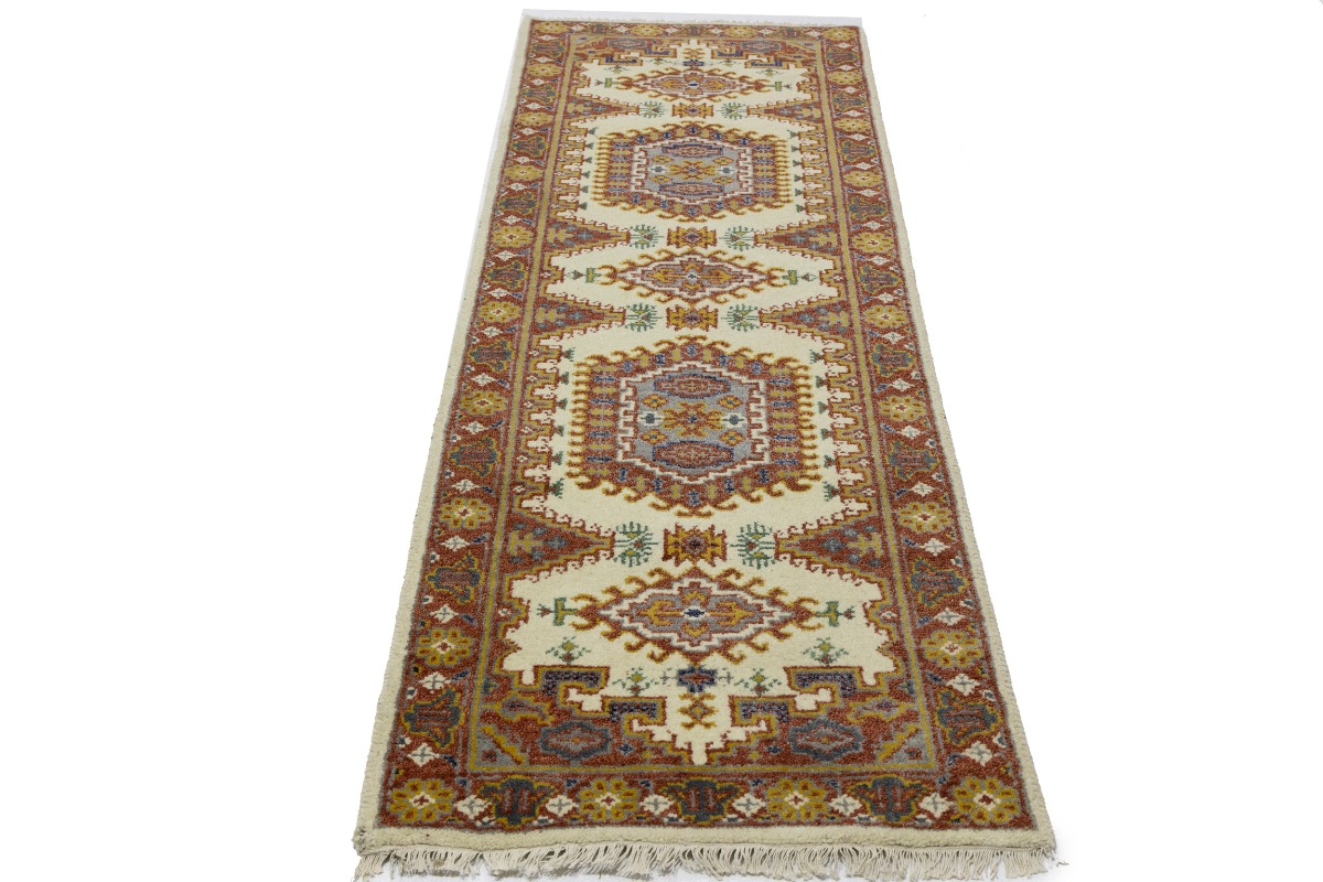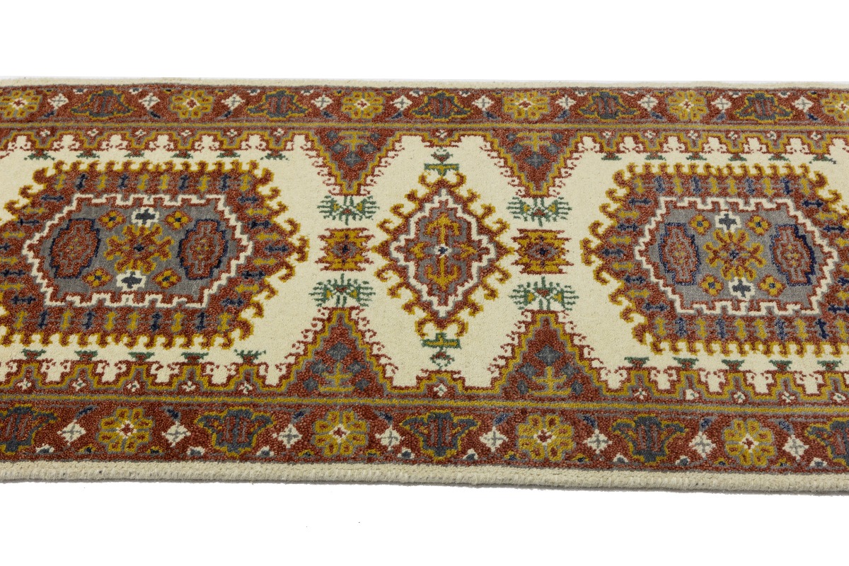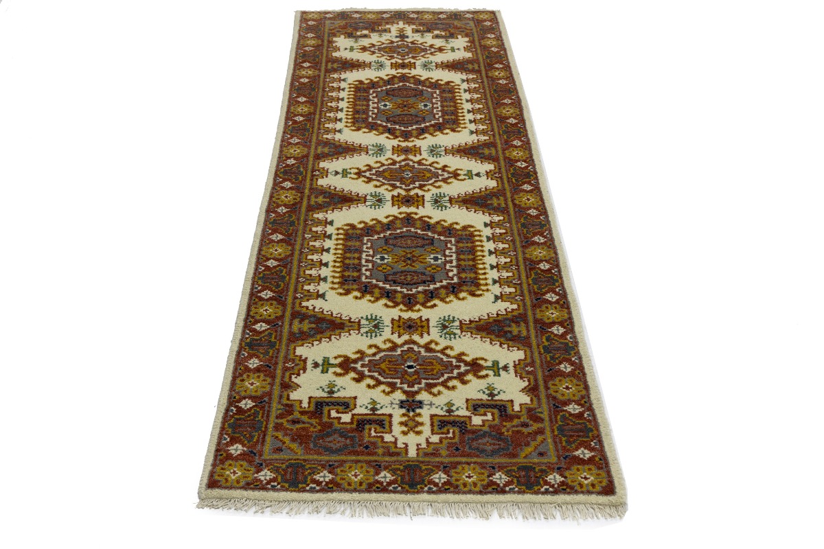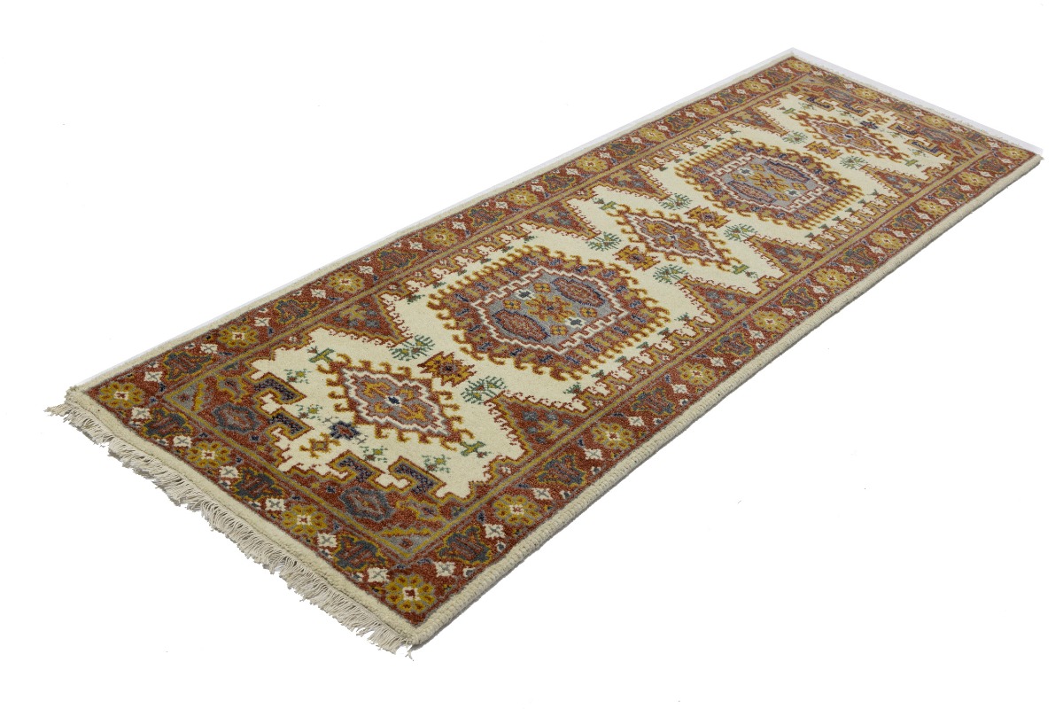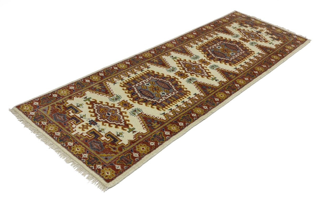Hand Knotted 3X10 cream oriental runner made with natural dyes (fine wool pile and cotton foundation), superior knot count, and appealing ancient designs. This Oriental runner never will go out of style and would be among your most valuable treasures.
