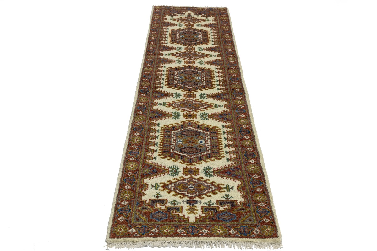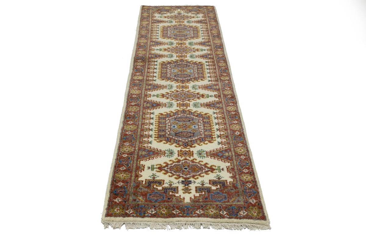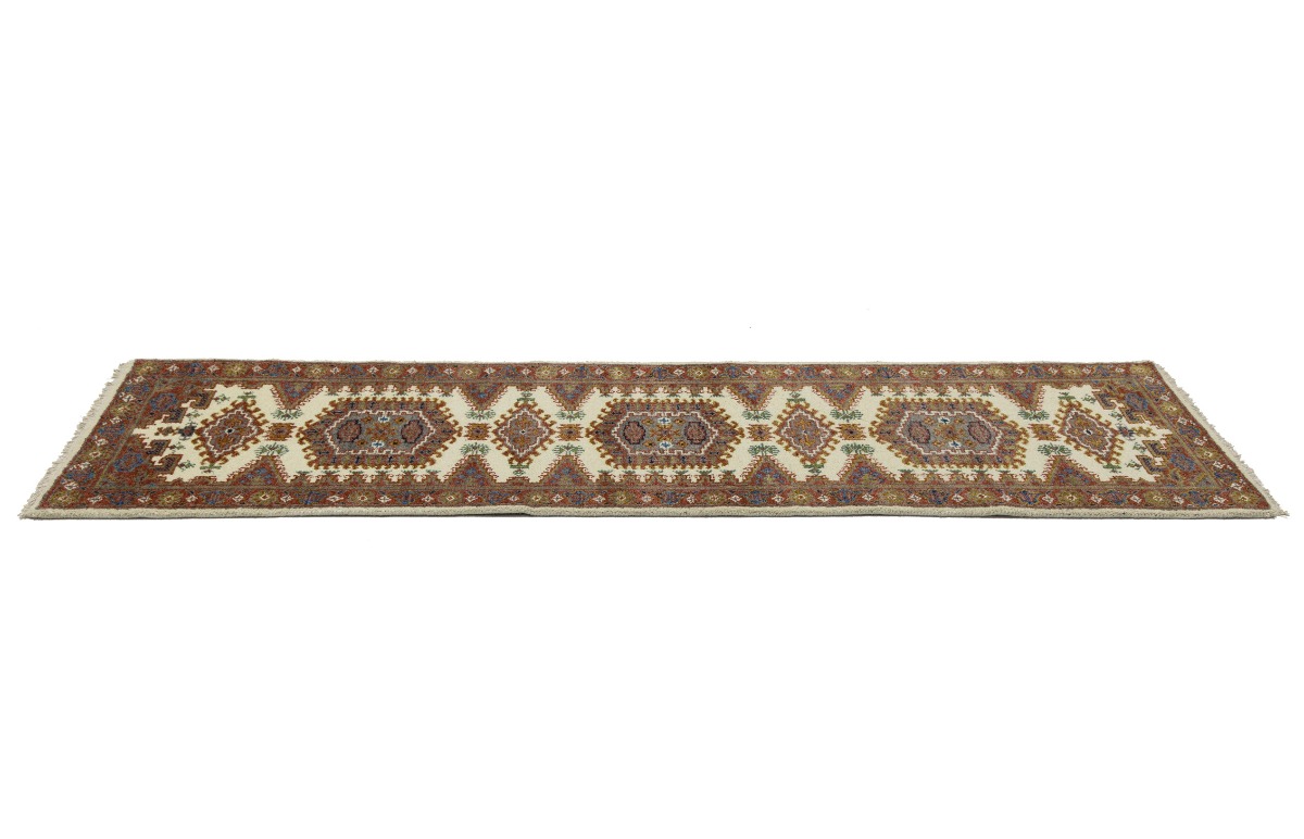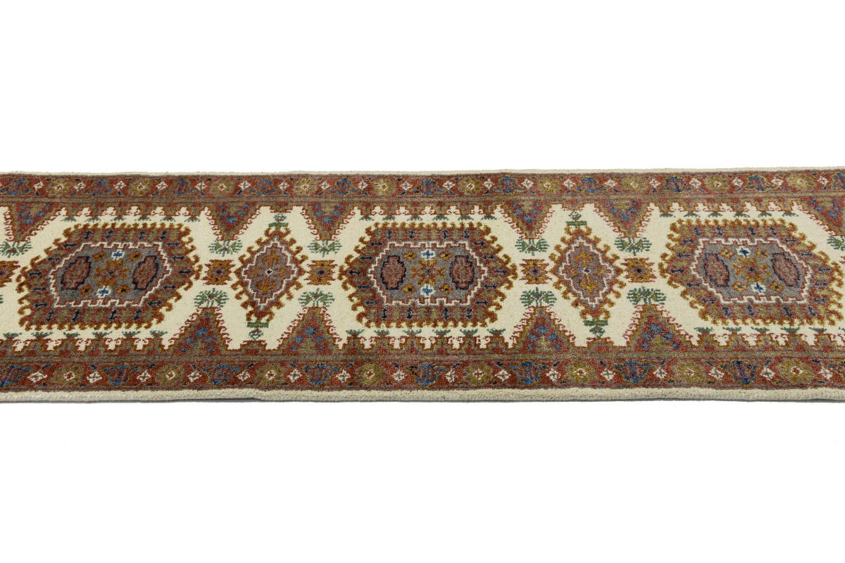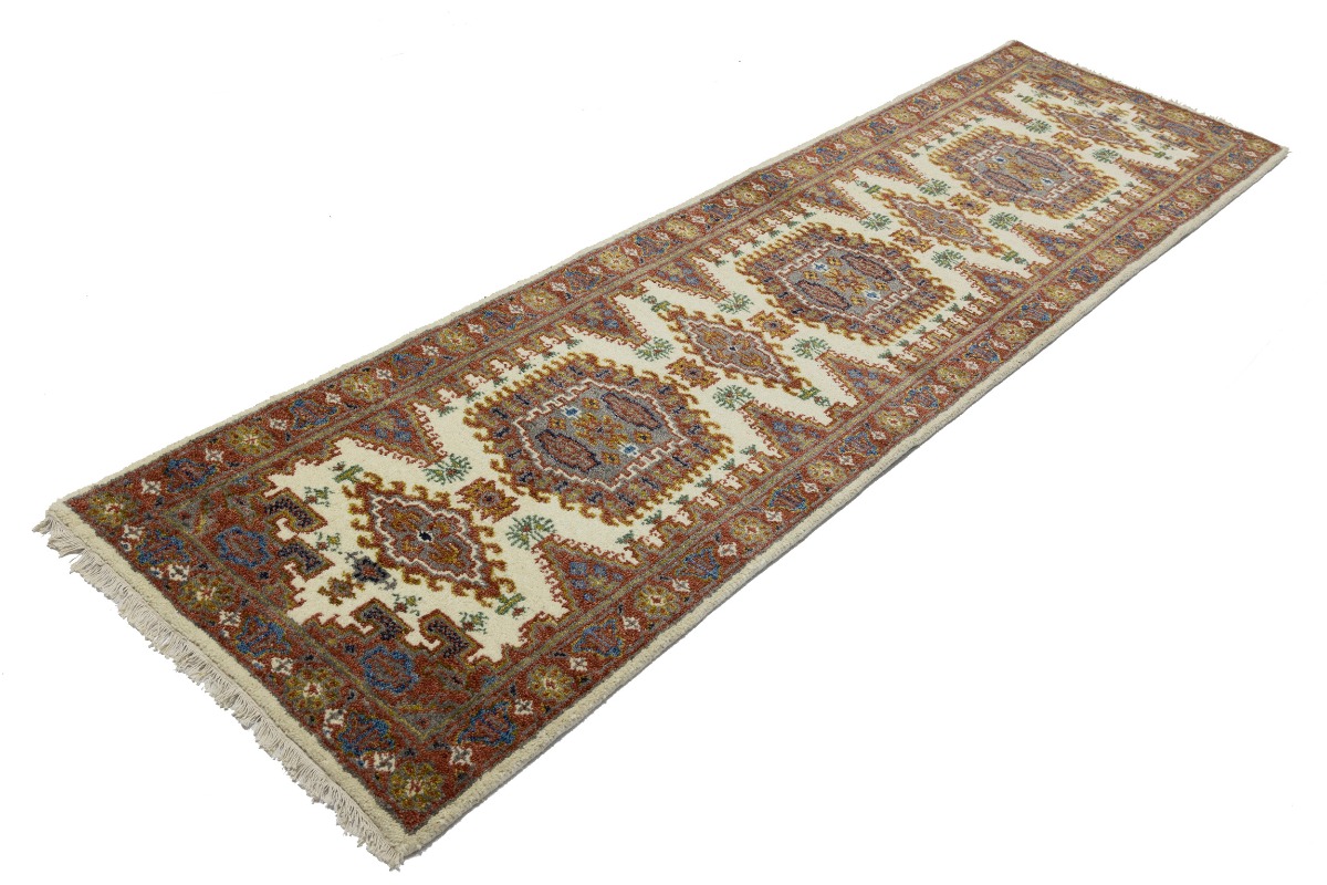 Handmade 3X10 cream oriental runner made with natural dyes (fine wool pile and cotton foundation), superior knot count, and appealing ancient designs. This Oriental runner never will go out of style and would be among your most valuable treasures.