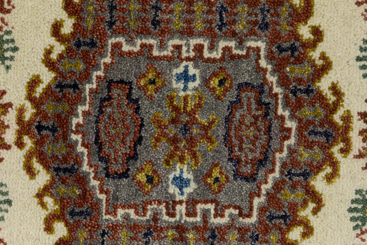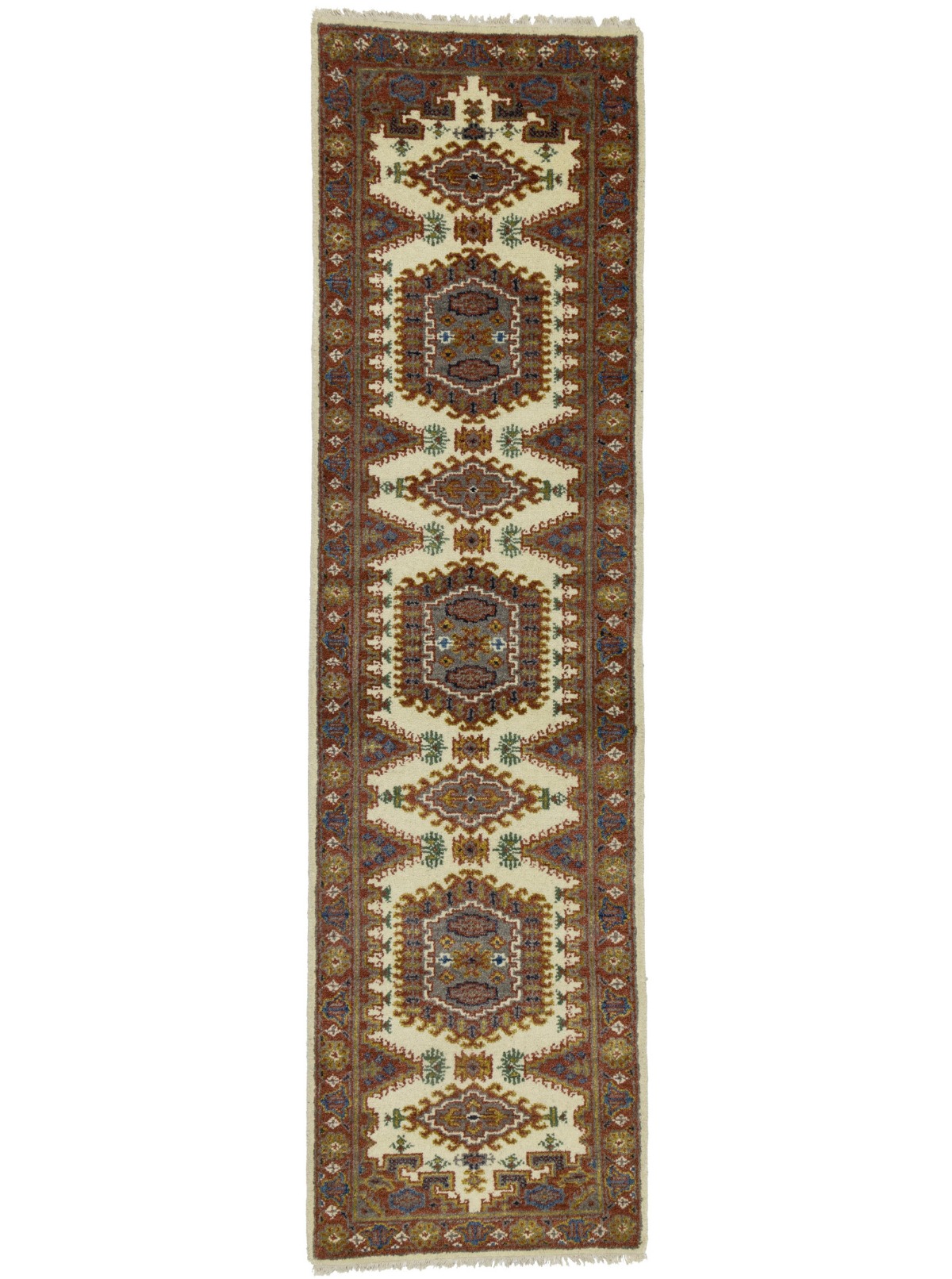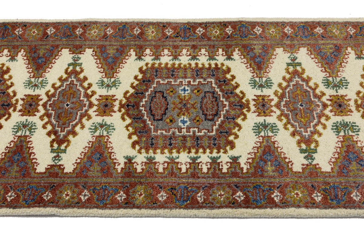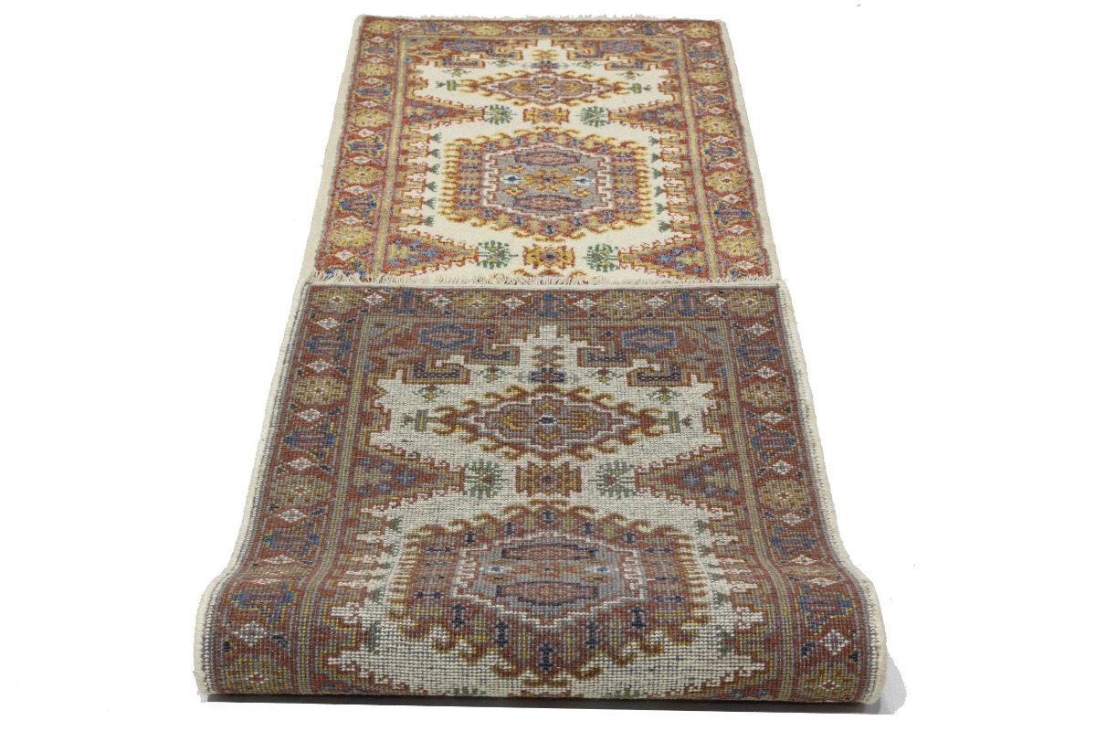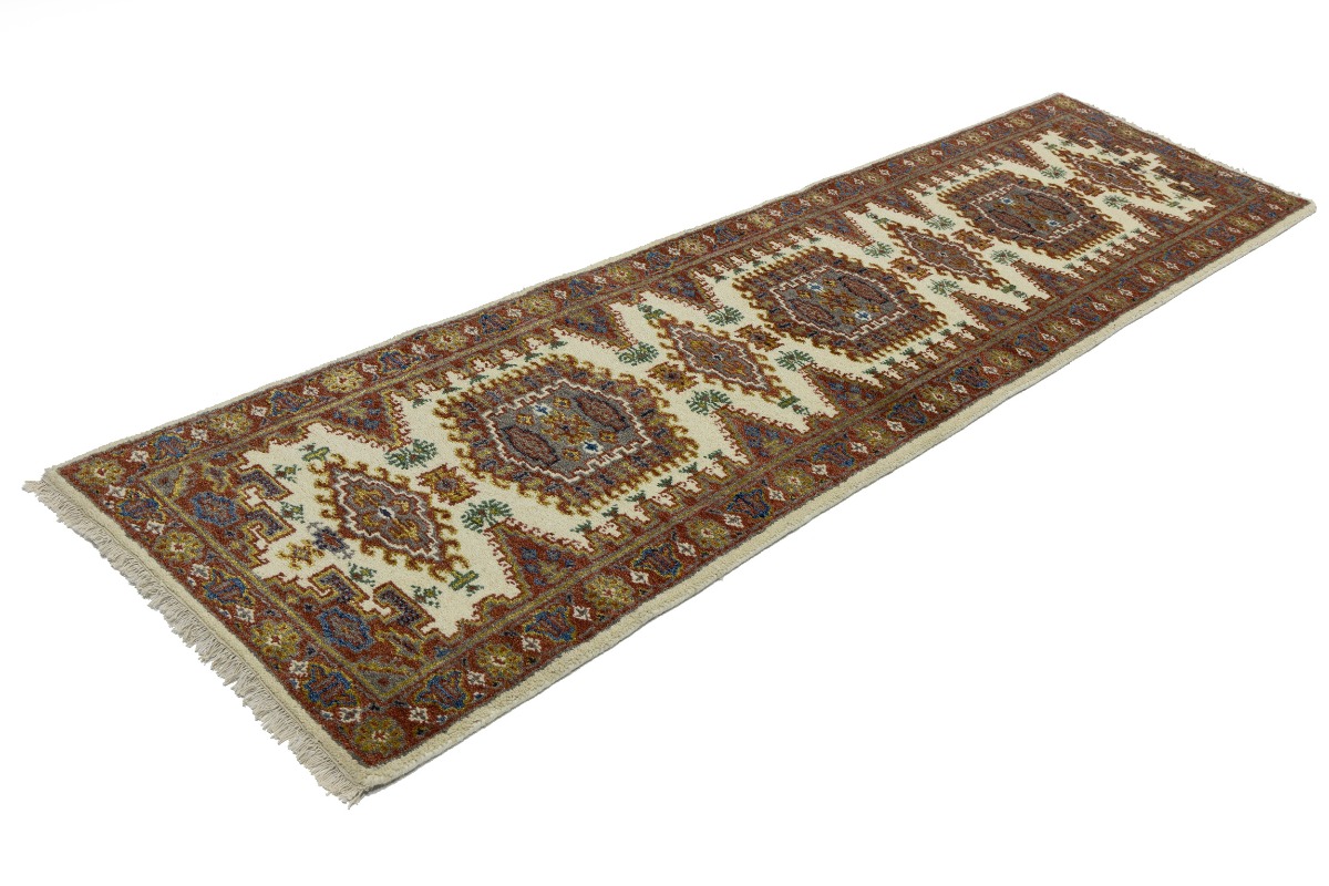 Handmade 3X10 cream oriental runner made with natural dyes (fine wool pile and cotton foundation), superior knot count, and appealing ancient designs. This Oriental runner never will go out of style and would be among your most valuable treasures.