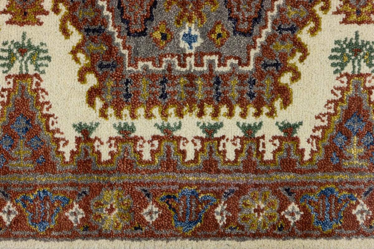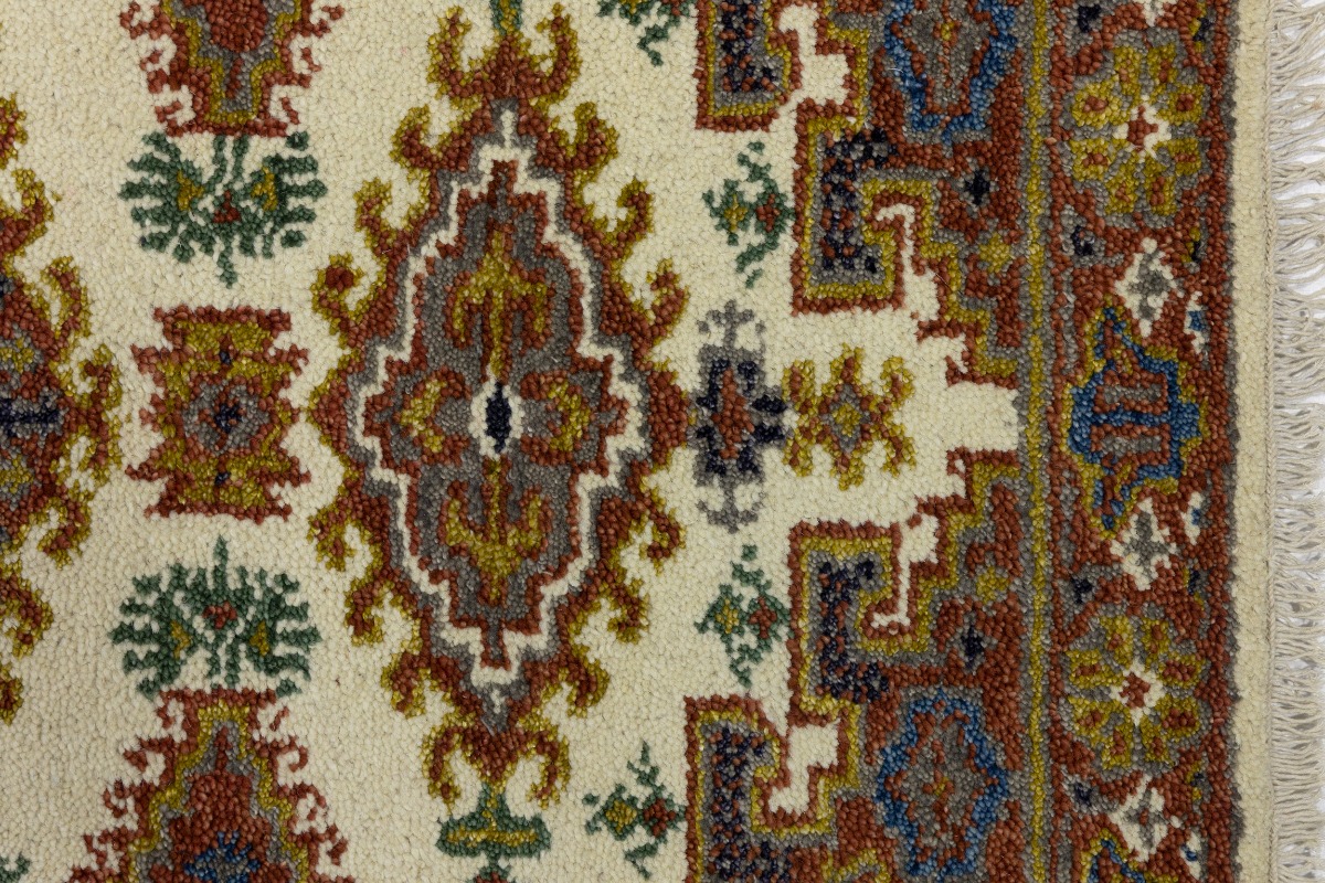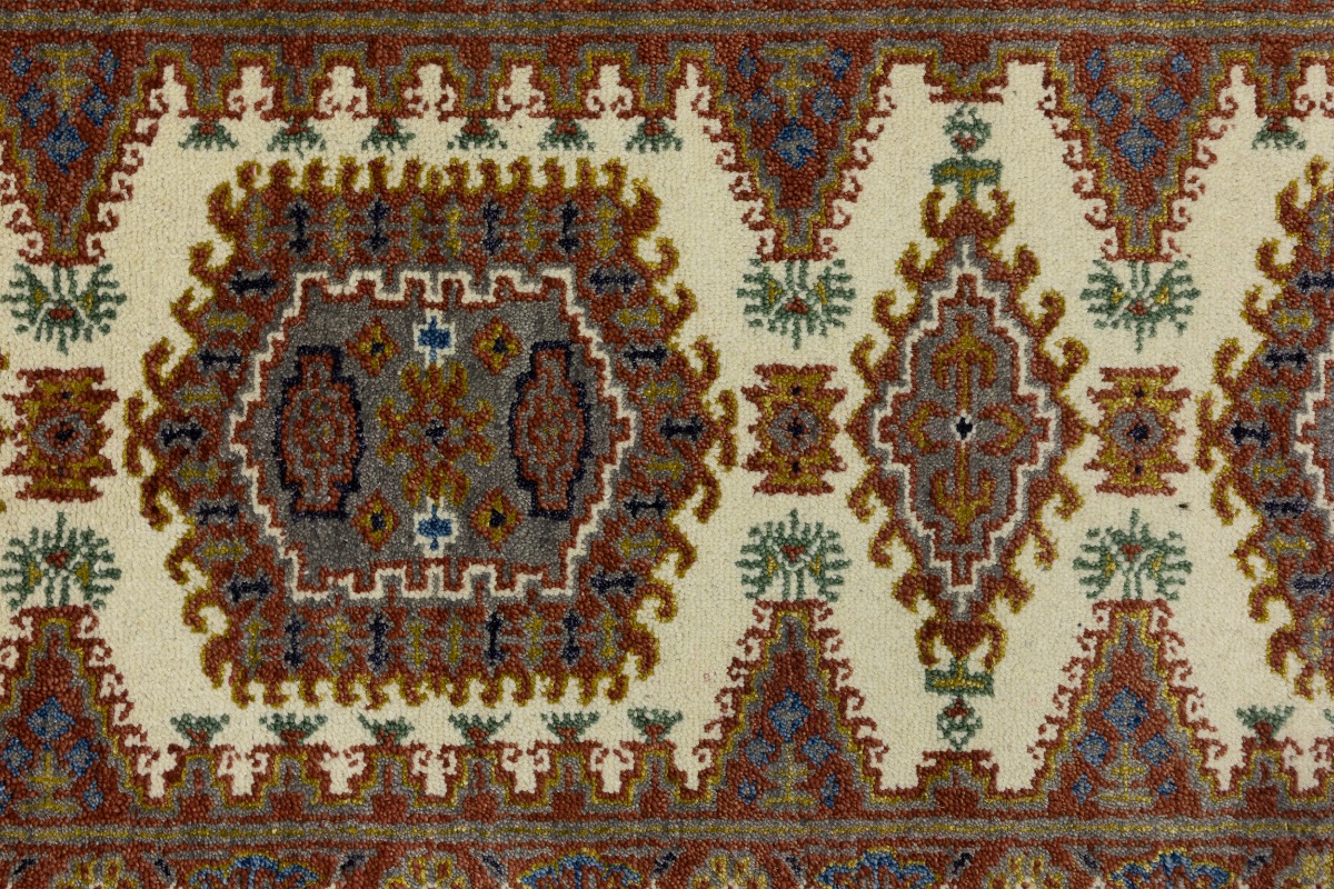 This original 3X10 cream new Oriental runner was finely knotted by the hands of weavers influenced by a variety of amazing artistic designs, to recreate the aged look of the exceptional piece with a richness of color and embellished background field. What set this vintage style Oriental area runner from the others are the material and dye used (wool pile and cotton foundation), knot count, antique designs, fantastic grades, and its regional historical connection: it has deep roots, from the story of the people who produced it to the meaning of the symbols and colors displayed across its canvas that have been praised for centuries. This Indian home décor carpet will be completely cozy and inviting that never will go out of style! Also, this Oriental rug would be among your most valuable treasures, it is a great investment that increase in value over time, and it will last a lifetime because was woven with high-quality, all-natural wool. Eco-friendly, opulent yet affordable; this runner will give you an extra pop of character to help define your home environment with luxury and warmth that will capture the eyes and attention of your audience (homeowners, designers, decorators, family and friends). OT-8021