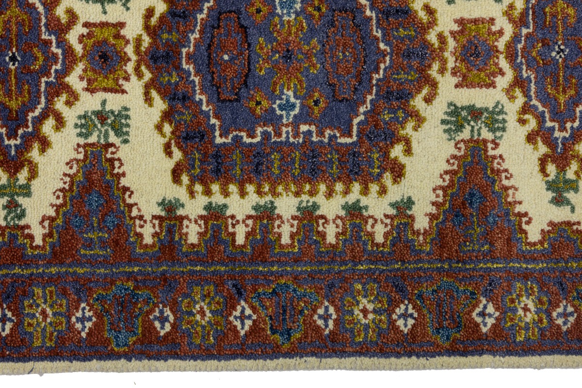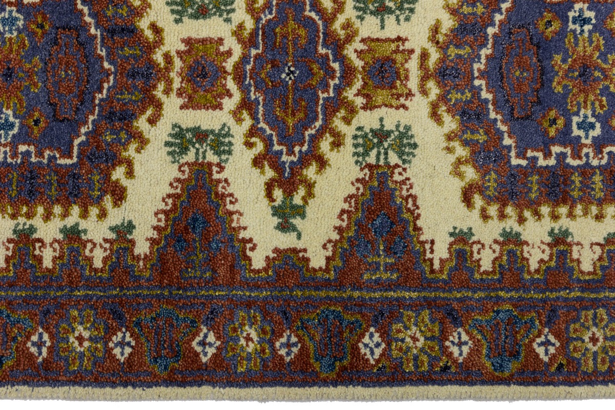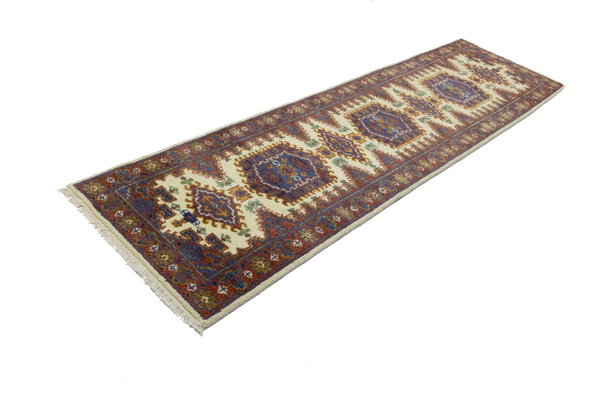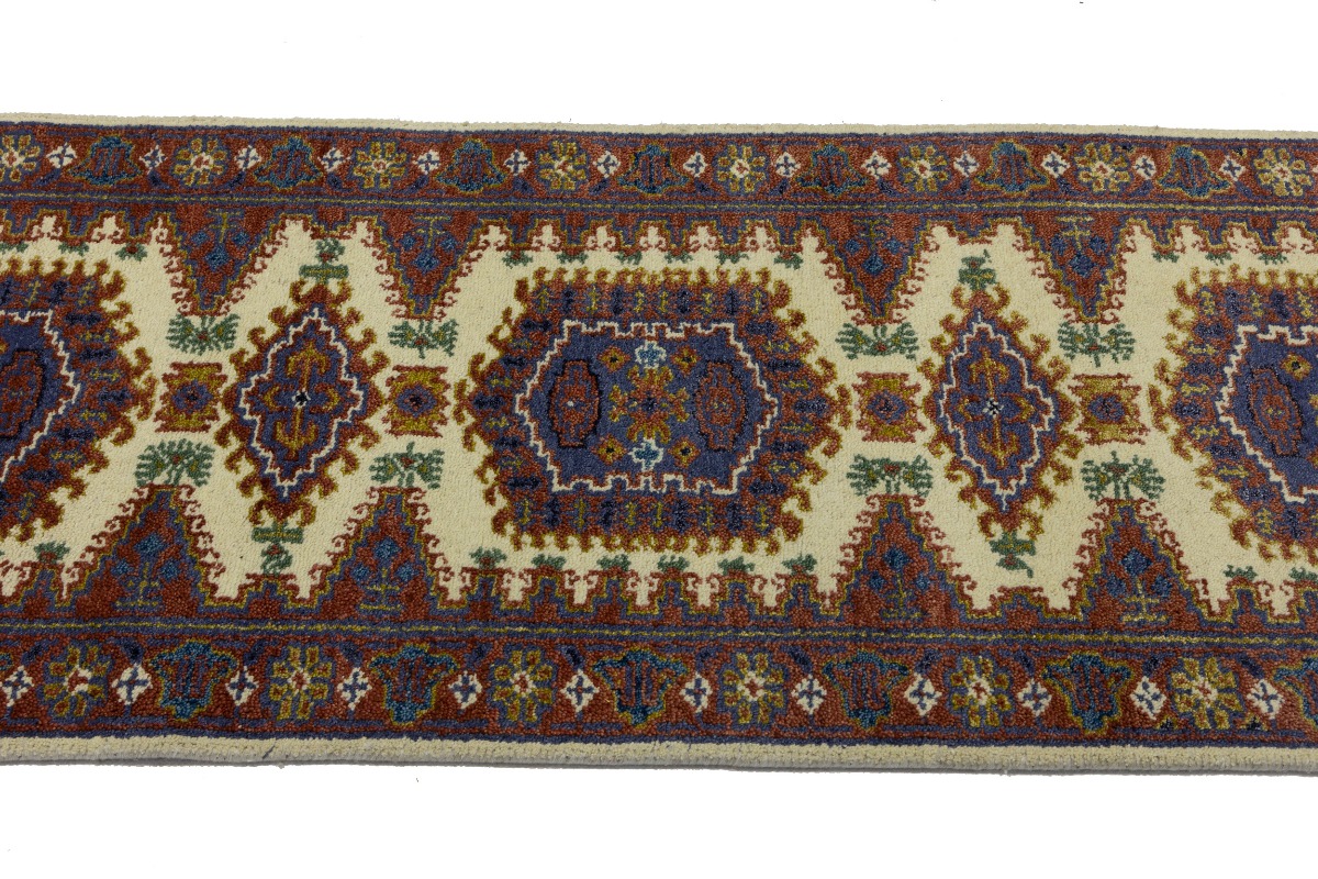 This authentic 3X10 cream new Oriental runner was masterly knotted by the hands of weavers inspired by a variety of wonderful artistic designs, to recreate the aged look of the original piece with a richness of color and intricate patterned background field. What set this vintage style Oriental area runner from the others are the material and dye used (wool pile and cotton foundation), knot count, antique designs, fantastic grades, and its regional historical connection: it has deep roots, from the story of the people who produced it to the meaning of the symbols and colors displayed across its canvas that have been praised for centuries. This Indian home décor carpet will be completely cozy and inviting that never will go out of style! Also, this Oriental rug would be among your most valuable treasures, it is a great investment that accrues value over time, and it will last for generations because was woven with high-quality, all-natural wool. Environmentally friendly, opulent yet affordable; this runner will give you a thorough amount of character to help define your living space with luxury and warmth that will capture the eyes and attention of your audience (homeowners, designers, decorators, family and friends). OT-8025
