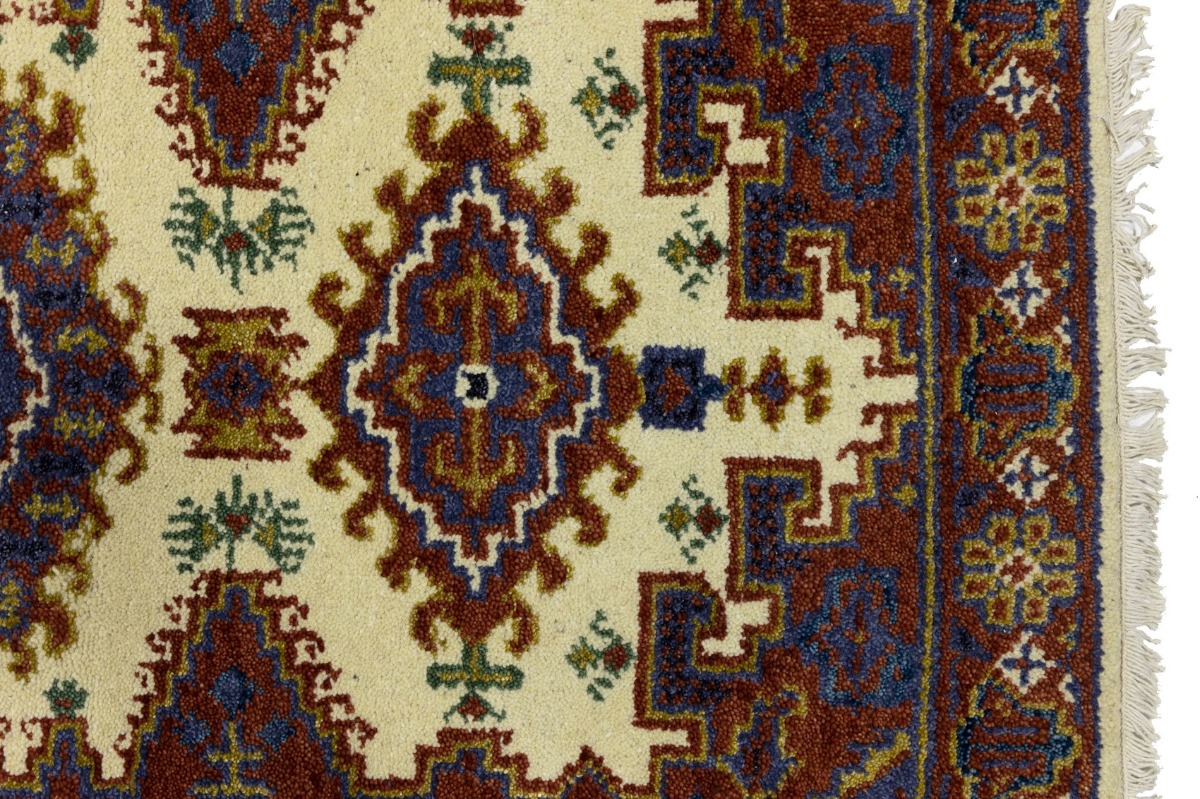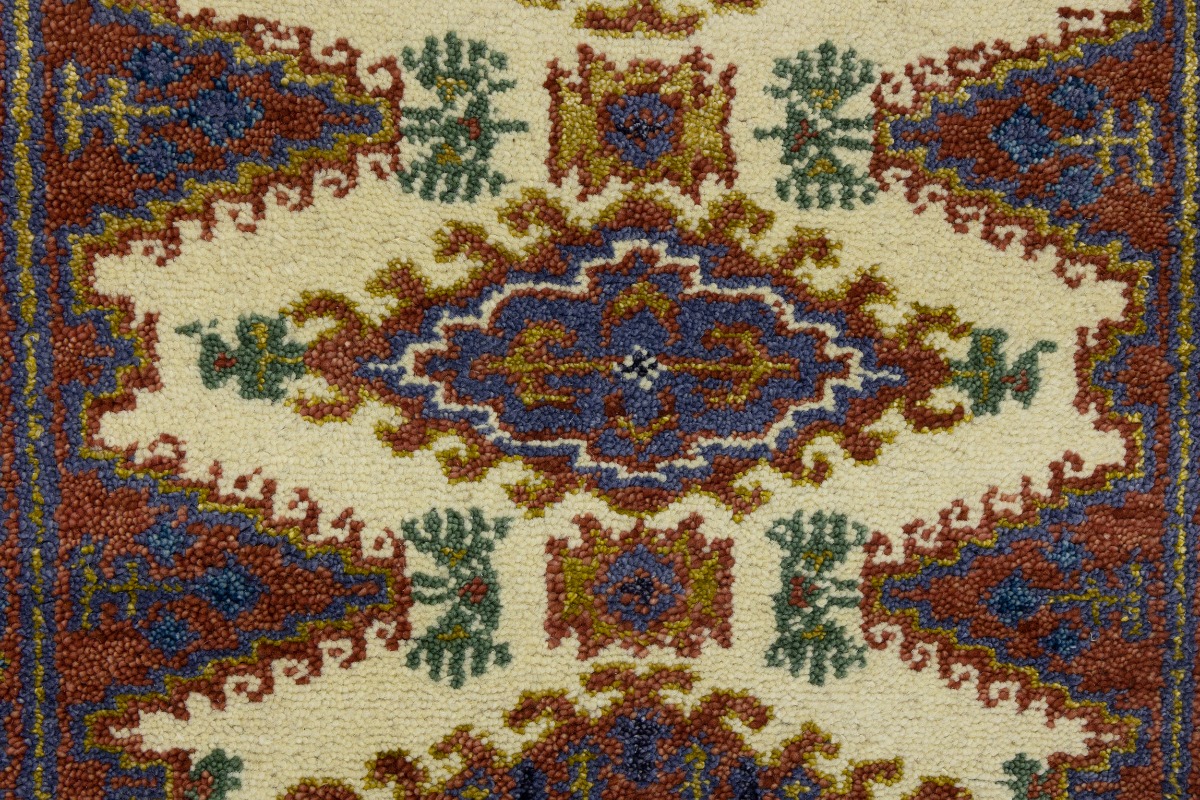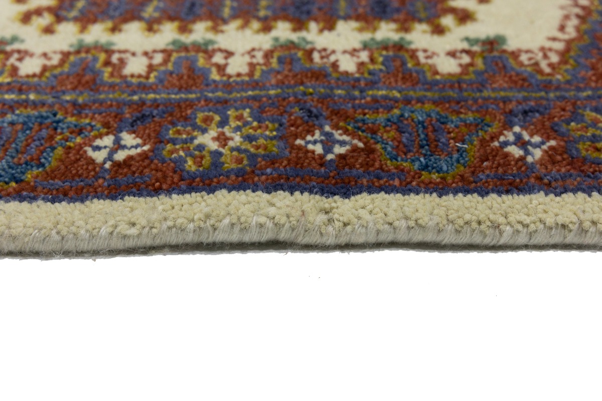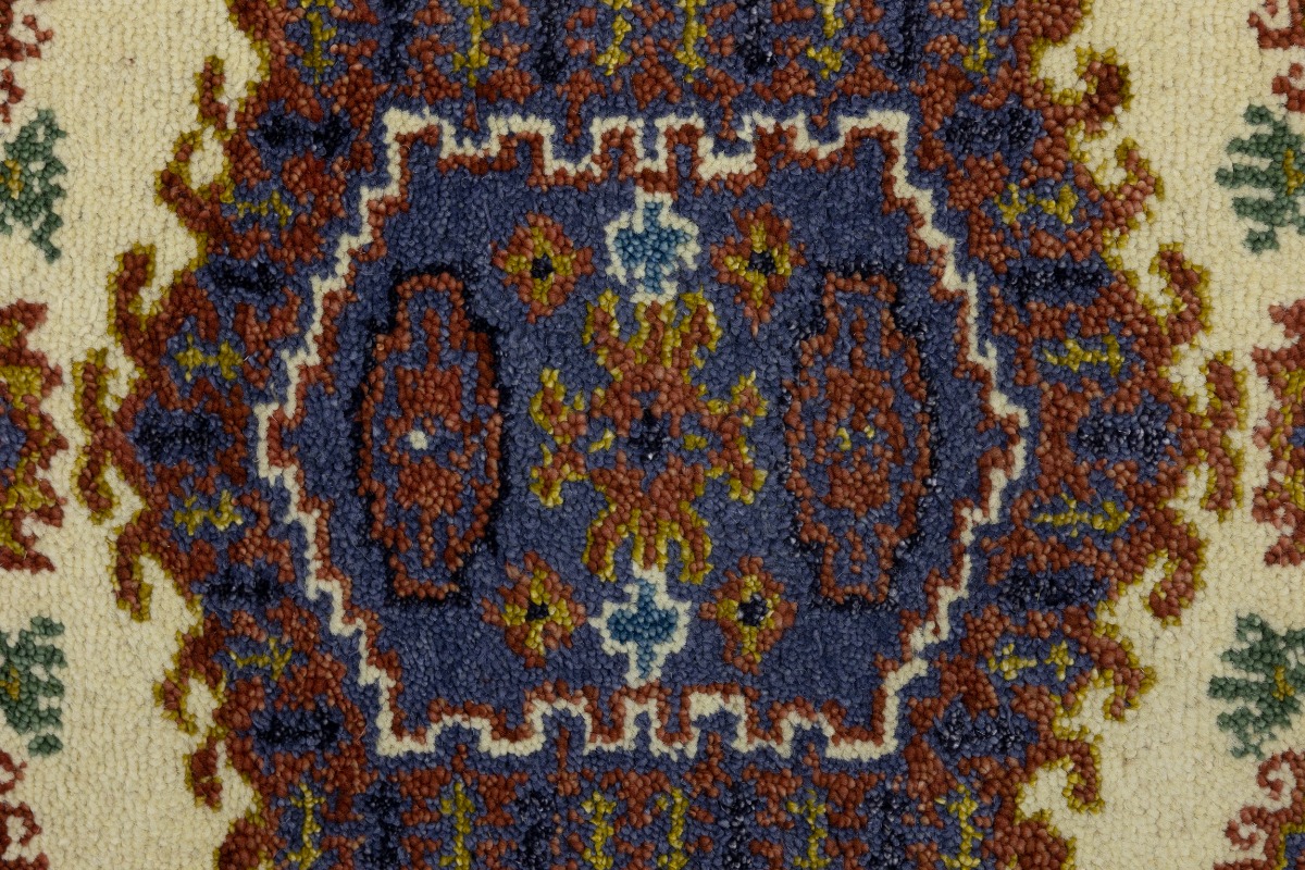 This authentic 3X10 cream new Oriental runner was masterly knotted by the hands of weavers inspired by a variety of wonderful artistic designs, to recreate the aged look of the original piece with a richness of color and intricate patterned background field. What set this vintage style Oriental area runner from the others are the material and dye used (wool pile and cotton foundation), knot count, antique designs, fantastic grades, and its regional historical connection: it has deep roots, from the story of the people who produced it to the meaning of the symbols and colors displayed across its canvas that have been praised for centuries. This Indian home décor carpet will be completely cozy and inviting that never will go out of style! Also, this Oriental rug would be among your most valuable treasures, it is a great investment that accrues value over time, and it will last for generations because was woven with high-quality, all-natural wool. Environmentally friendly, opulent yet affordable; this runner will give you a thorough amount of character to help define your living space with luxury and warmth that will capture the eyes and attention of your audience (homeowners, designers, decorators, family and friends). OT-8025