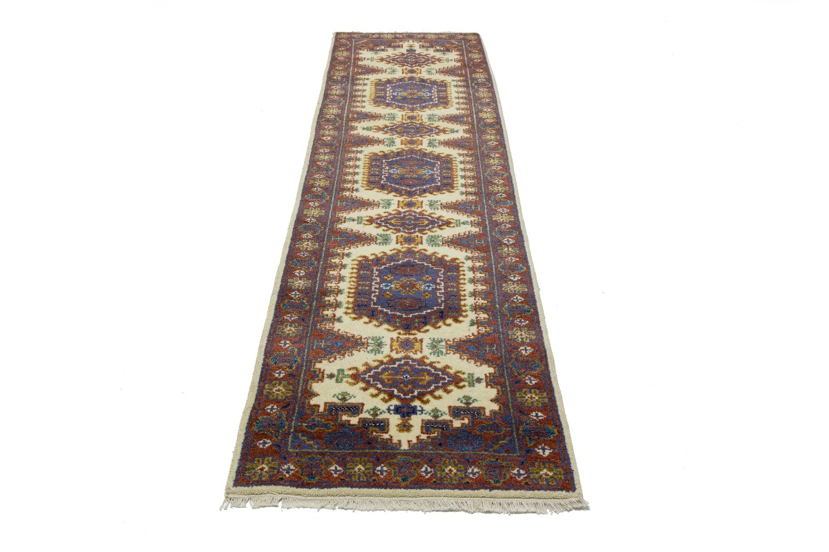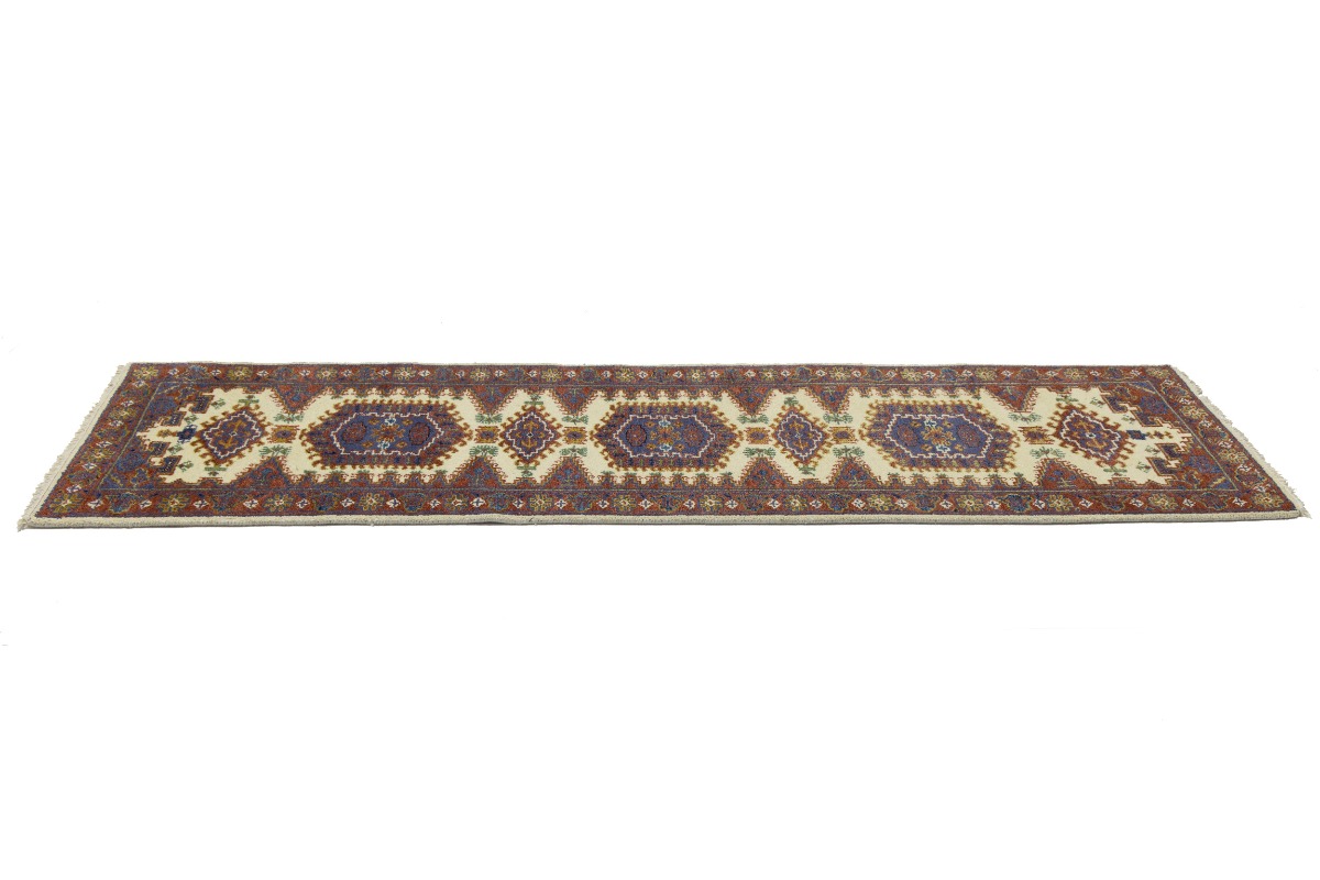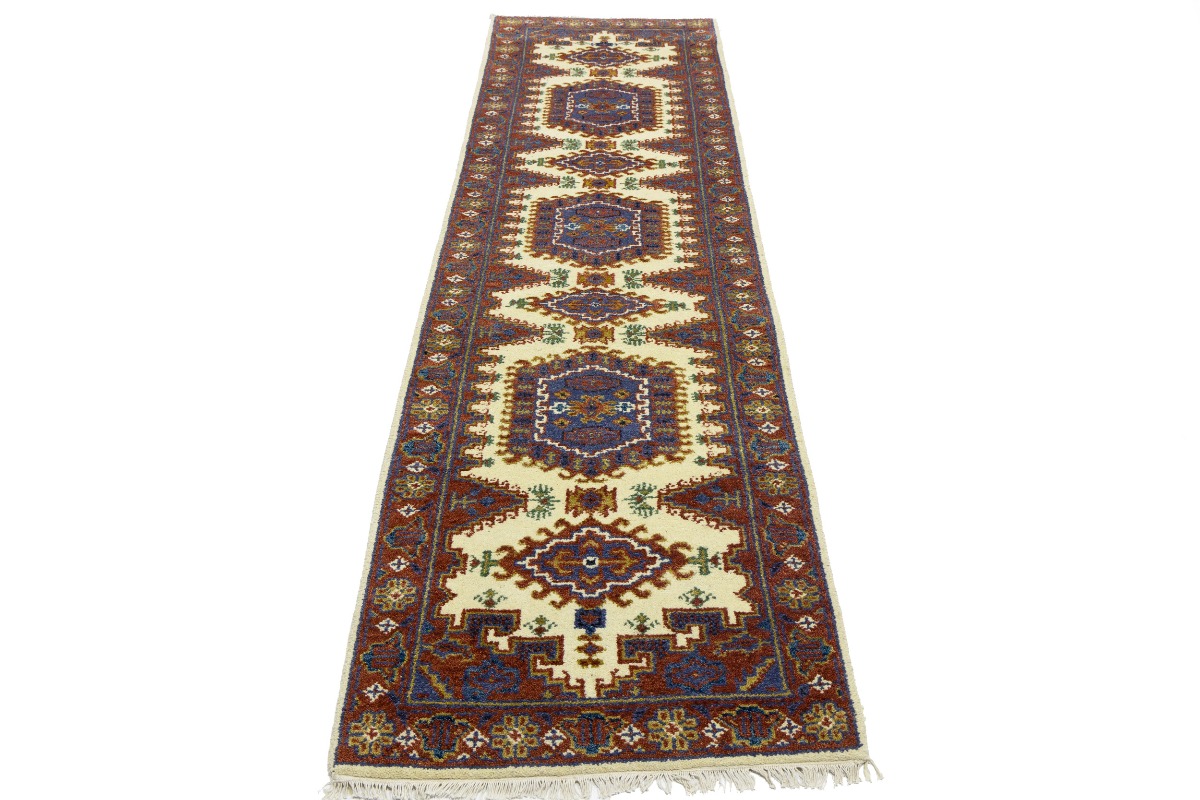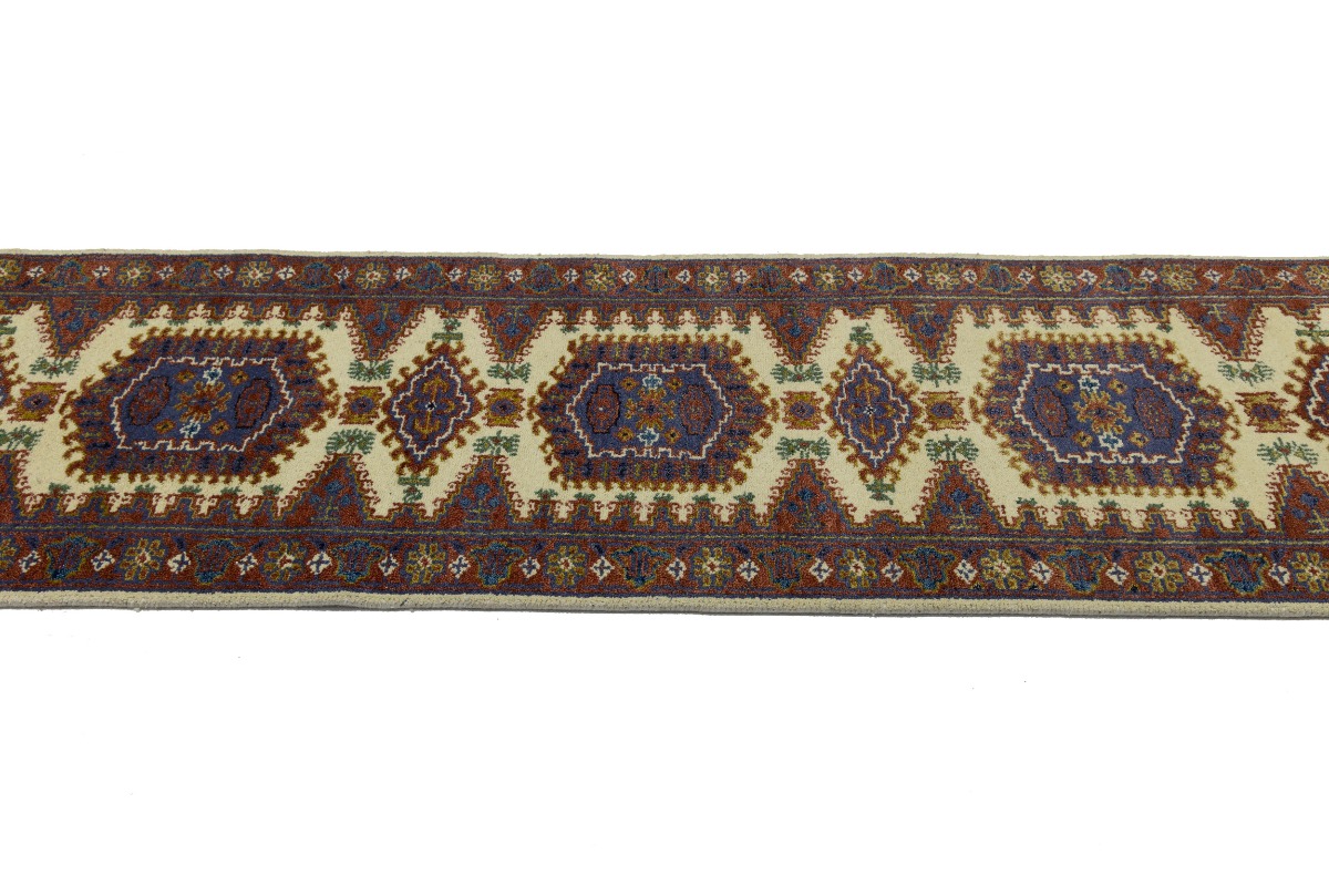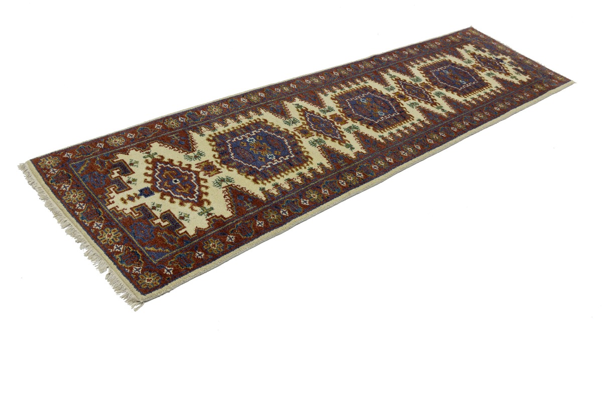 Hand Knotted 3X10 cream oriental runner made with vegetable dyes (fine wool pile and cotton foundation), superior knot count, and appealing ancient designs. This Oriental runner never will go out of style and would be among your most valuable treasures.