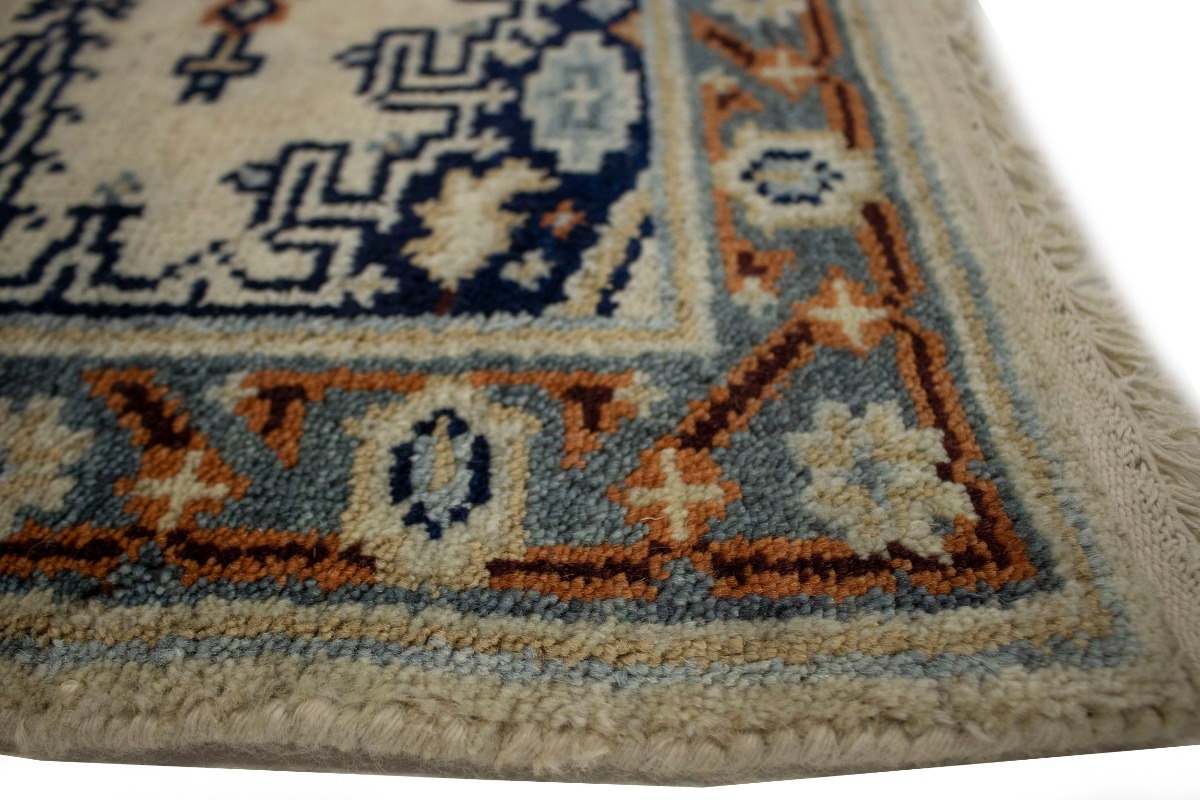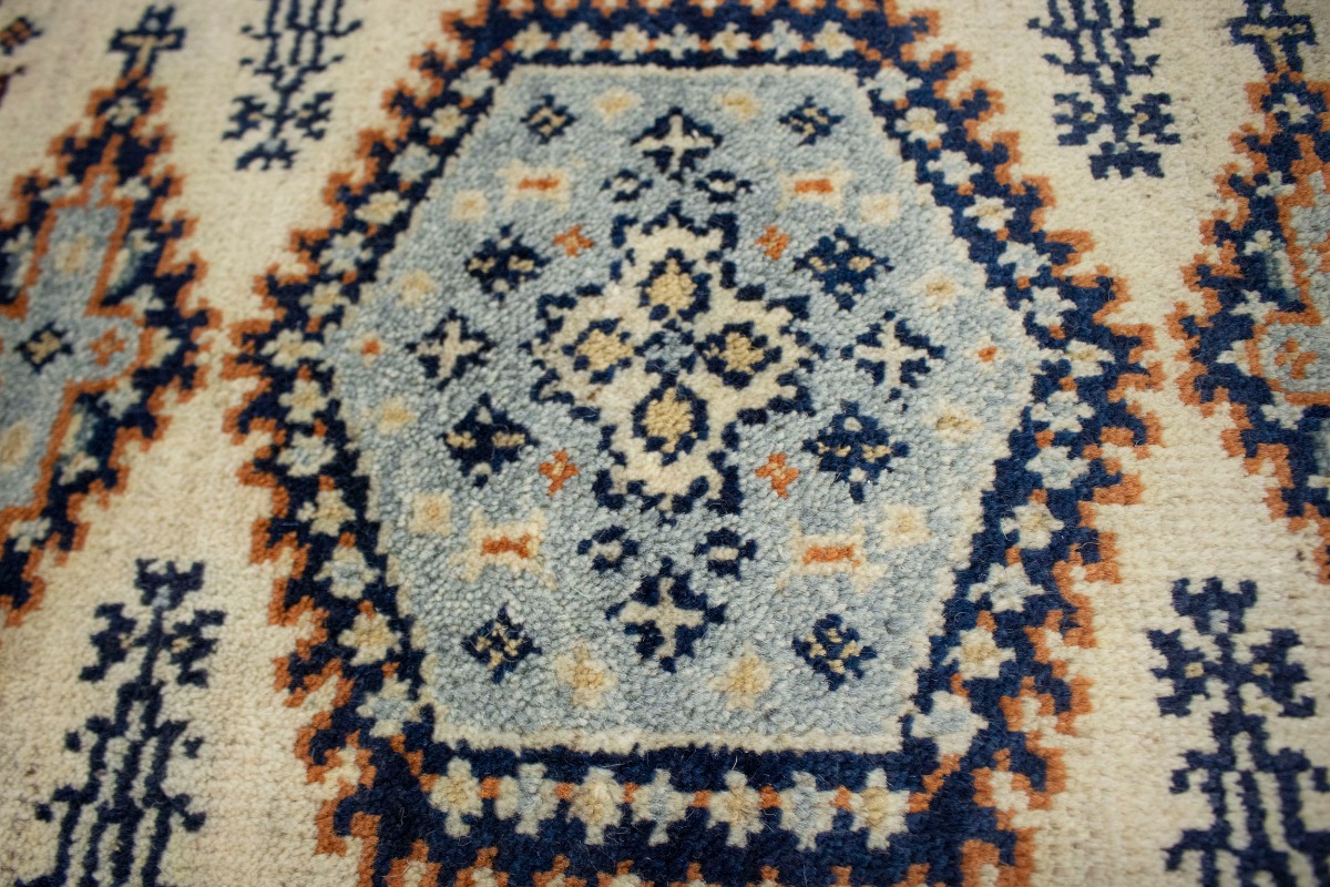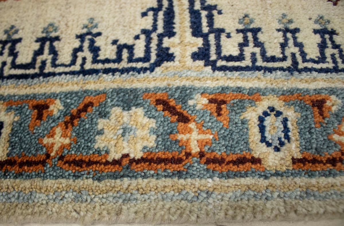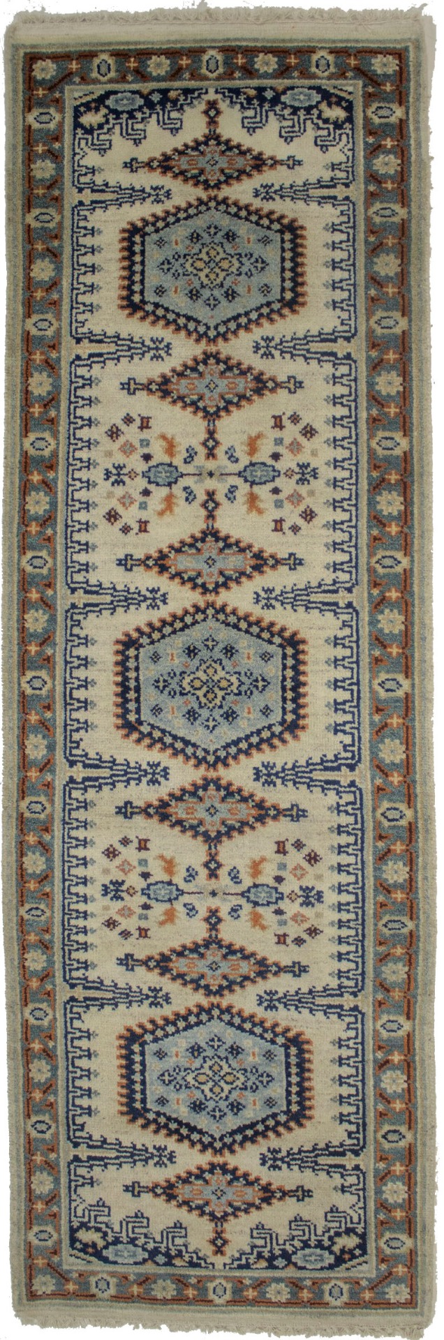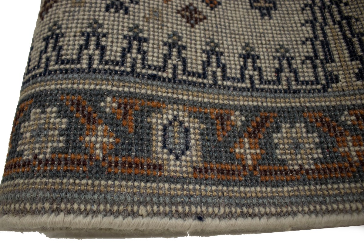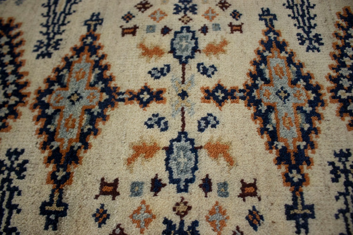 This authentic 3X8 cream new Oriental runner was crafted by the hands of skilled weavers enthused by a variety of lovely artistic designs, to recreate the aged look of the unique piece with a richness of color and beautifully elaborated background field. What set this vintage style Oriental area runner from the others are the material and dye used (wool pile and cotton foundation), knot count, ancient designs, fantastic grades, and its regional historical connection: it has deep roots, from the story of the people who produced it to the meaning of the symbols and colors displayed across its canvas that have been praised for centuries. This Indian home décor carpet will be completely cozy and inviting that never will go out of style! Also, this Oriental rug would be among your most valuable treasures, it is a great investment that increase in value over time, and it will last for generations because was woven with high-quality, all-natural wool. Environmentally friendly, opulent yet affordable; this runner will give you a thorough amount of character to help define your living space with sophistication and warmth that will capture the eyes and attention of your audience (homeowners, designers, decorators, family and friends). OT-5533