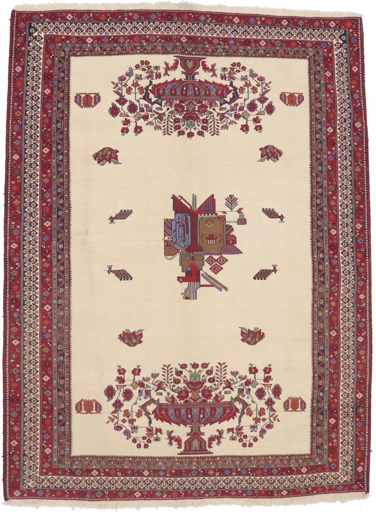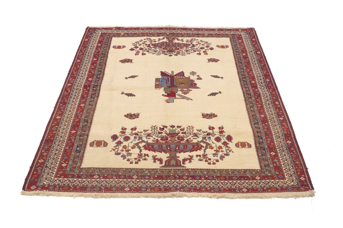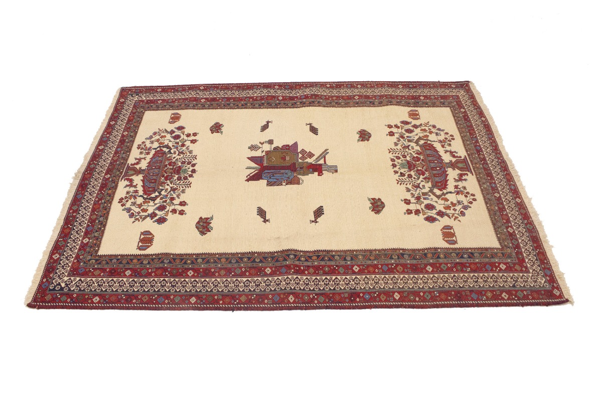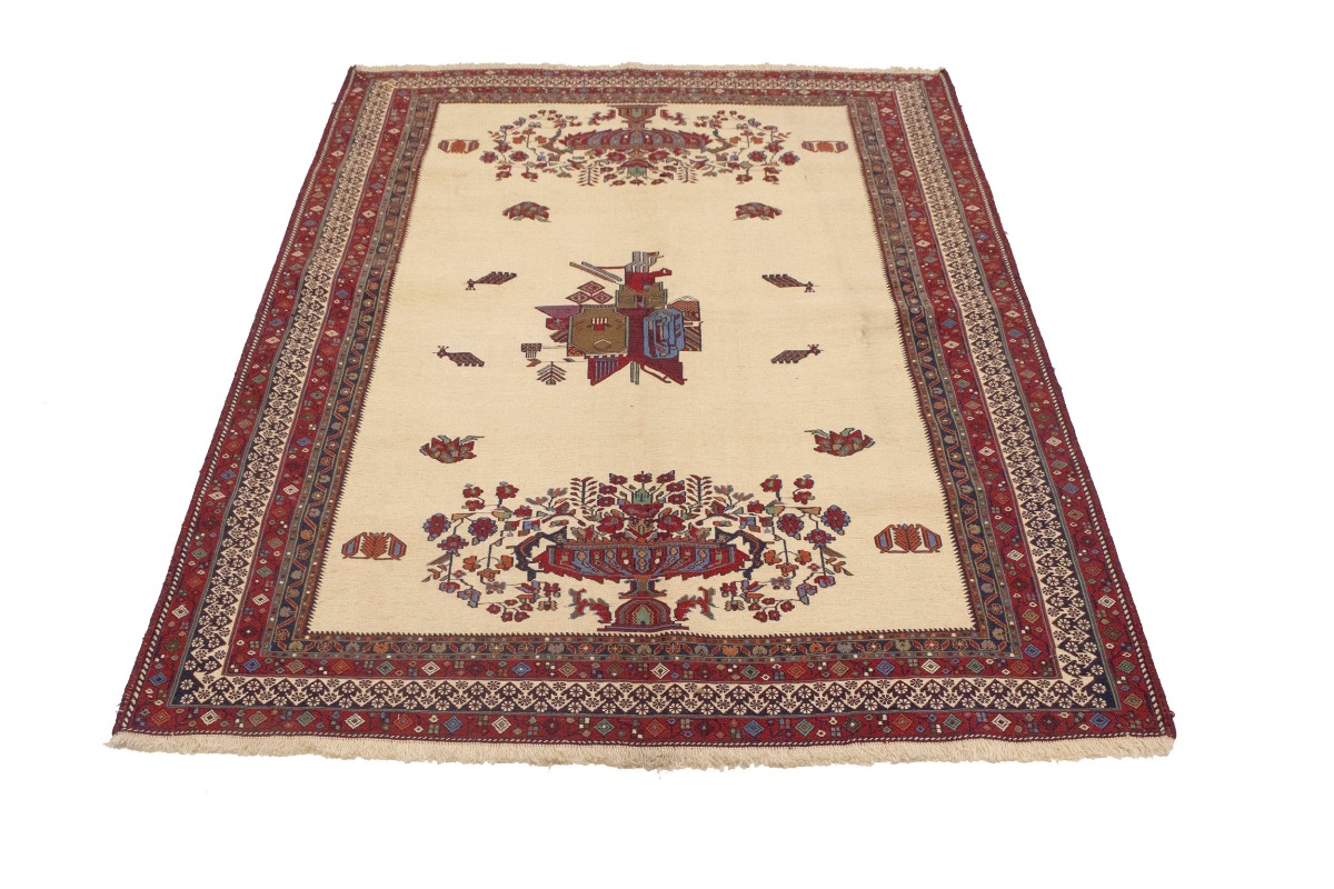 Cream Tribal 4'6X6 Sumak Persian Rug