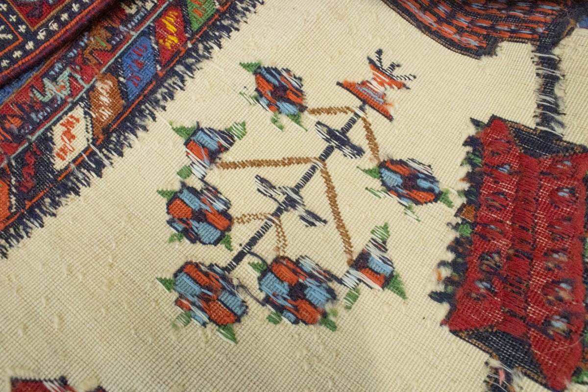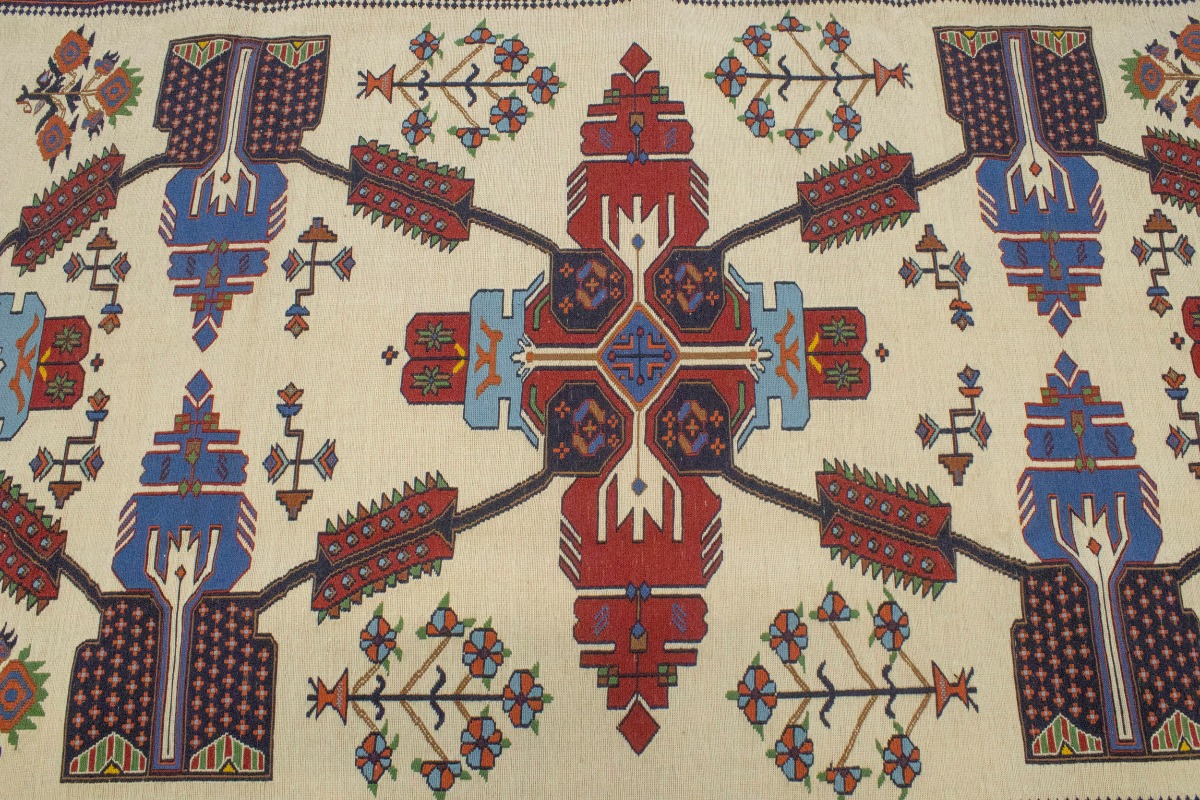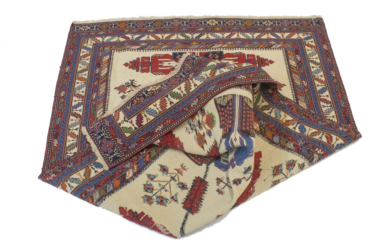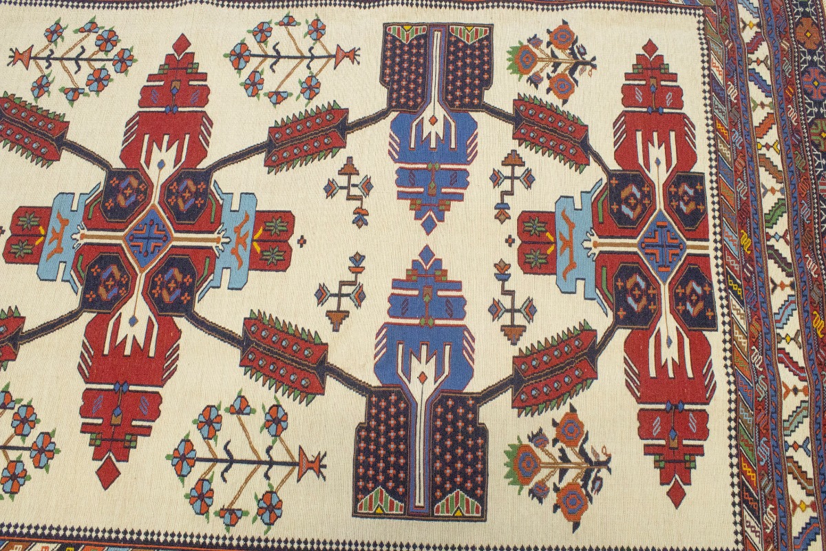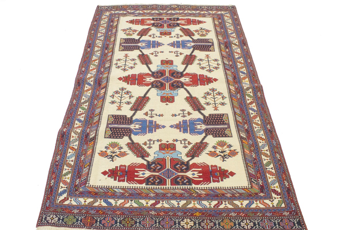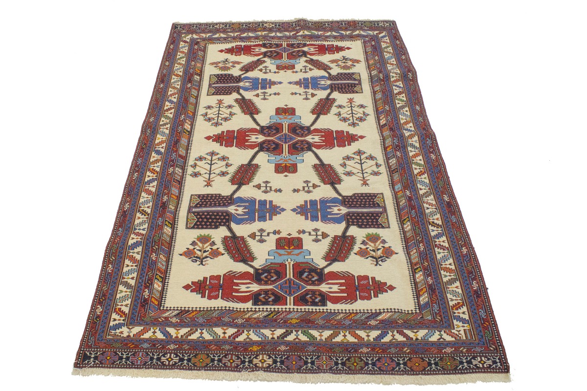 Handmade 4X7 cream Oriental rug made with natural dyes (fine wool pile and cotton foundation), superior knot count, and appealing ancient designs. This Oriental rug never will go out of style and would be among your most valuable treasures.