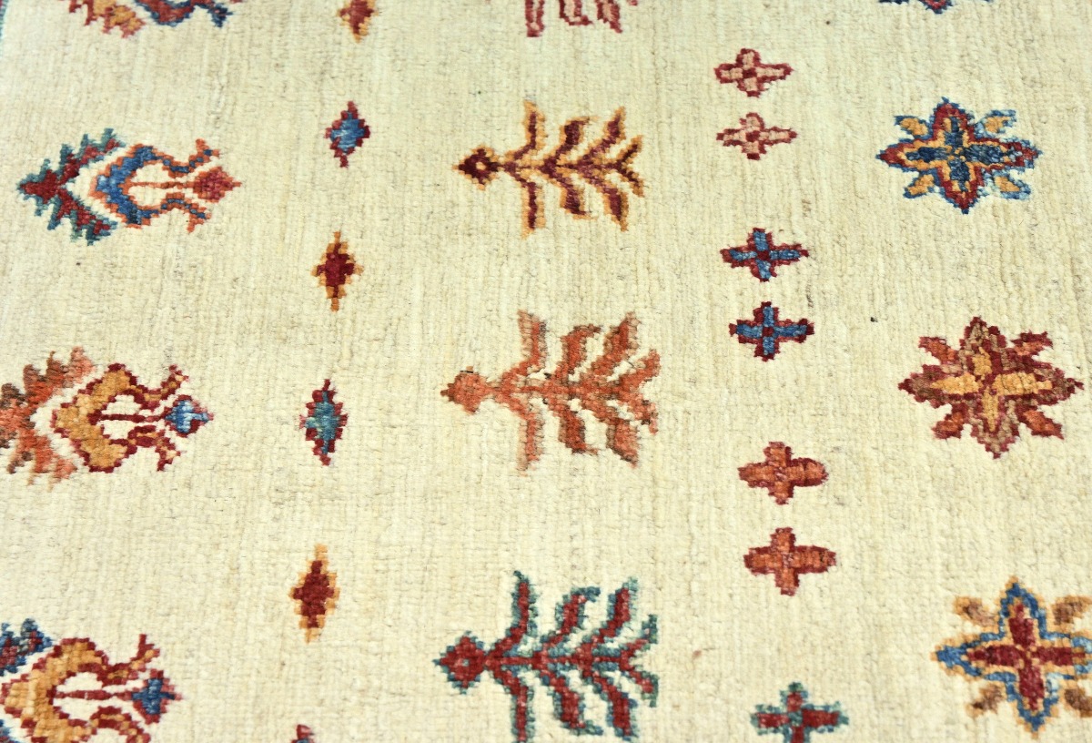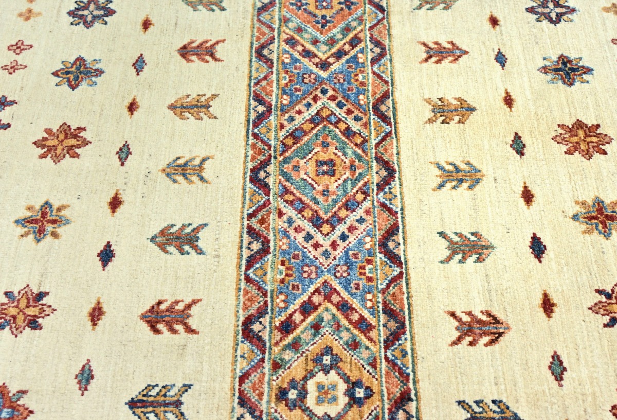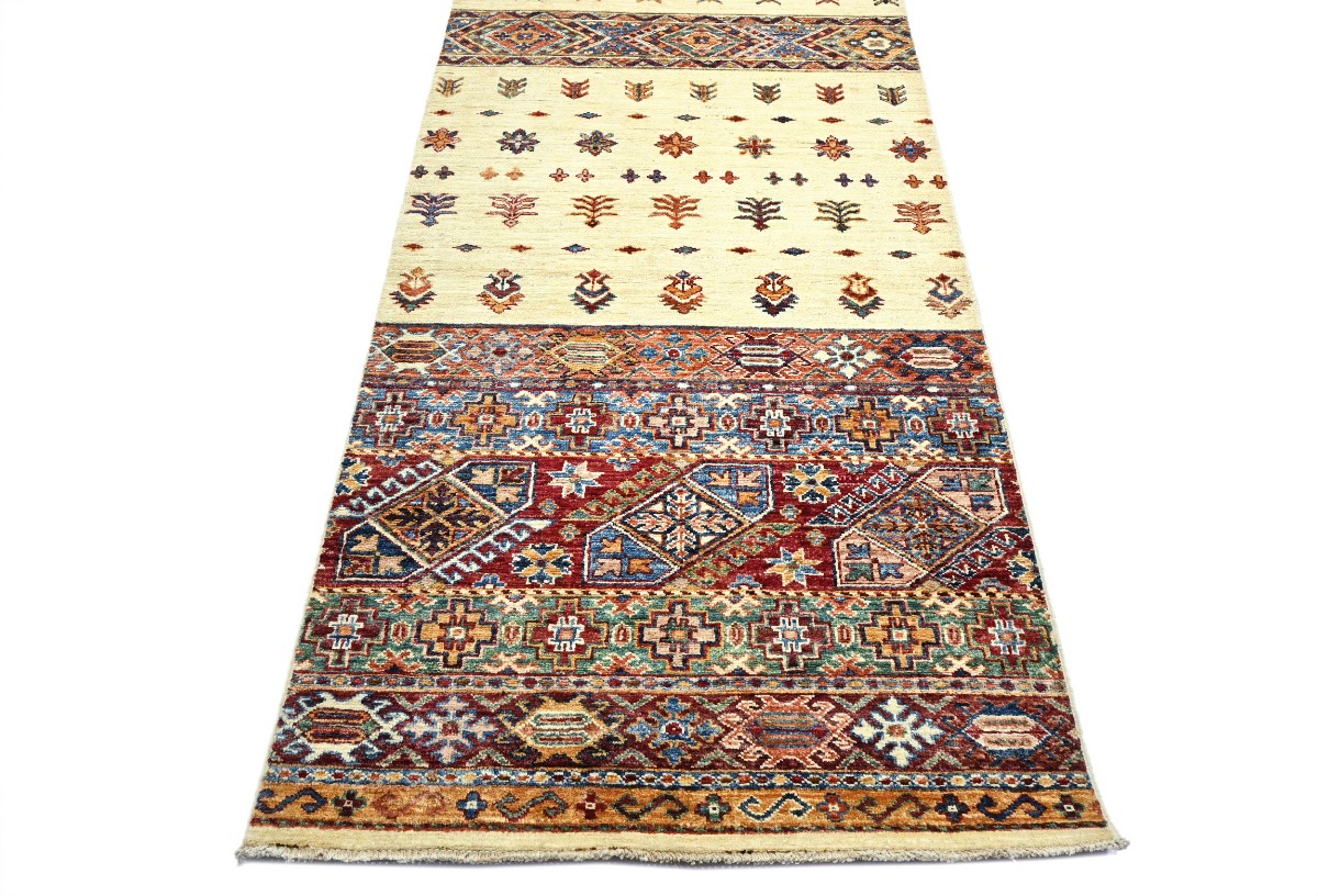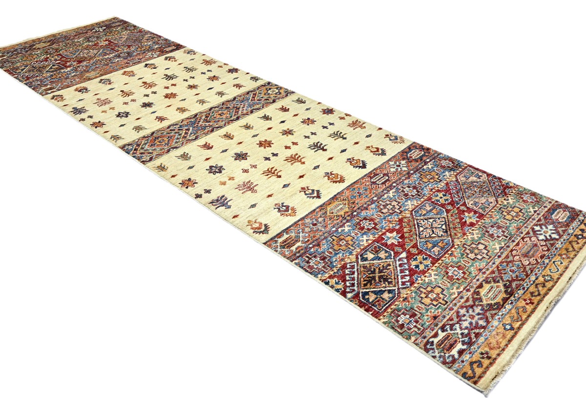 This original 3X10 cream new Oriental runner was finely knotted by the hands of weavers influenced by a variety of amazing artistic designs, to recreate the aged look of the exceptional piece with a richness of color and embellished background field. What set this vintage style Oriental area runner from the others are the material and dye used (wool pile and cotton foundation), knot count, antique designs, fantastic grades, and its regional historical connection: it has deep roots, from the story of the people who produced it to the meaning of the symbols and colors displayed across its canvas that have been praised for centuries. This Indian home décor carpet will be completely cozy and inviting that never will go out of style! Also, this Oriental rug would be among your most valuable treasures, it is a great investment that increase in value over time, and it will last a lifetime because was woven with high-quality, all-natural wool. Eco-friendly, opulent yet affordable; this runner will give you an extra pop of character to help define your home environment with luxury and warmth that will capture the eyes and attention of your audience (homeowners, designers, decorators, family and friends). RT-5485
