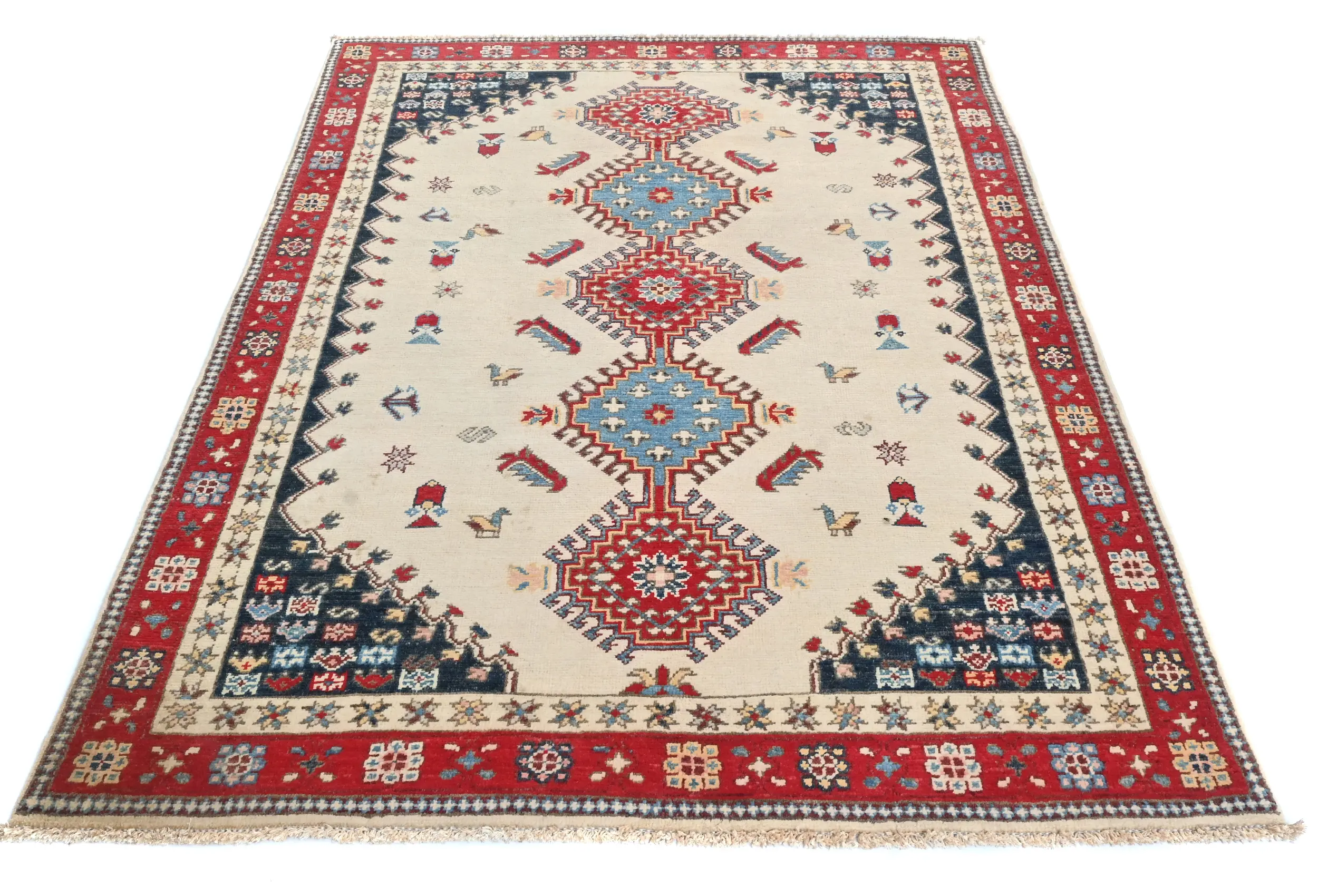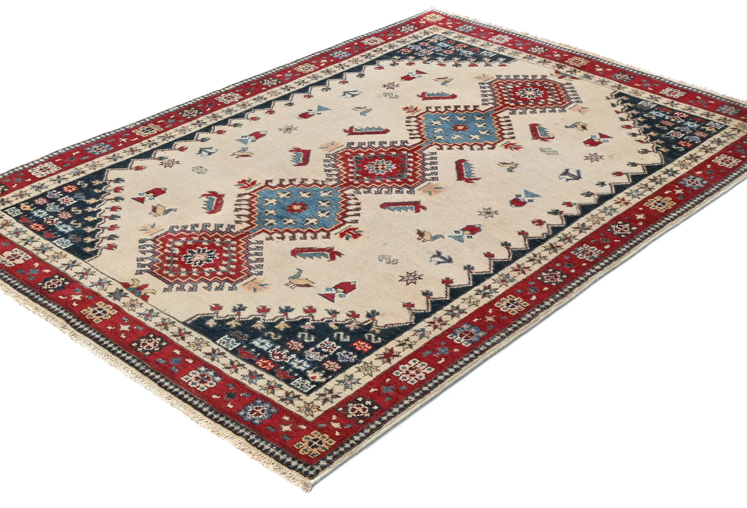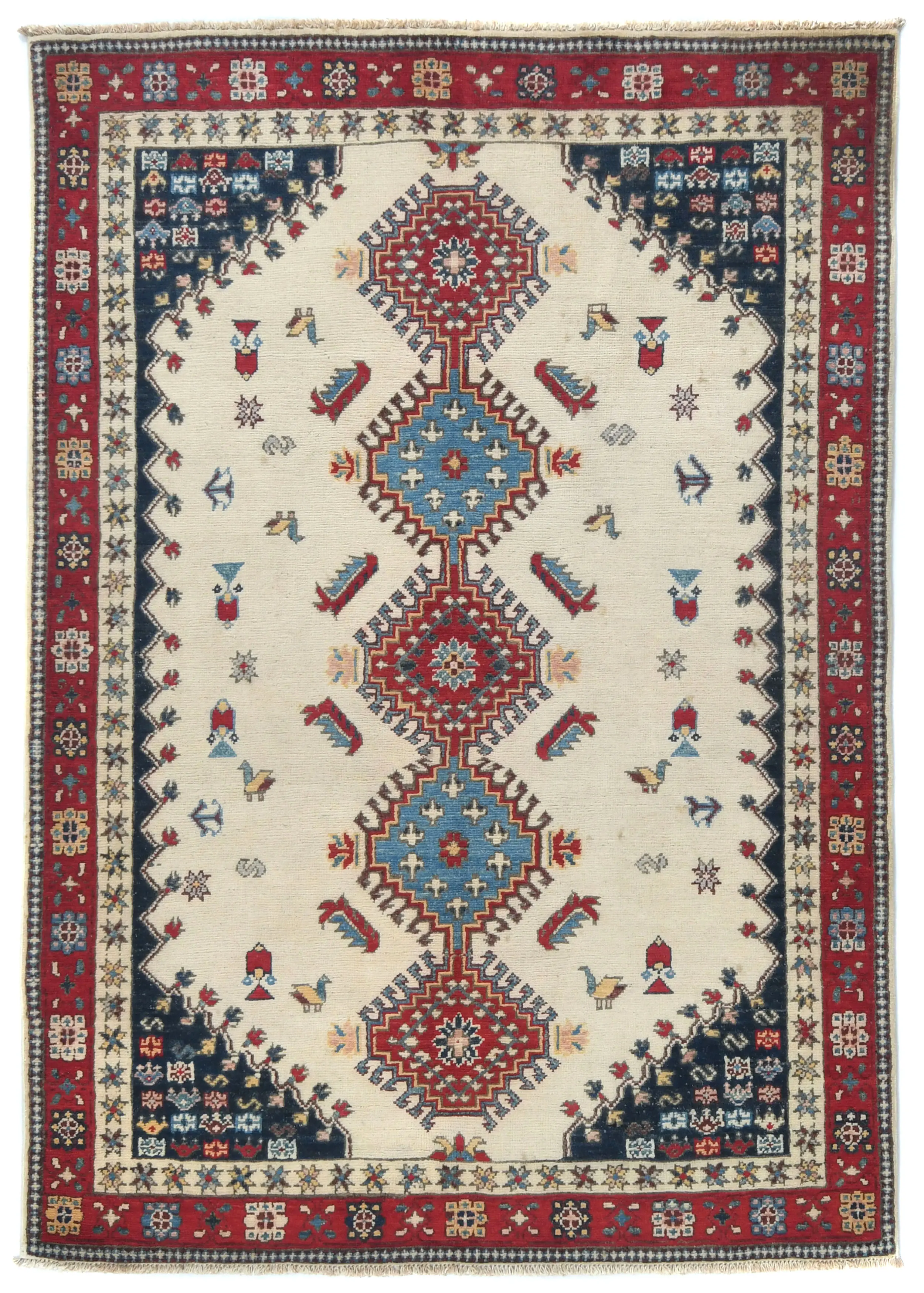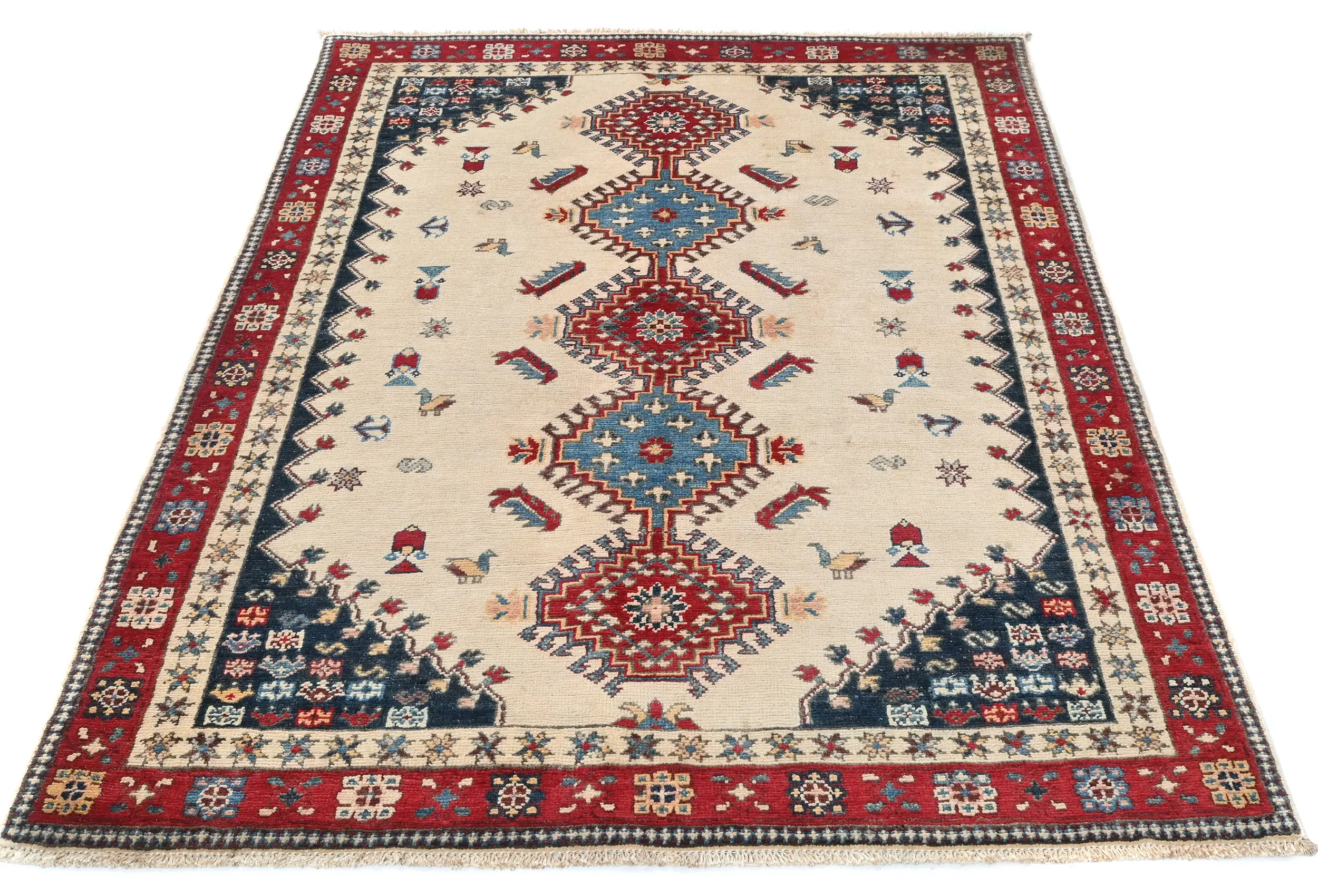 Cream Tribal Geometric 4X6 Kazak Oushak Pakistan Rug