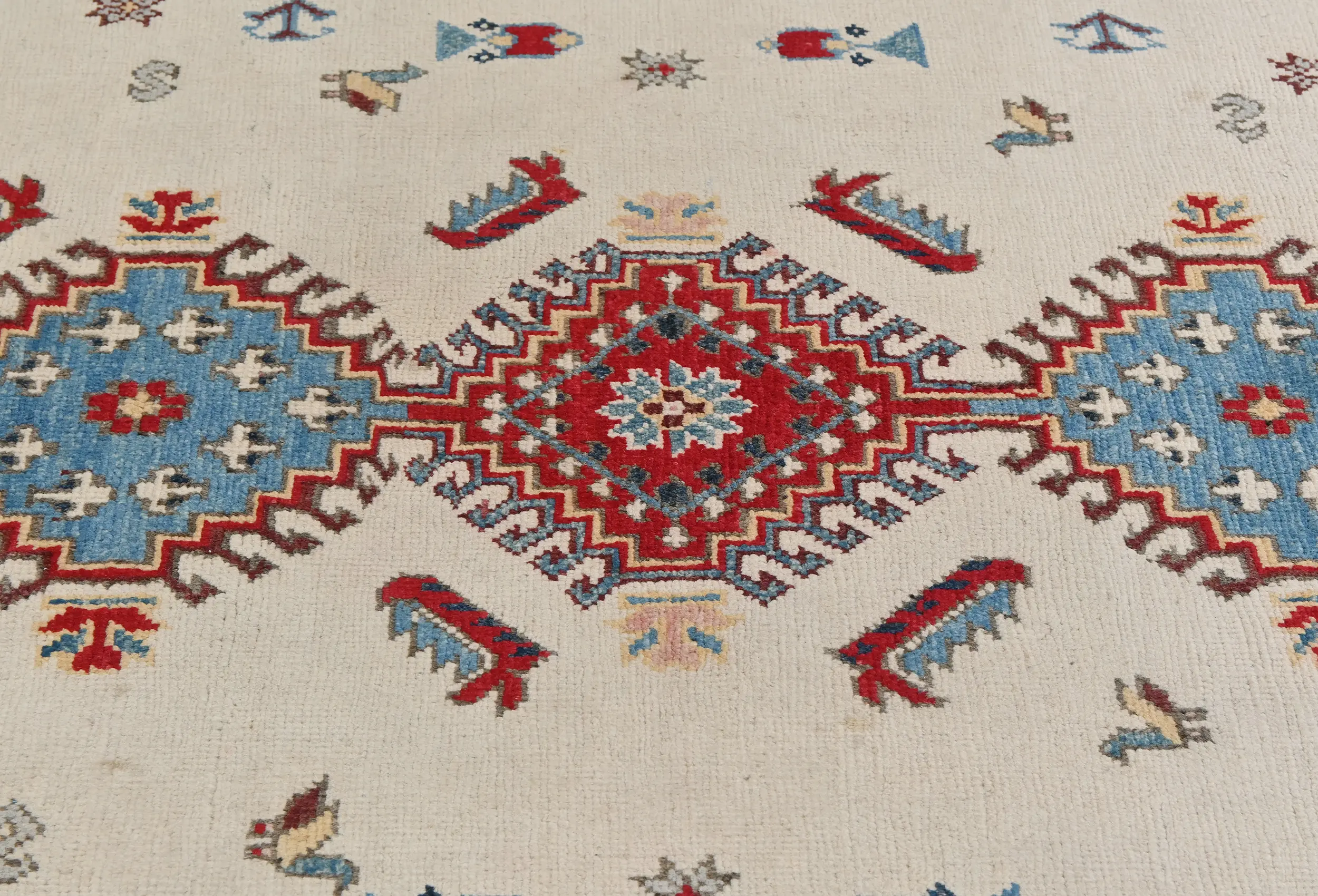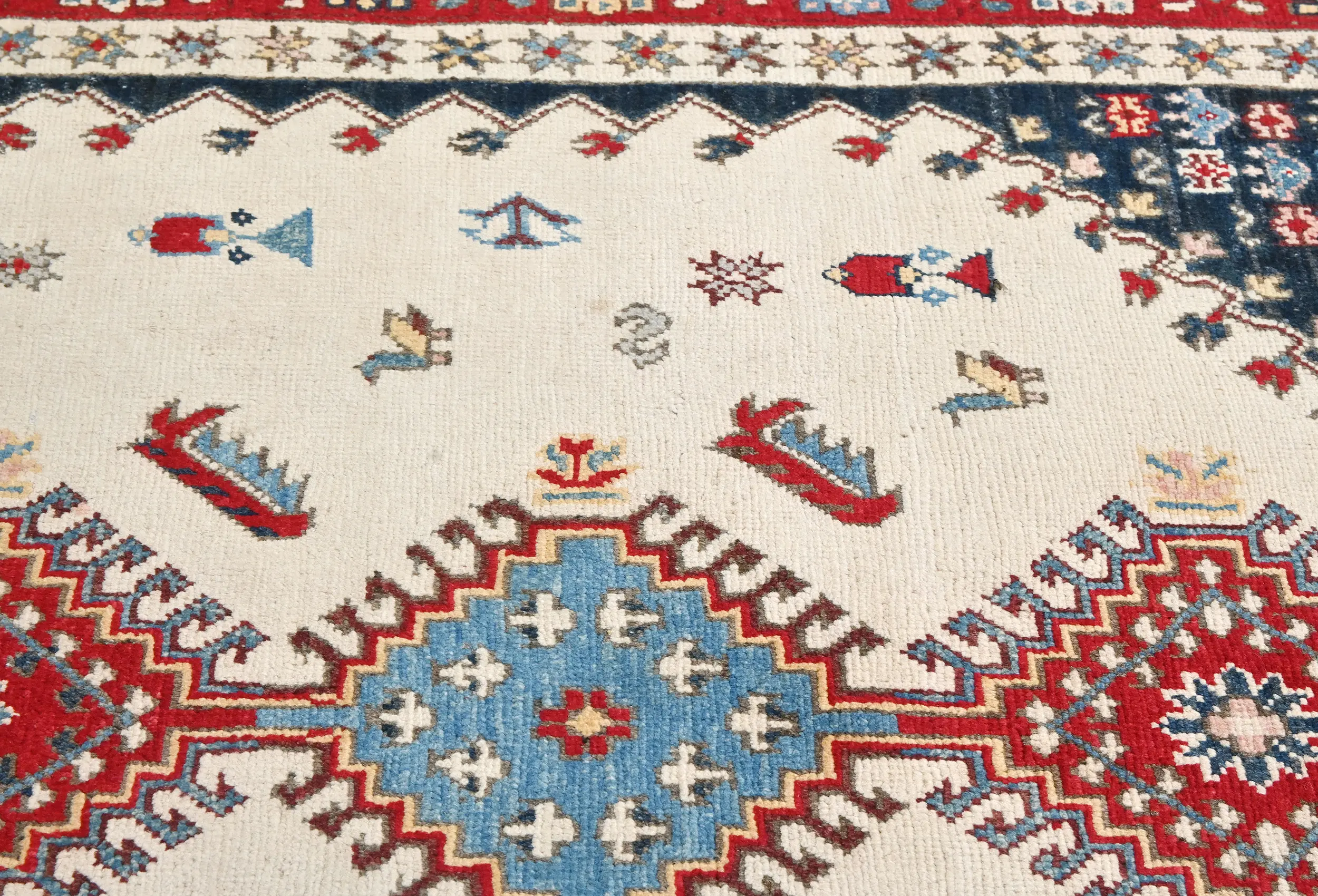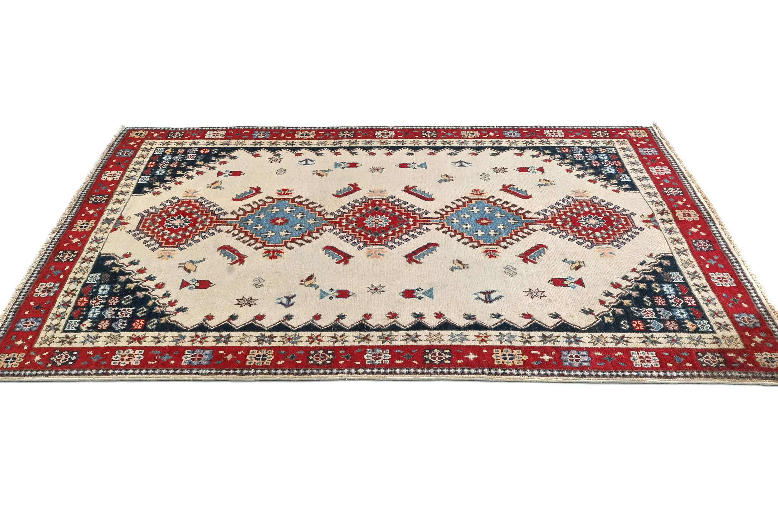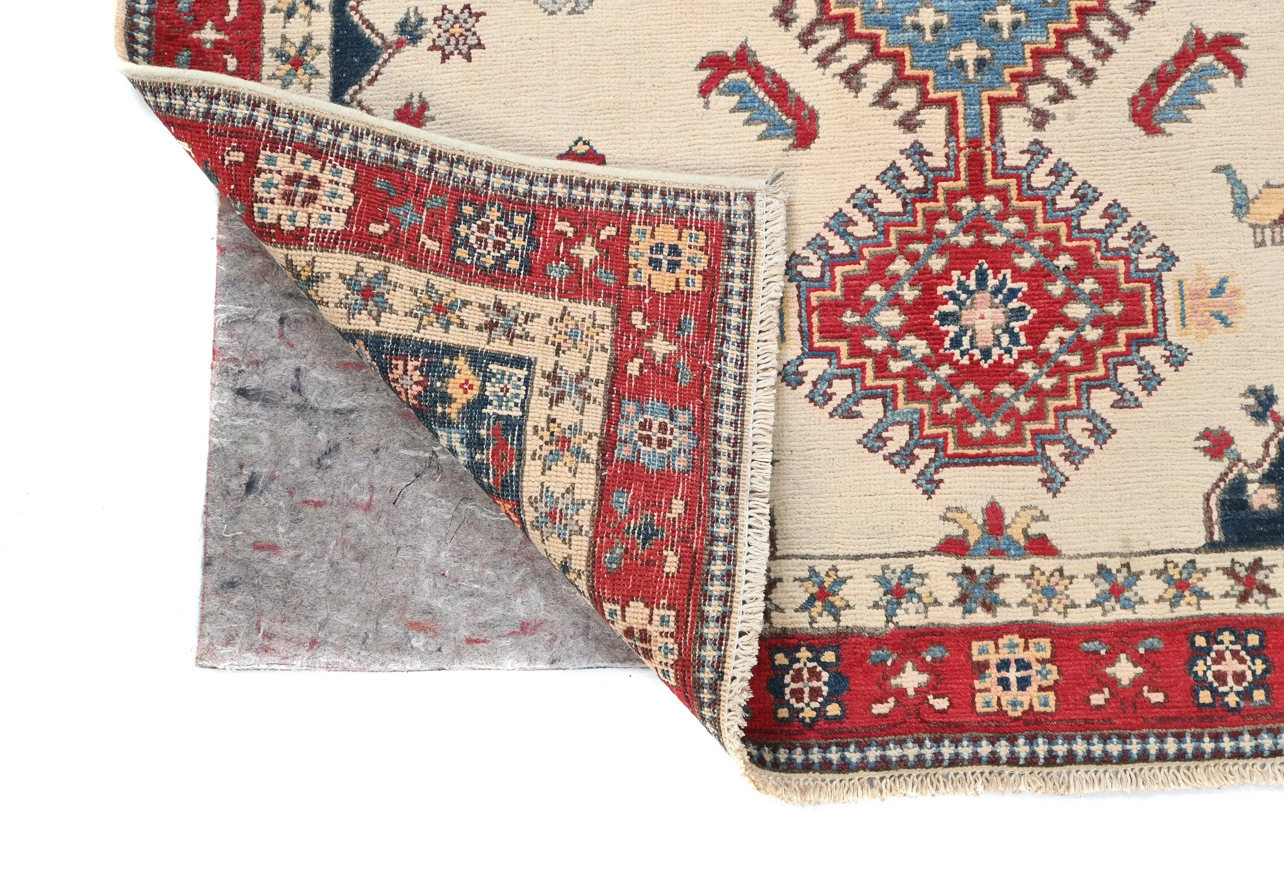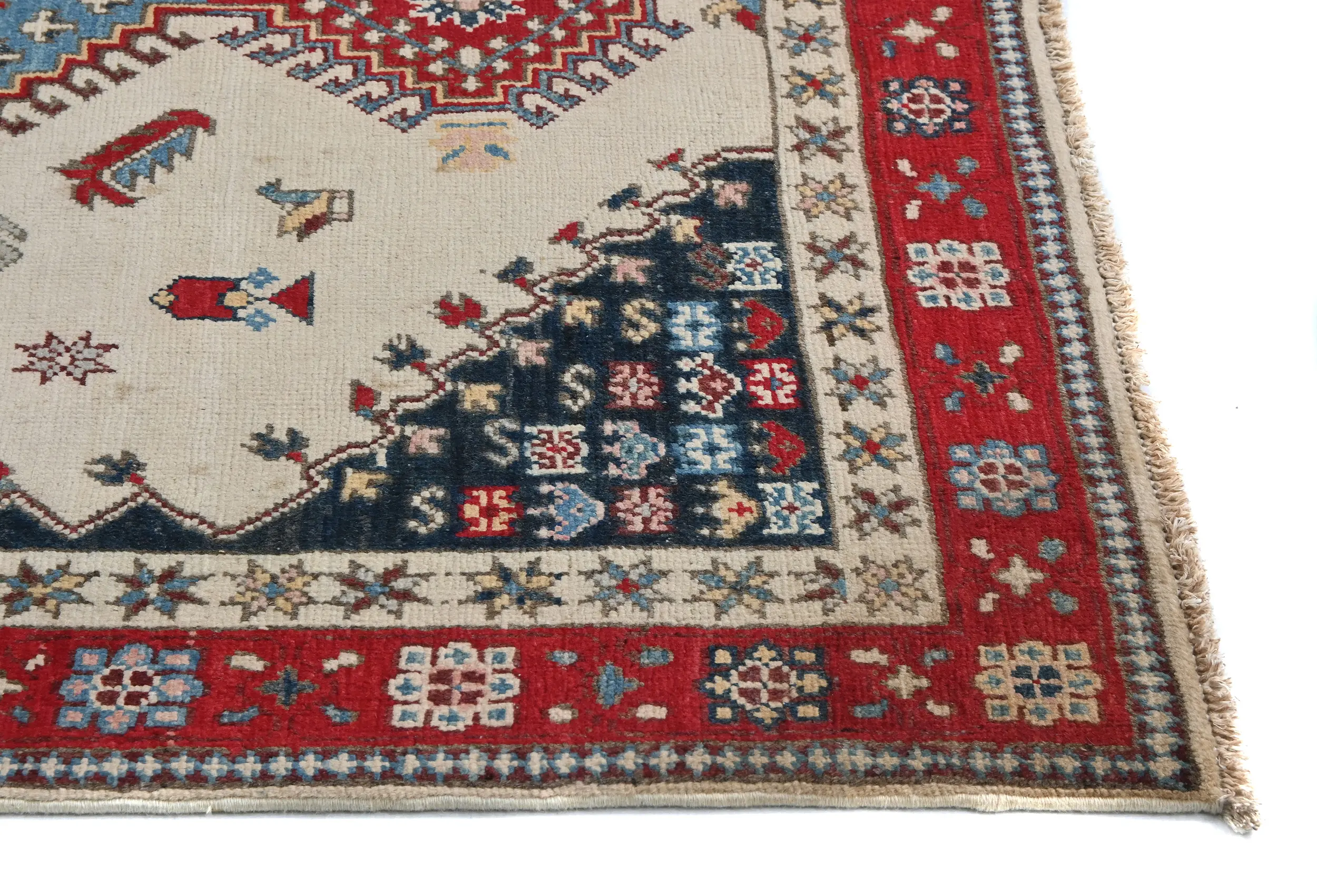 Cream Tribal Geometric 4X6 Kazak Oushak Pakistan Rug
