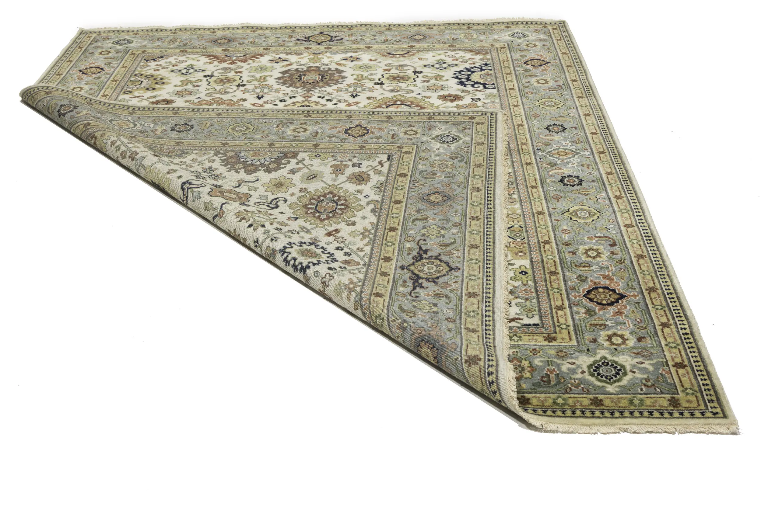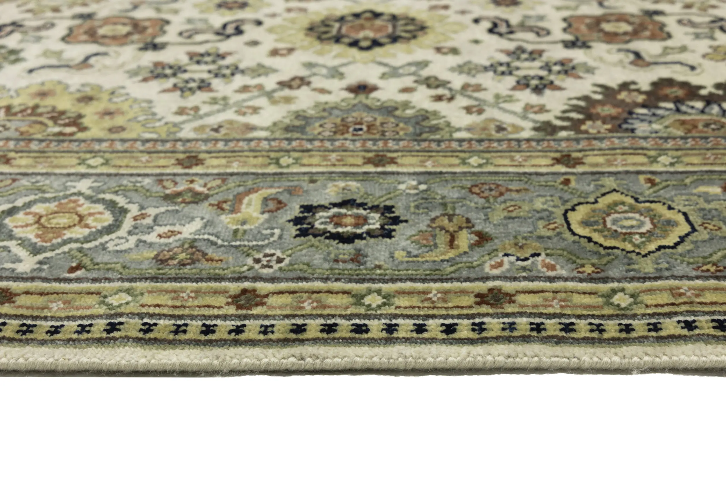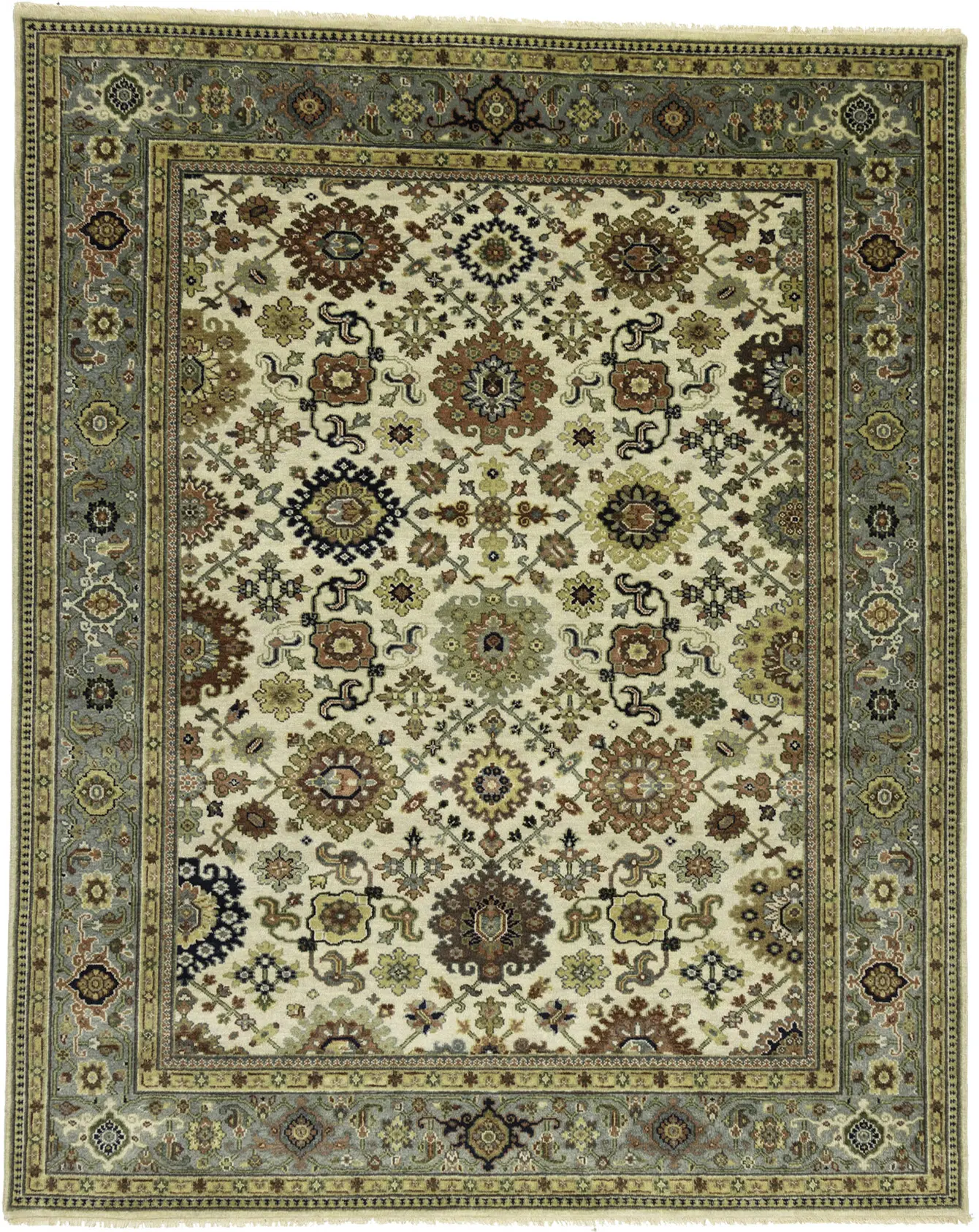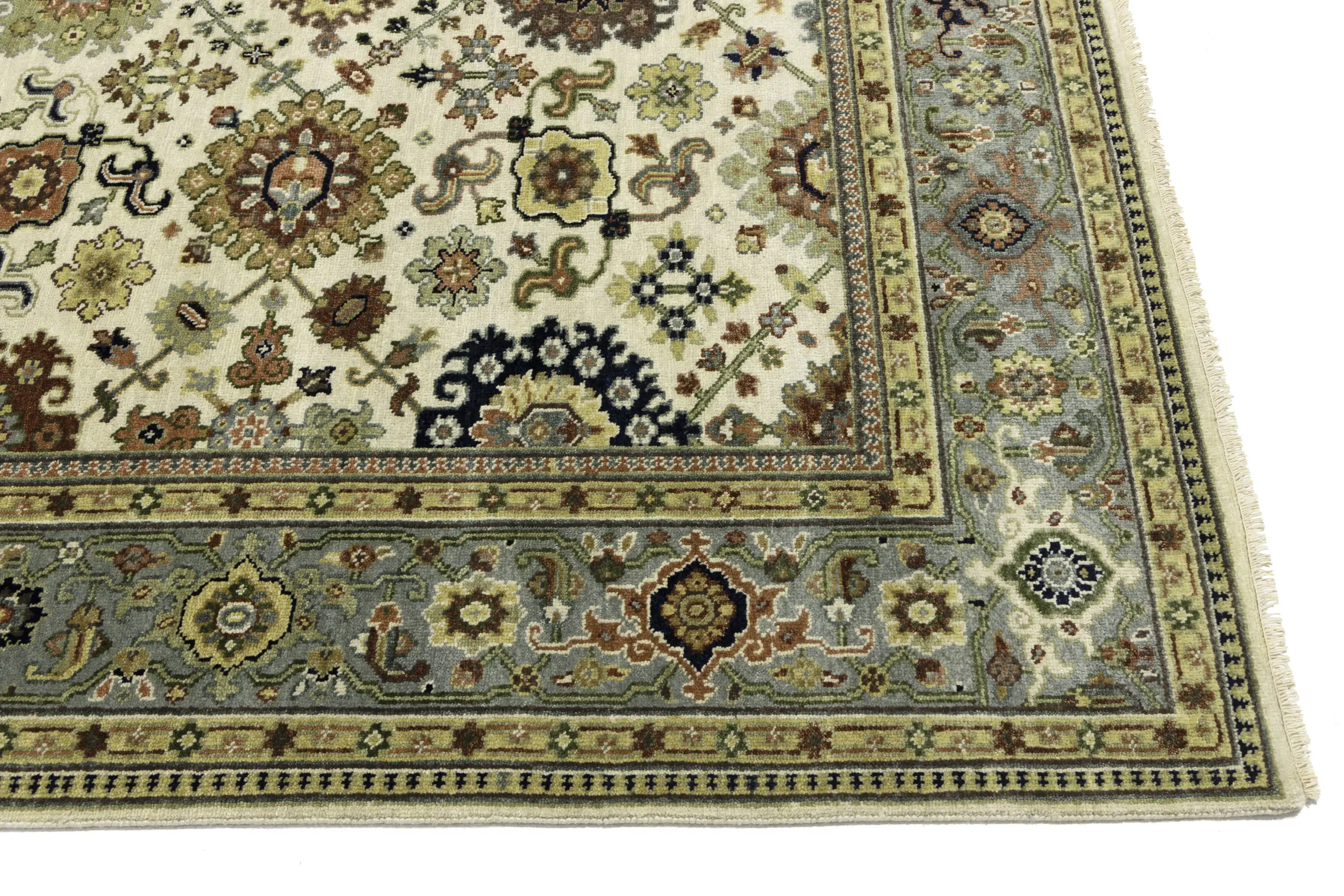 This genuine 8X10 cream new Oriental rug was made by the hands of gifted weavers inspired by a variety of spectacular artistic designs, to recreate the aged look of the original piece with a richness of color and ornately patterned background field. What set this vintage style Oriental area rug from the others are the material and dye used (wool pile and cotton foundation), knot count, ancient designs, fantastic grades, and its regional historical connection: it has deep roots, from the story of the people who produced it to the meaning of the symbols and colors displayed across its canvas that have been praised for centuries. This Indian home décor carpet will be completely cozy and inviting that never will go out of style! Also, this Oriental rug would be among your most valuable treasures, it is a great investment that accrues value over time, and it will last for generations because was woven with high-quality, all-natural wool. Environmentally friendly, opulent yet affordable; this rug will give you a thorough amount of character to help define your living space with elegance and warmth that will capture the eyes and attention of your audience (homeowners, designers, decorators, family and friends).