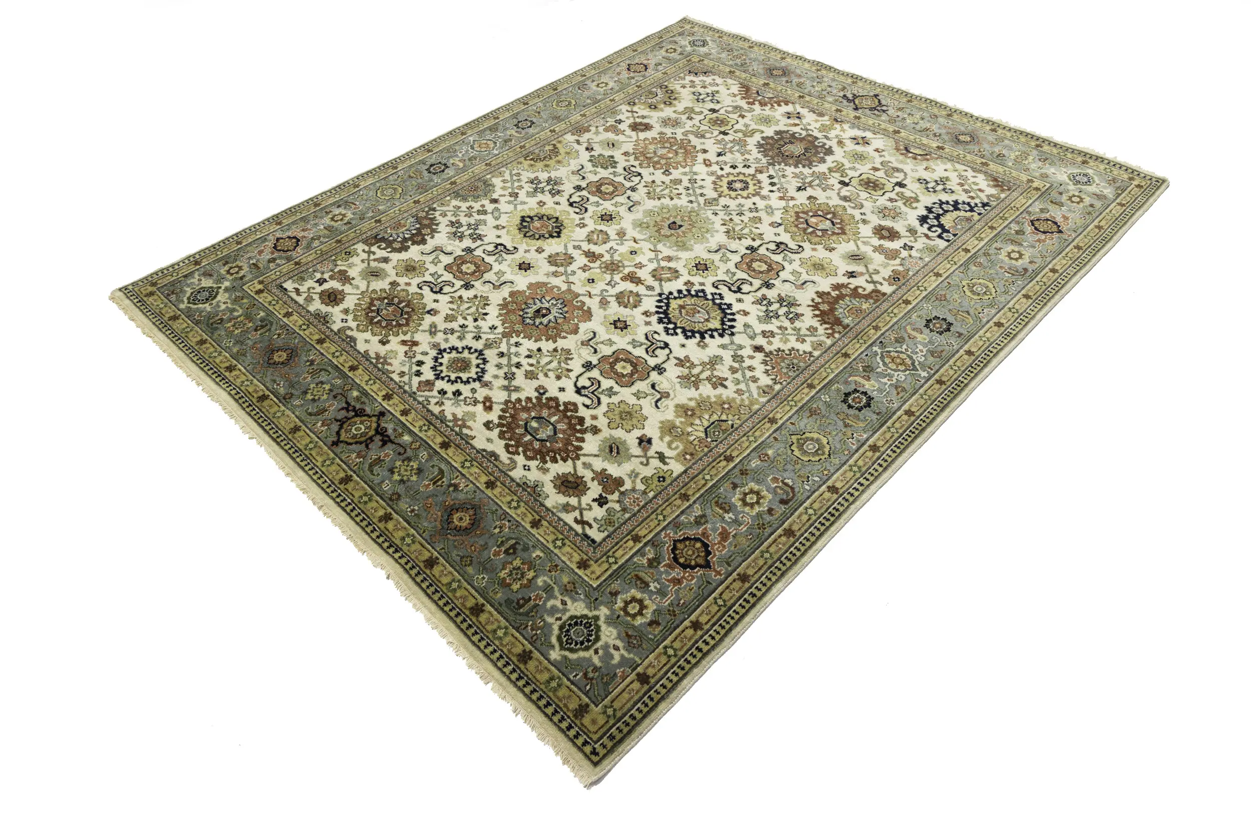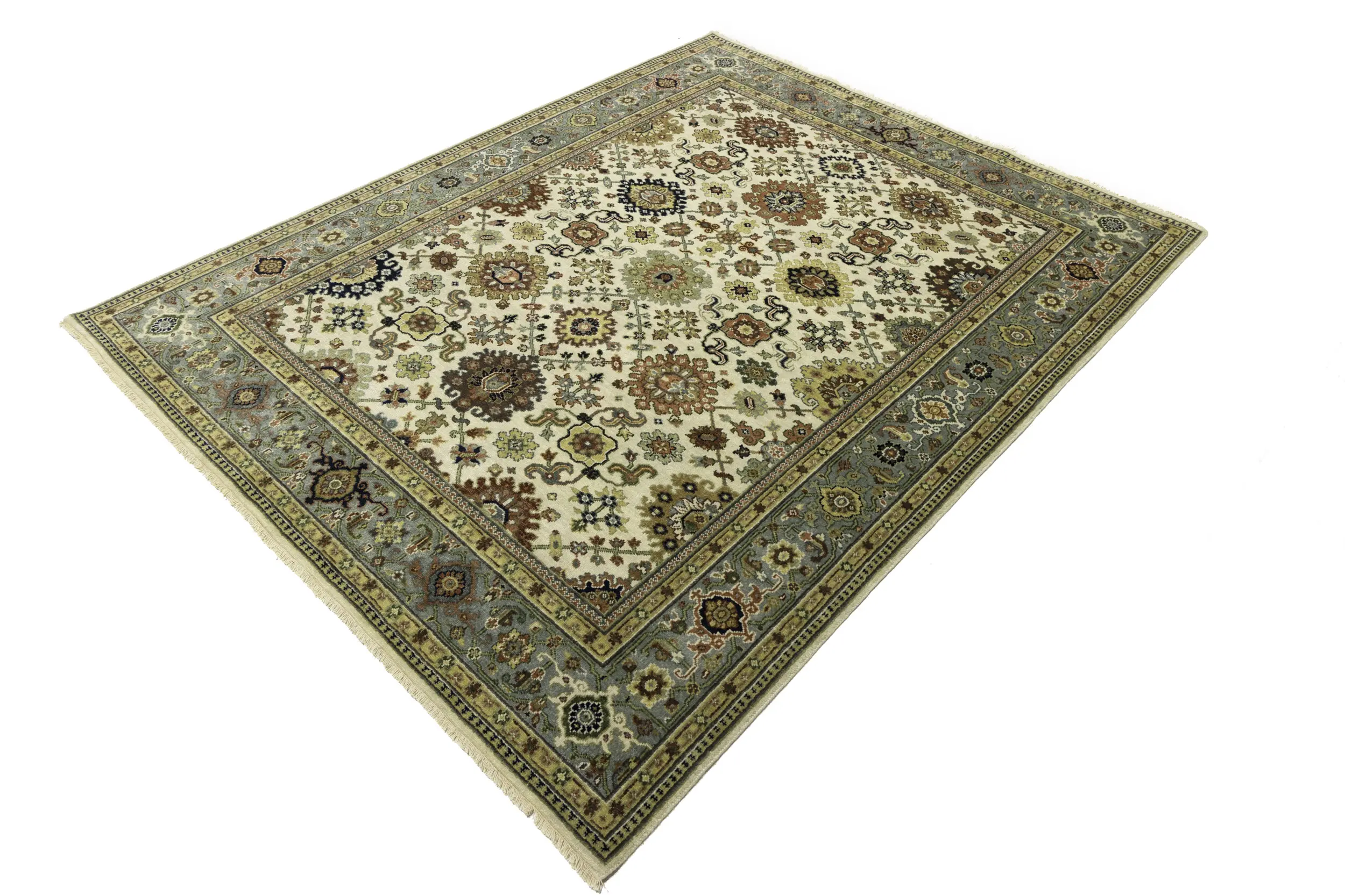 Handmade 8X10 cream oriental rug made with vegetable dyes (fine wool pile and cotton foundation), superior knot count, and appealing ancient designs. This Oriental rug never will go out of style and would be among your most valuable treasures.