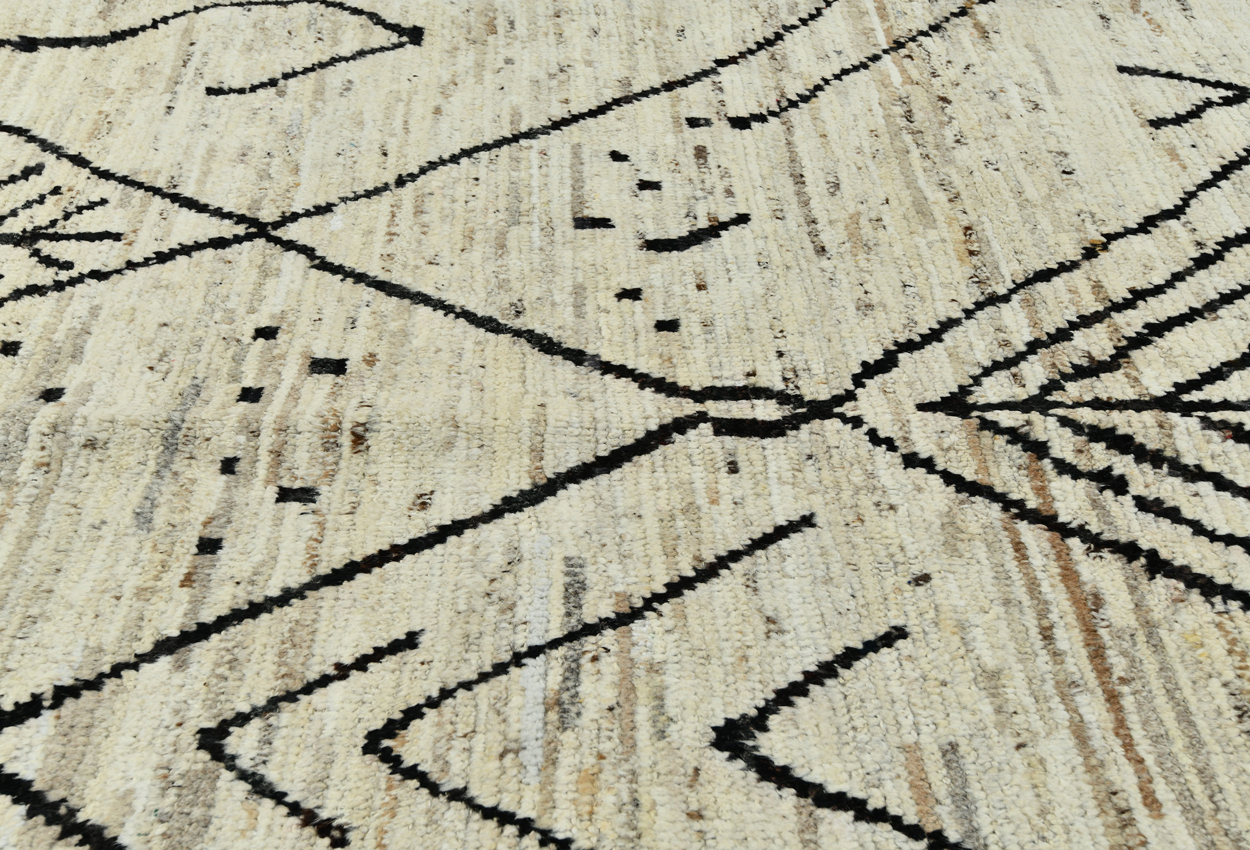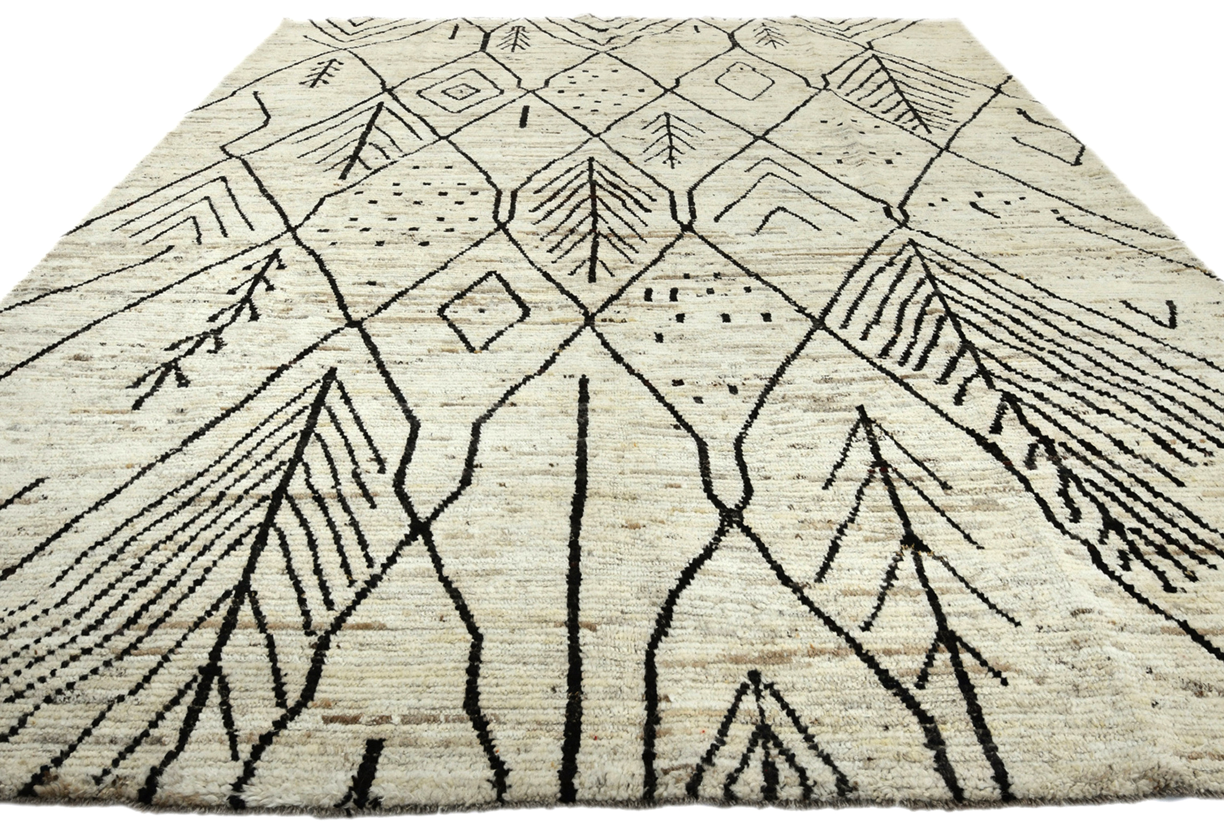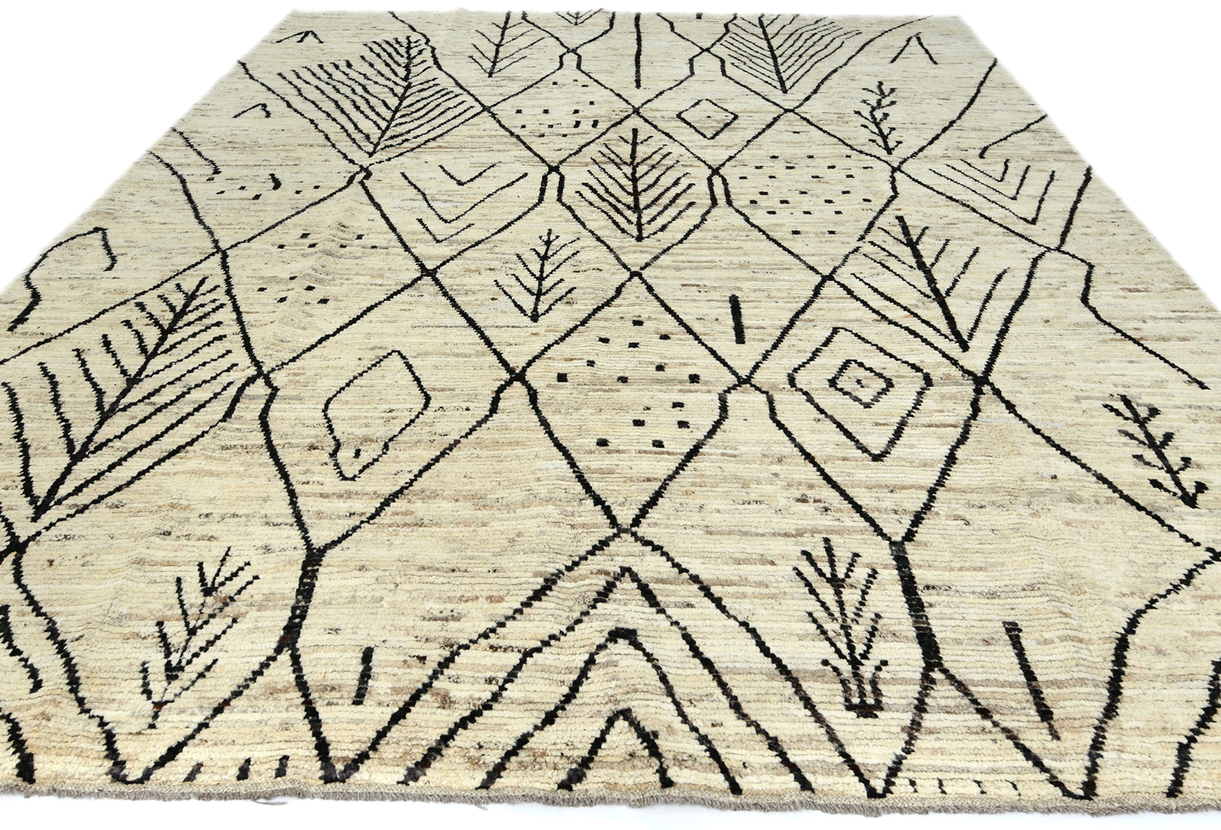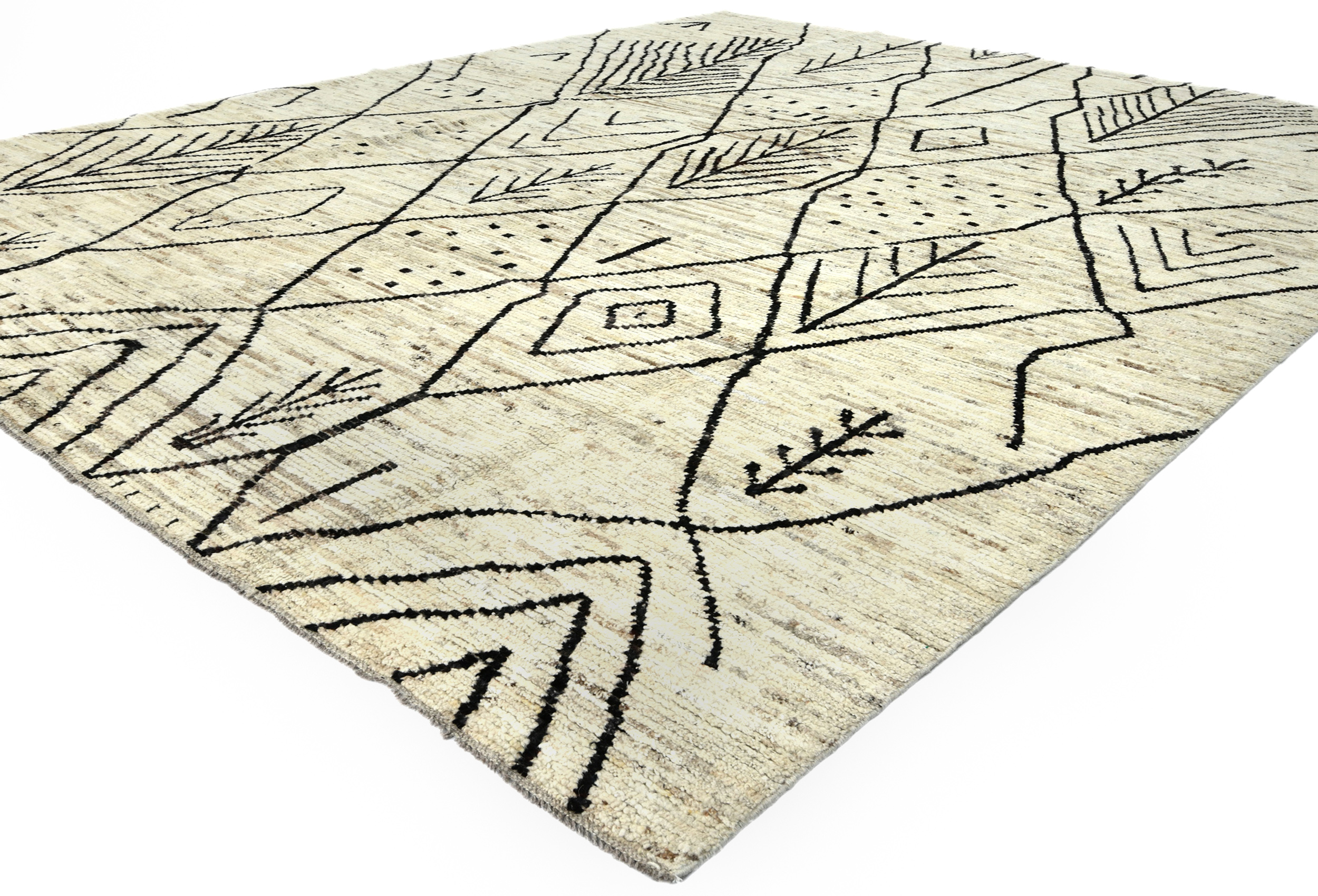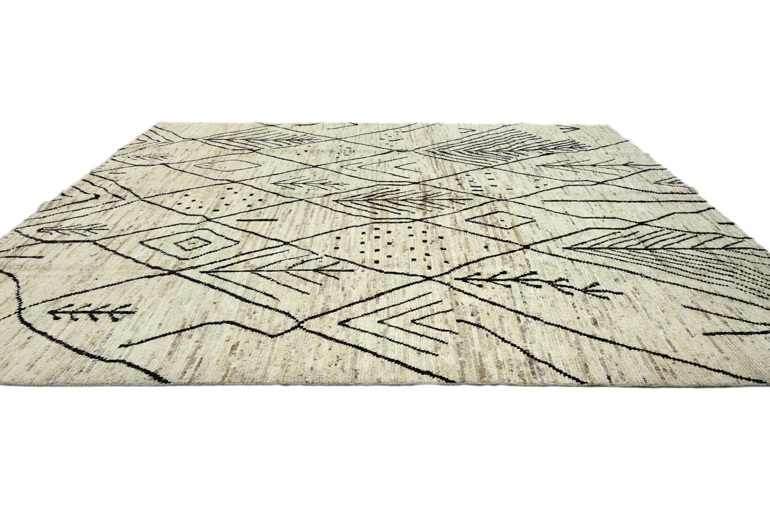 Cream Tribal Modern 9'5X12'0 Moroccan Style Oriental Rug