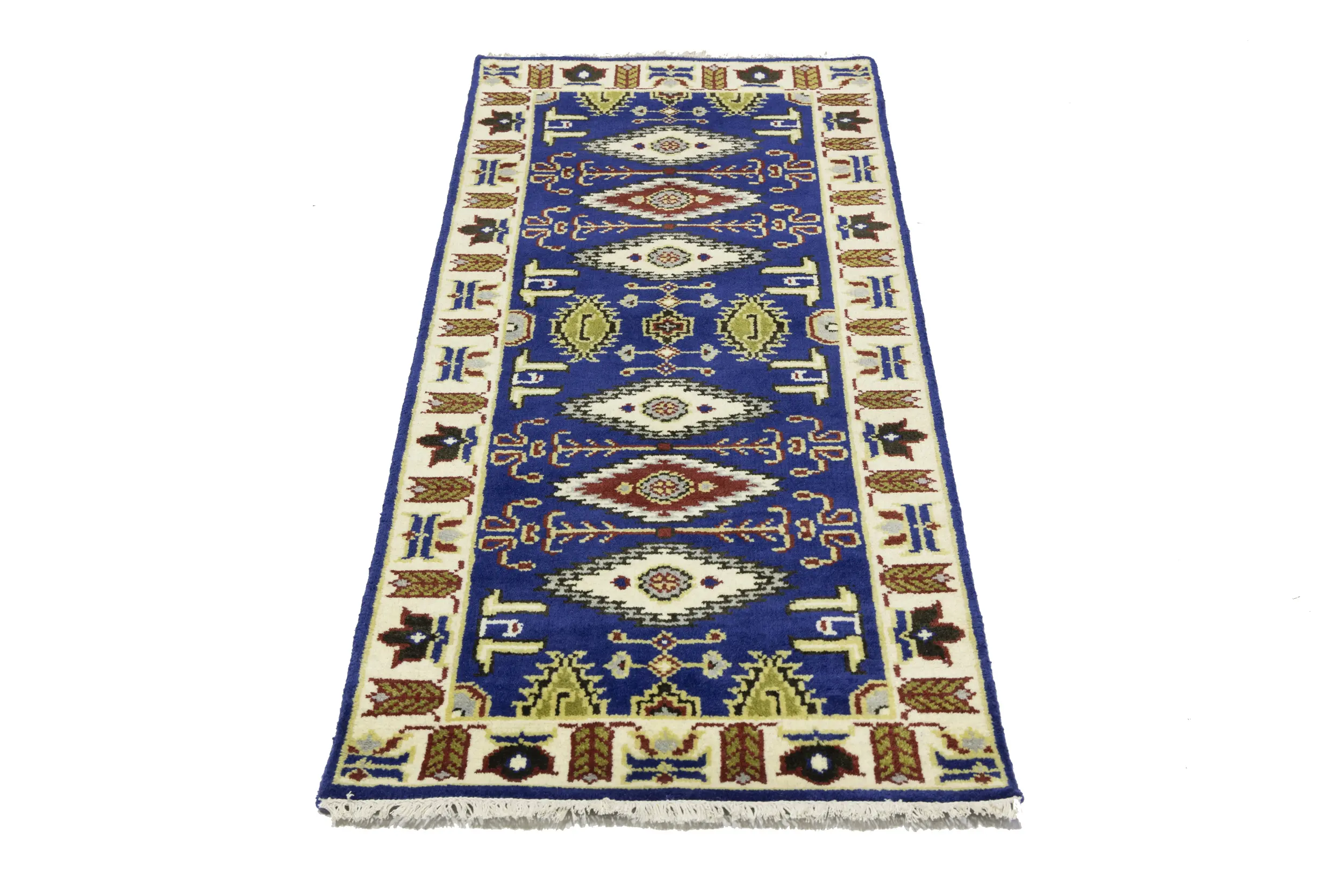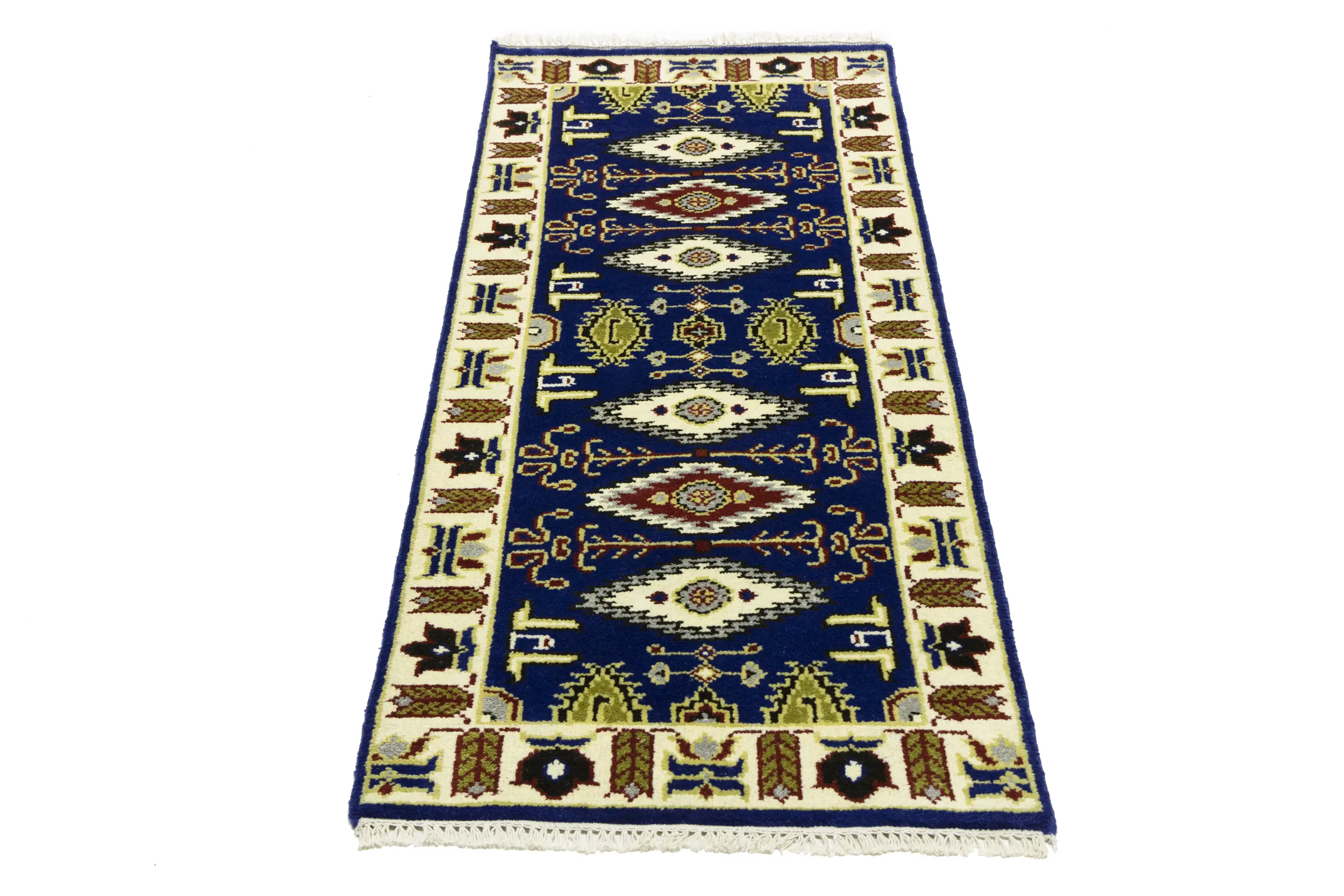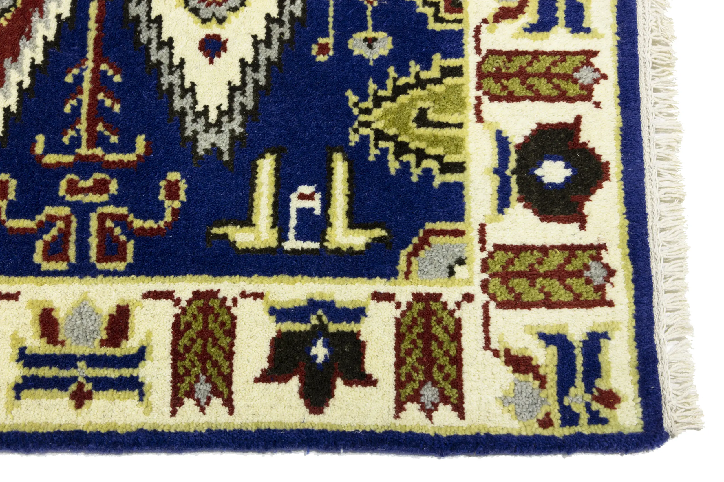 This genuine 3X6 blue new Oriental rug was made by the hands of gifted weavers inspired by a variety of spectacular artistic designs, to recreate the aged look of the original piece with a richness of color and ornately patterned background field. What set this vintage style Oriental area rug from the others are the material and dye used (wool pile and cotton foundation), knot count, ancient designs, fantastic grades, and its regional historical connection: it has deep roots, from the story of the people who produced it to the meaning of the symbols and colors displayed across its canvas that have been praised for centuries. This Indian home décor carpet will be completely cozy and inviting that never will go out of style! Also, this Oriental rug would be among your most valuable treasures, it is a great investment that accrues value over time, and it will last for generations because was woven with high-quality, all-natural wool. Environmentally friendly, opulent yet affordable; this rug will give you a thorough amount of character to help define your living space with elegance and warmth that will capture the eyes and attention of your audience (homeowners, designers, decorators, family and friends).