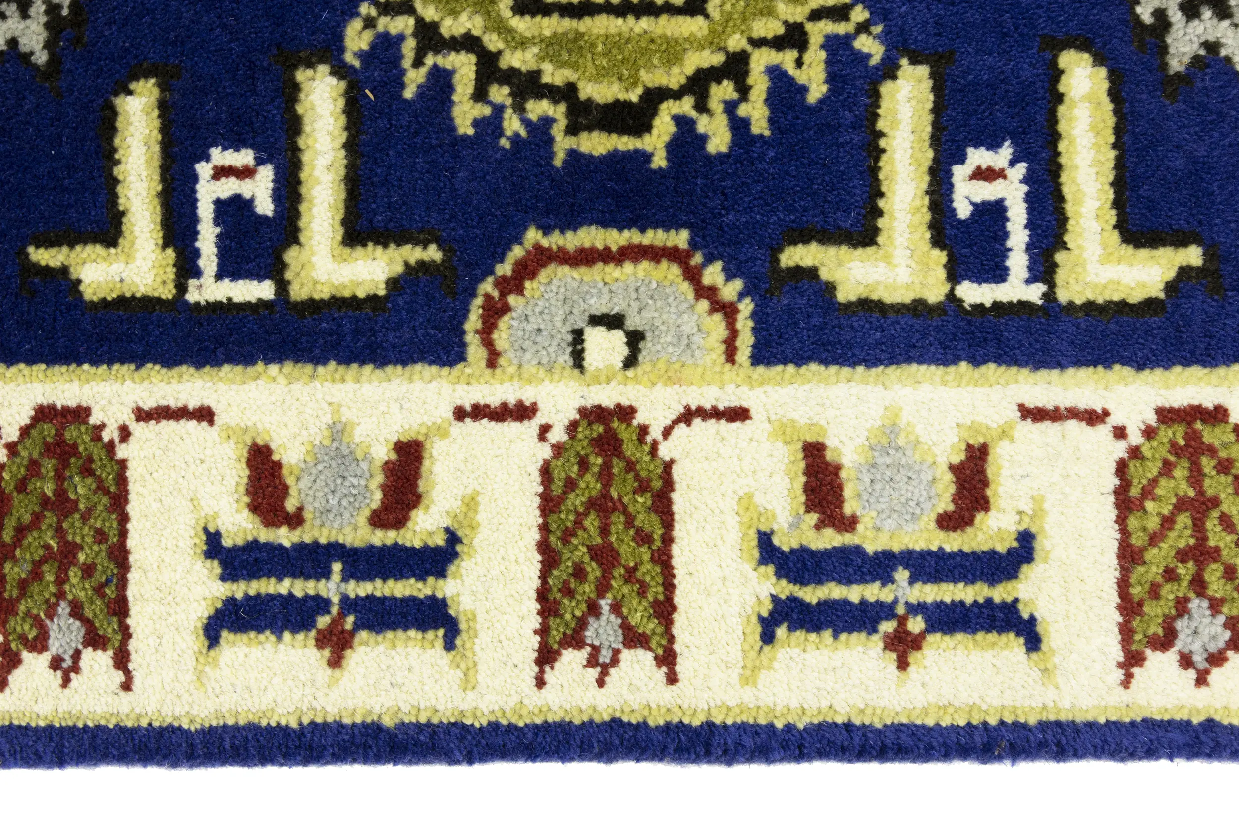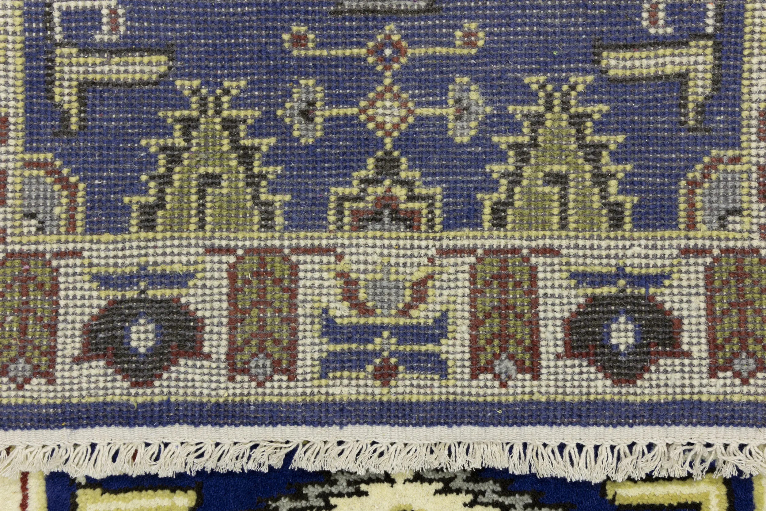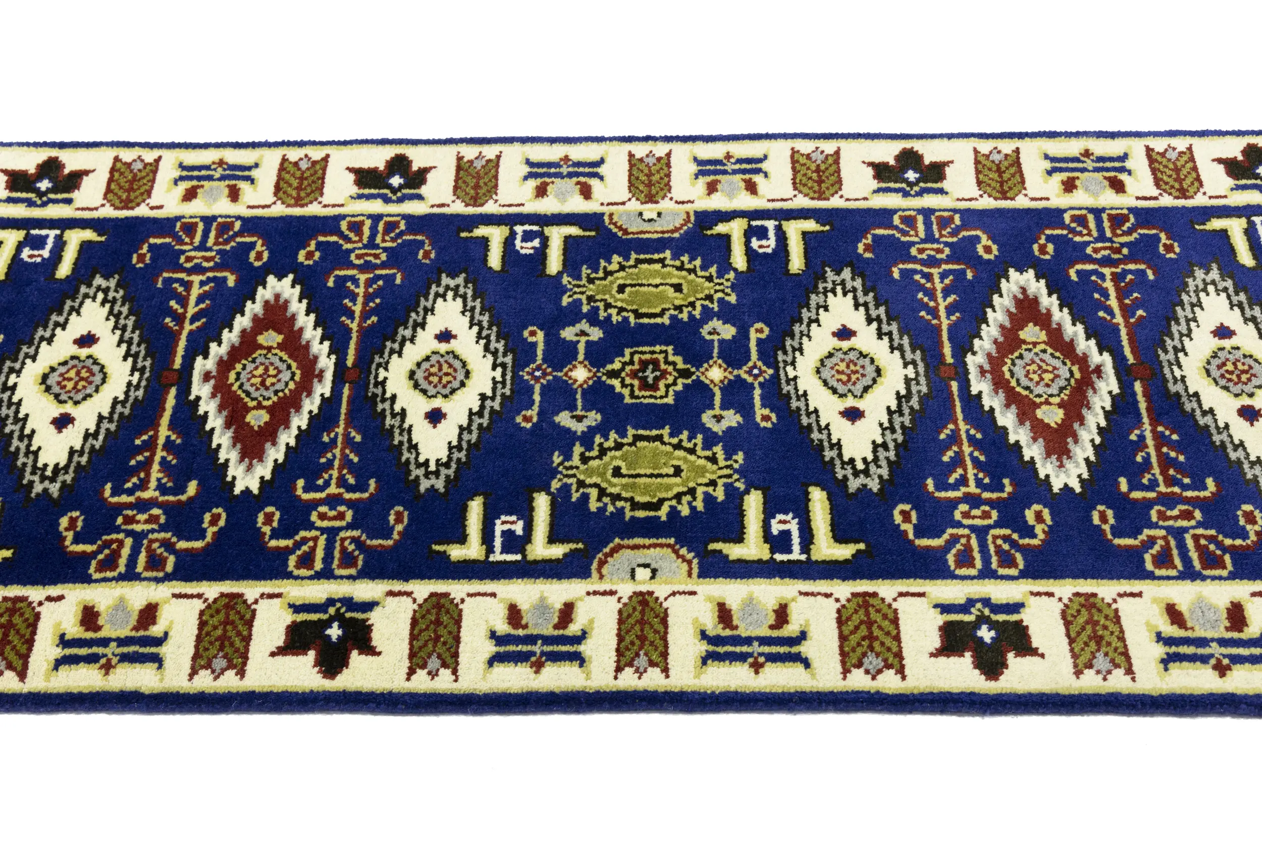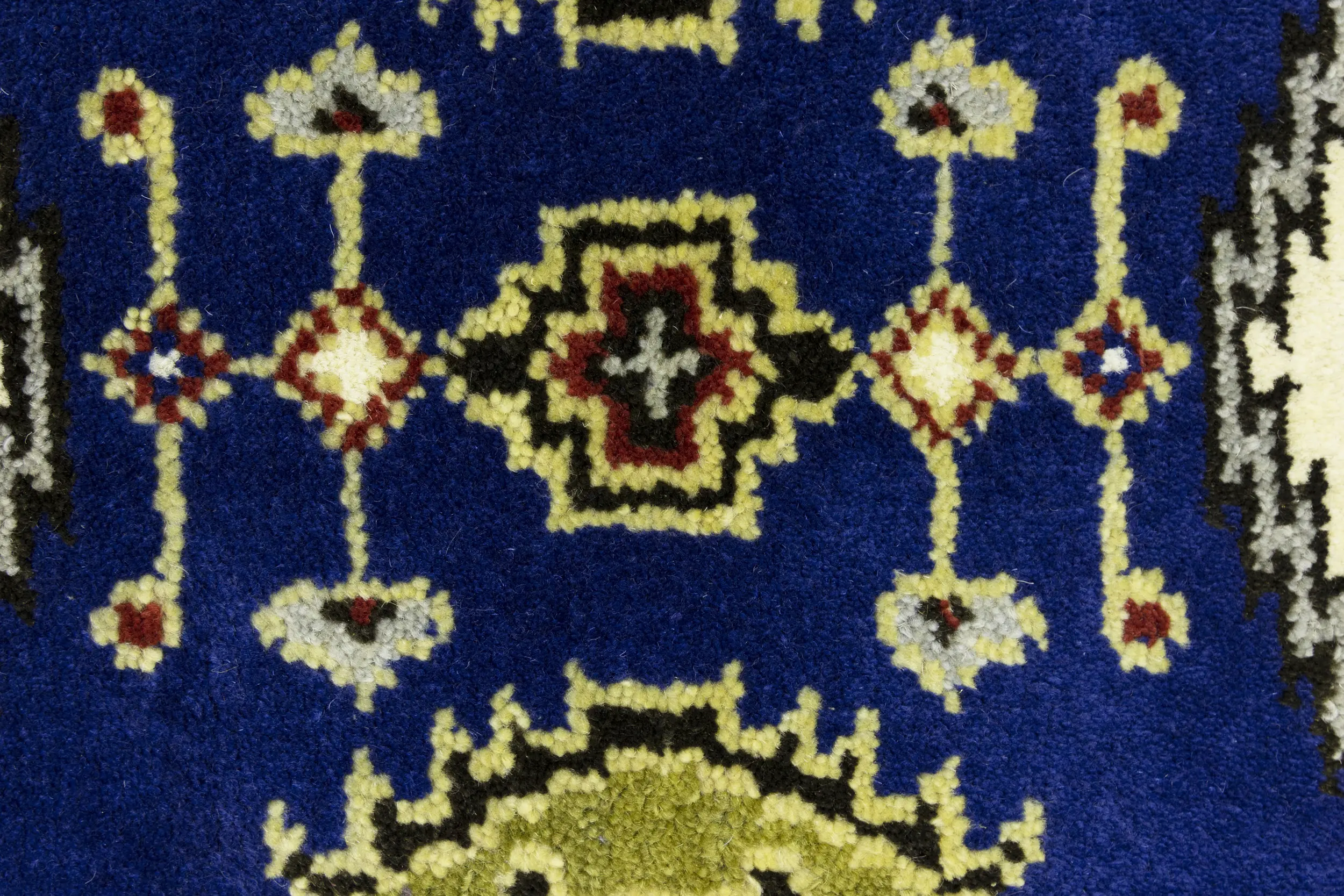 This genuine 3X6 blue new Oriental rug was made by the hands of gifted weavers inspired by a variety of spectacular artistic designs, to recreate the aged look of the original piece with a richness of color and ornately patterned background field. What set this vintage style Oriental area rug from the others are the material and dye used (wool pile and cotton foundation), knot count, ancient designs, fantastic grades, and its regional historical connection: it has deep roots, from the story of the people who produced it to the meaning of the symbols and colors displayed across its canvas that have been praised for centuries. This Indian home décor carpet will be completely cozy and inviting that never will go out of style! Also, this Oriental rug would be among your most valuable treasures, it is a great investment that accrues value over time, and it will last for generations because was woven with high-quality, all-natural wool. Environmentally friendly, opulent yet affordable; this rug will give you a thorough amount of character to help define your living space with elegance and warmth that will capture the eyes and attention of your audience (homeowners, designers, decorators, family and friends).