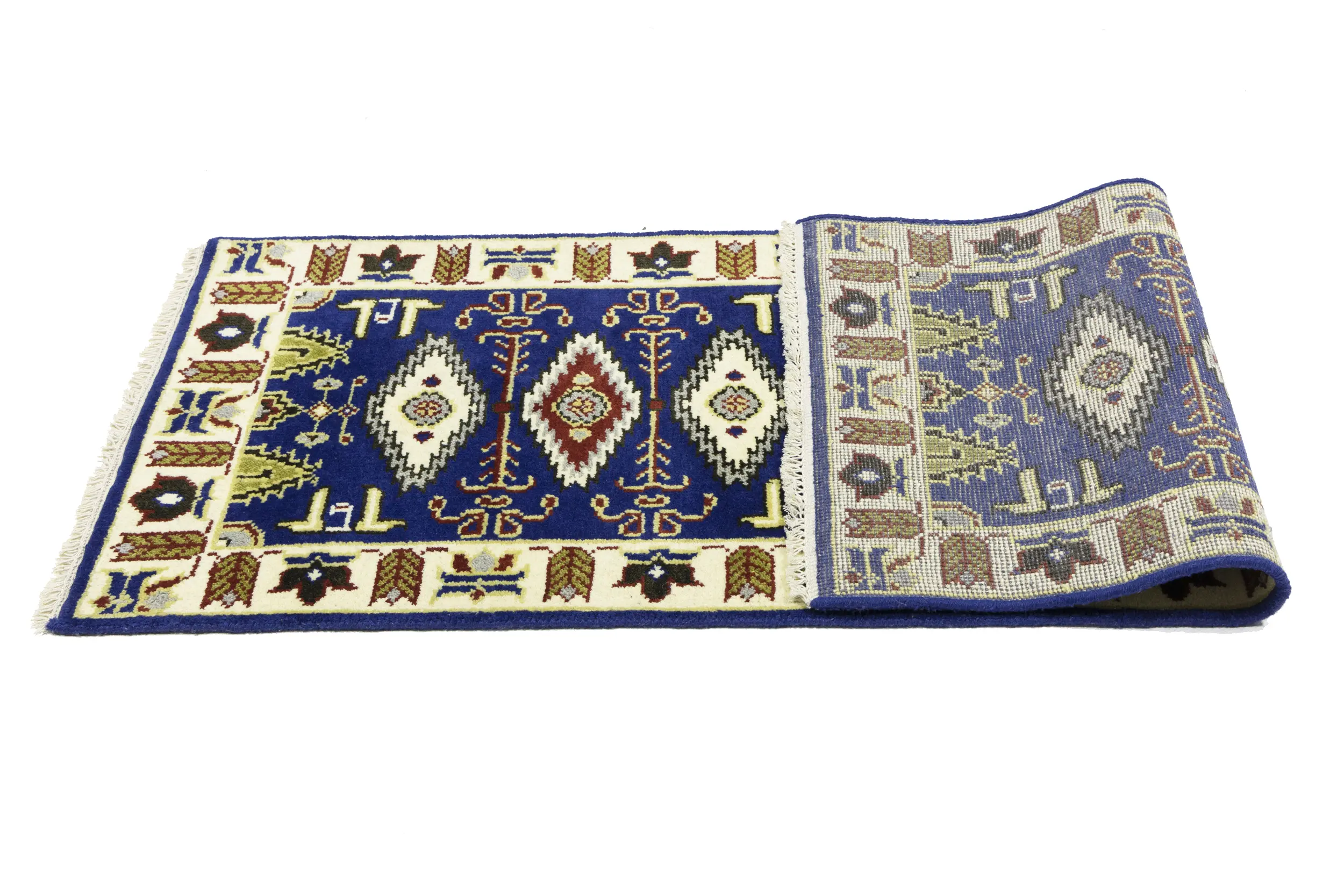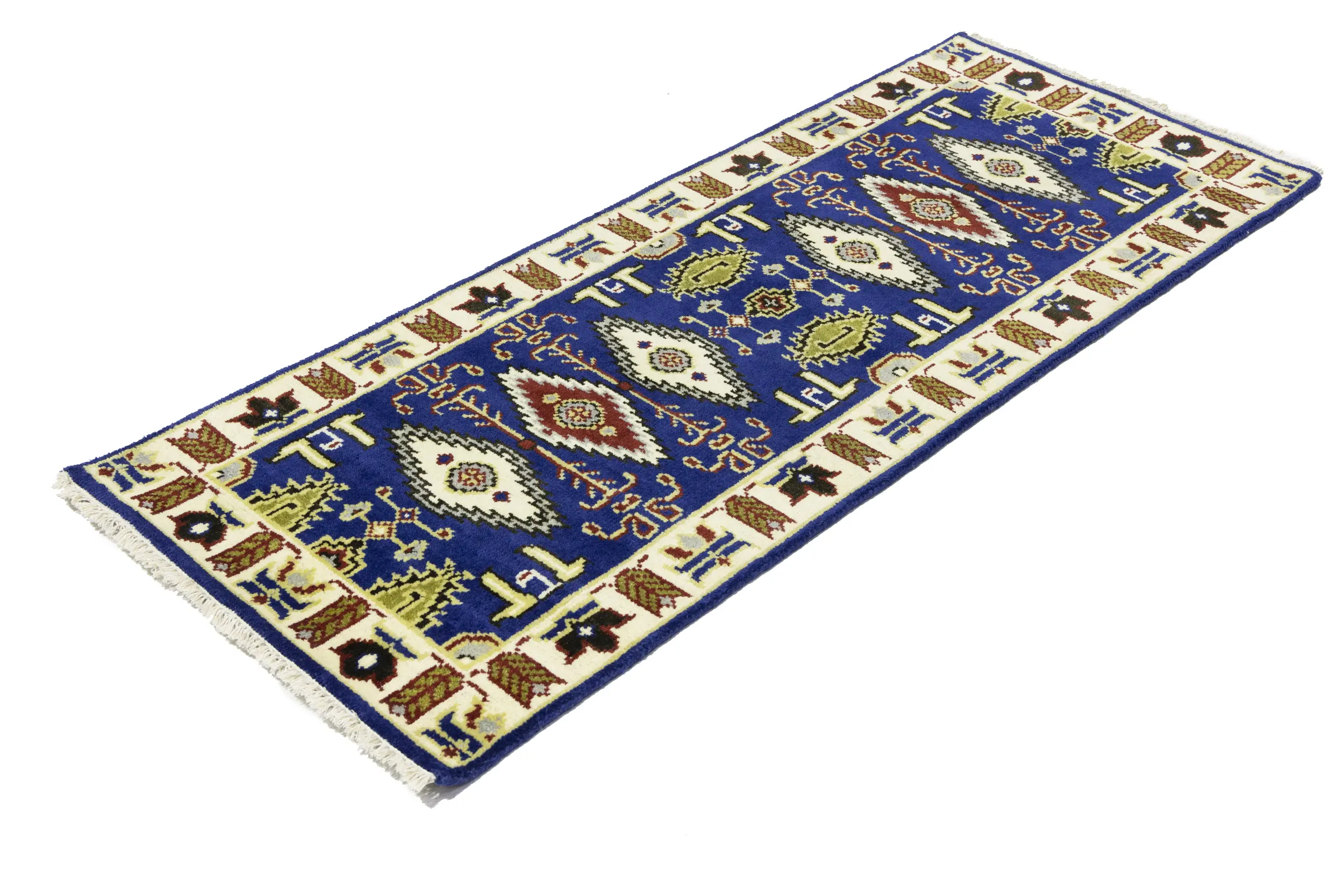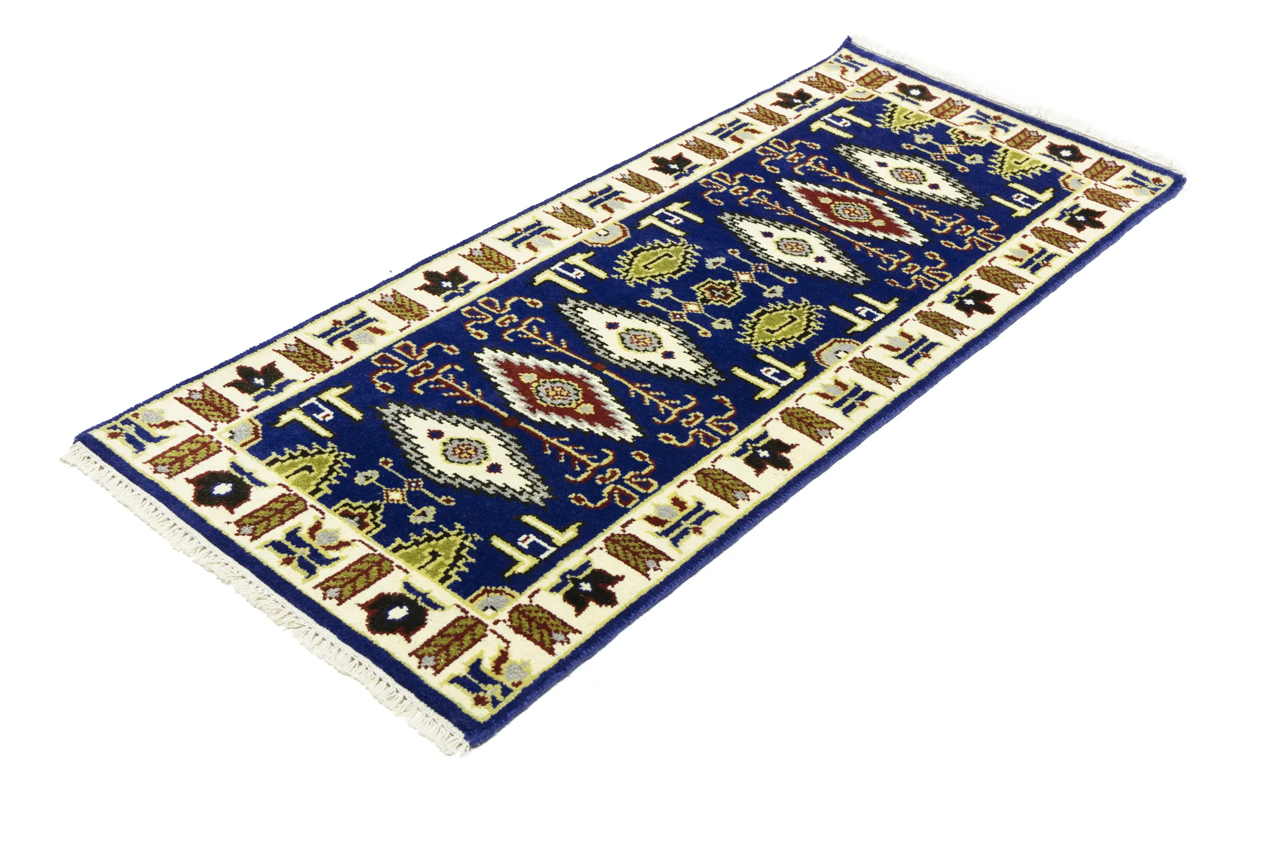 Dark Blue Geometric 3X6 Kazak Oriental Rug