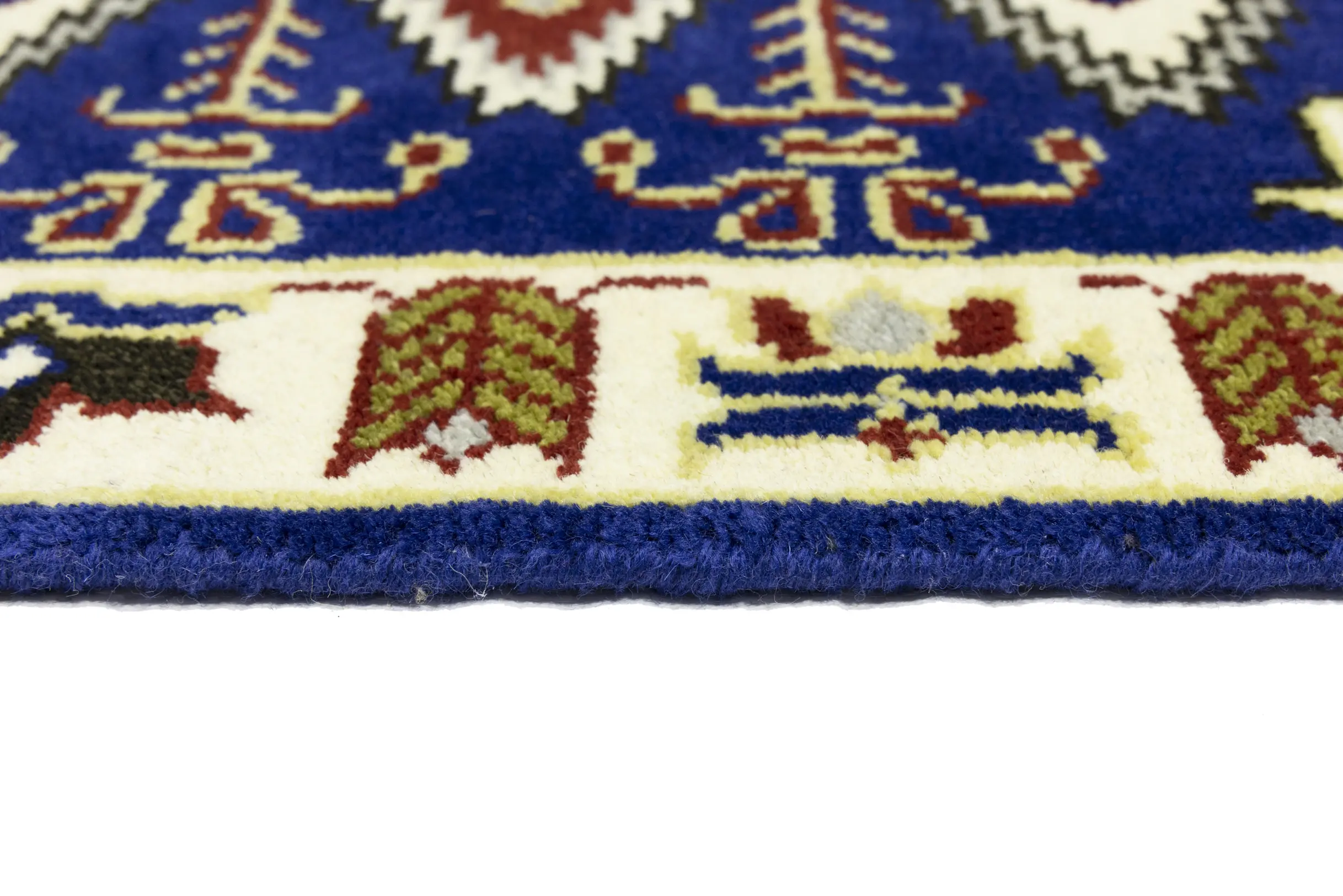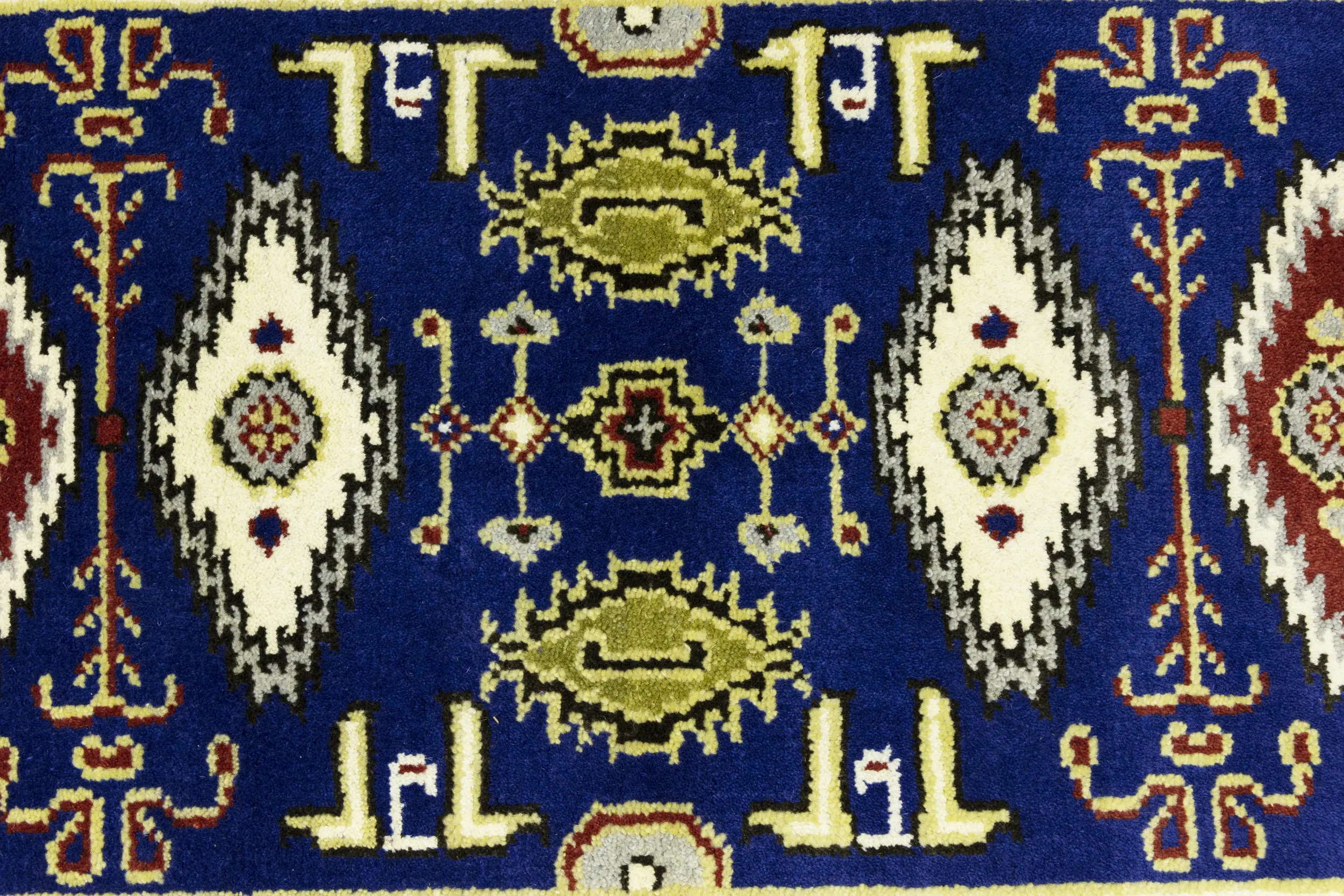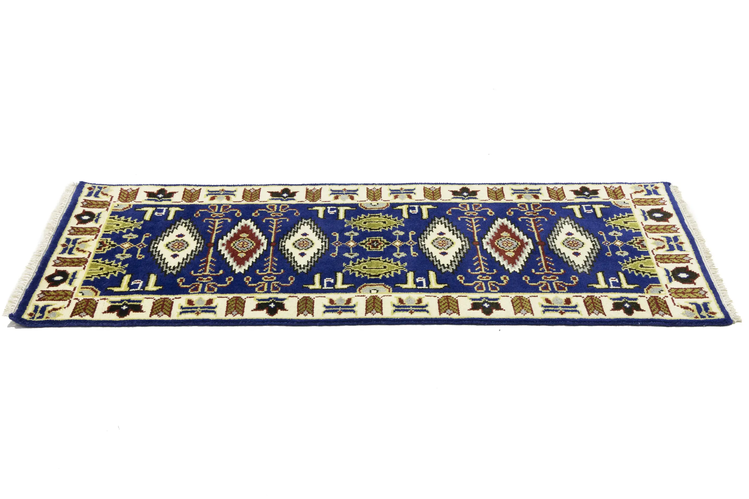 Dark Blue Geometric 3X6 Kazak Oriental Rug