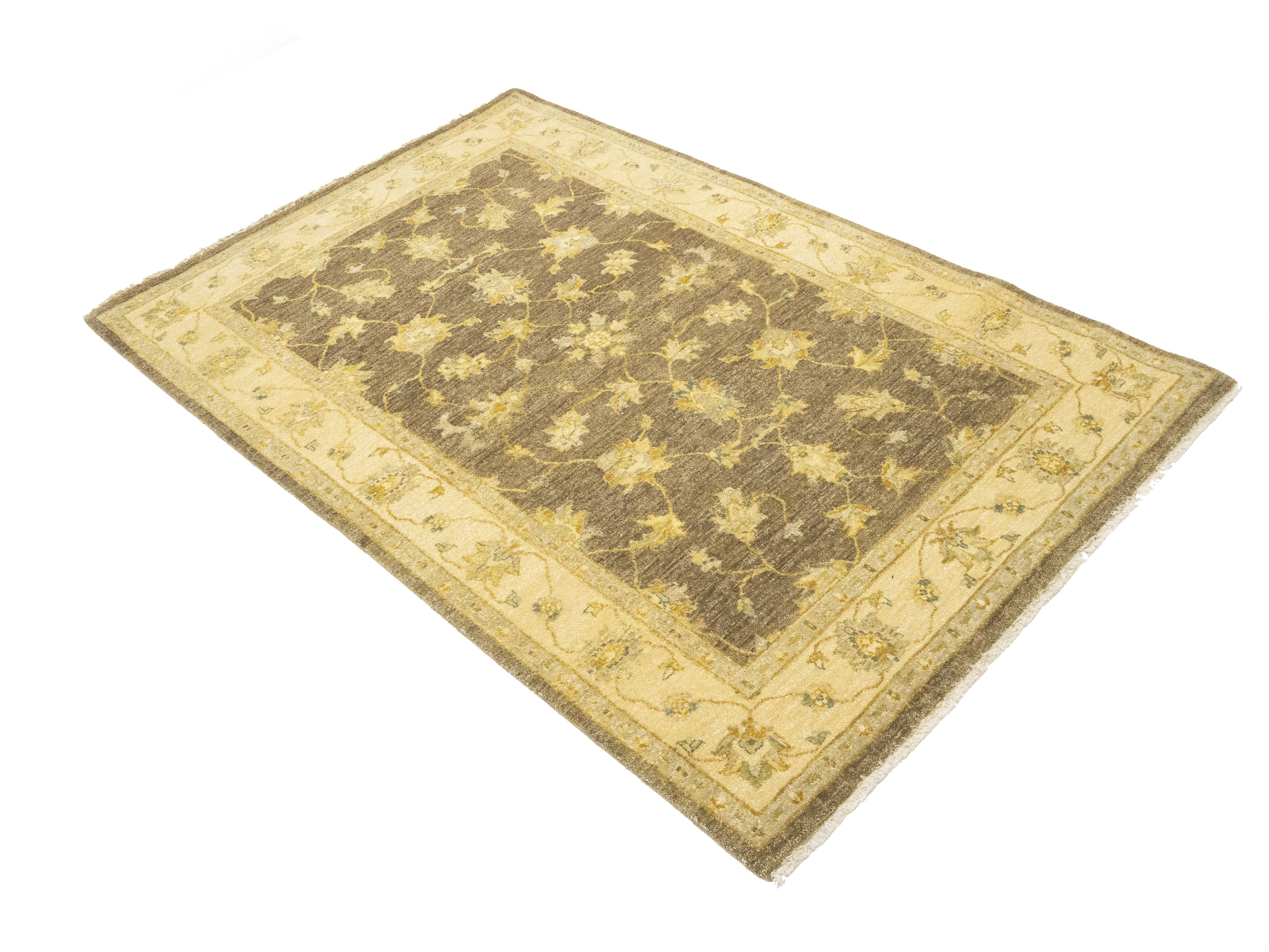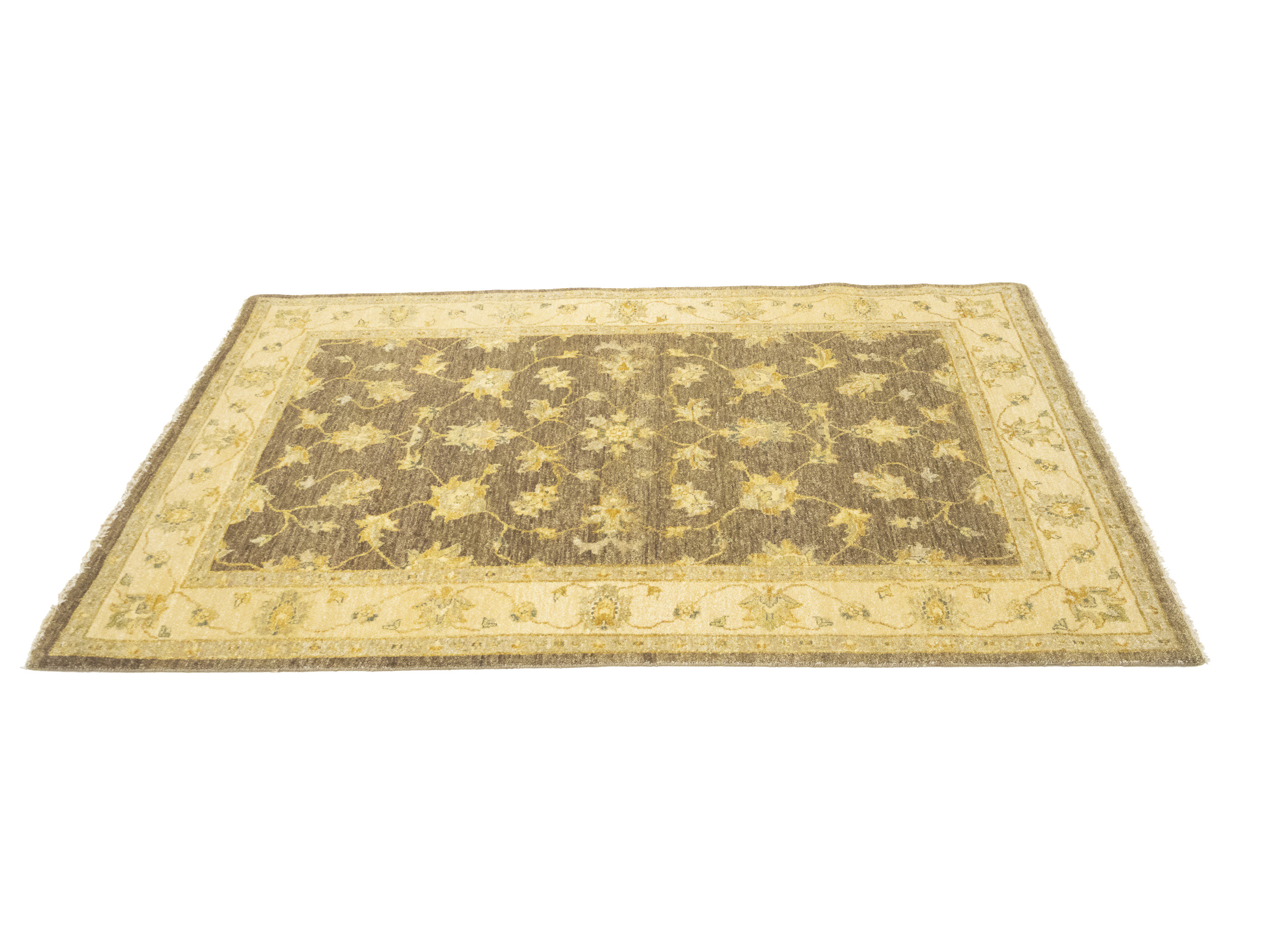 Dark Brown Floral 4X6 Peshawar Pakistan Oriental Rug