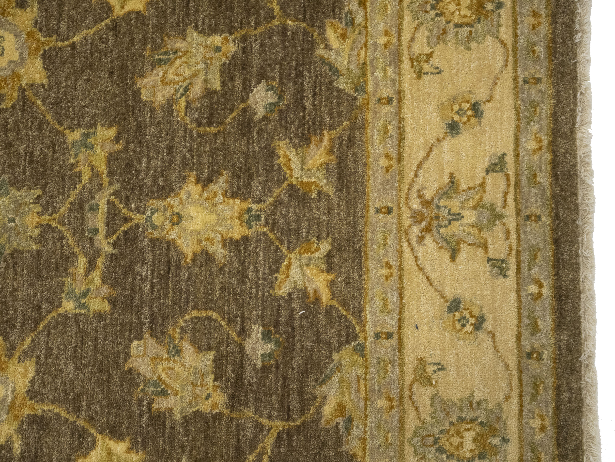 Handmade 4X6 dark brown oriental rug made with vegetable dyes (fine wool pile and cotton foundation), exceptional knot count, and appealing ancient designs. This Oriental rug never will go out of style and would be among your most valuable treasures.