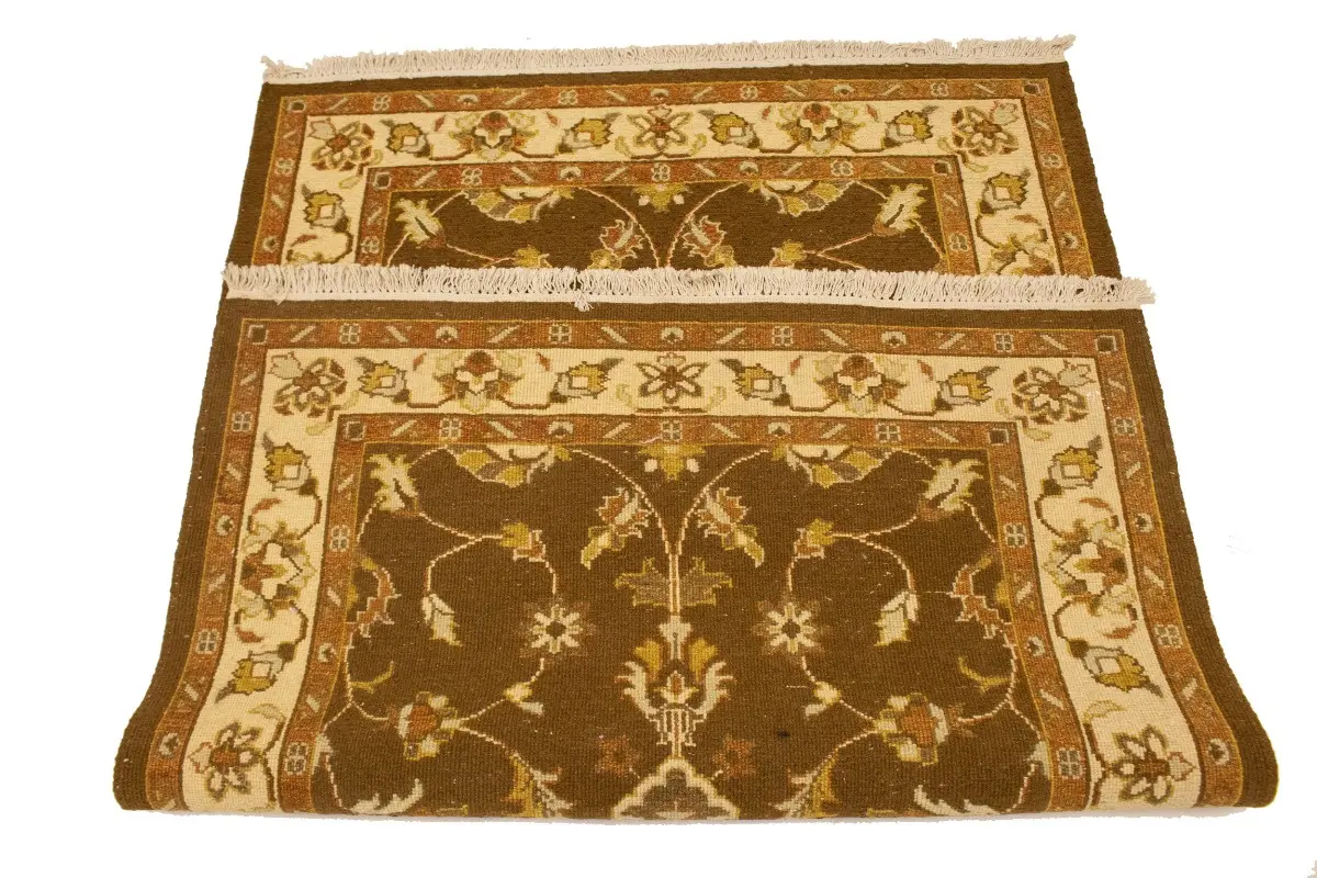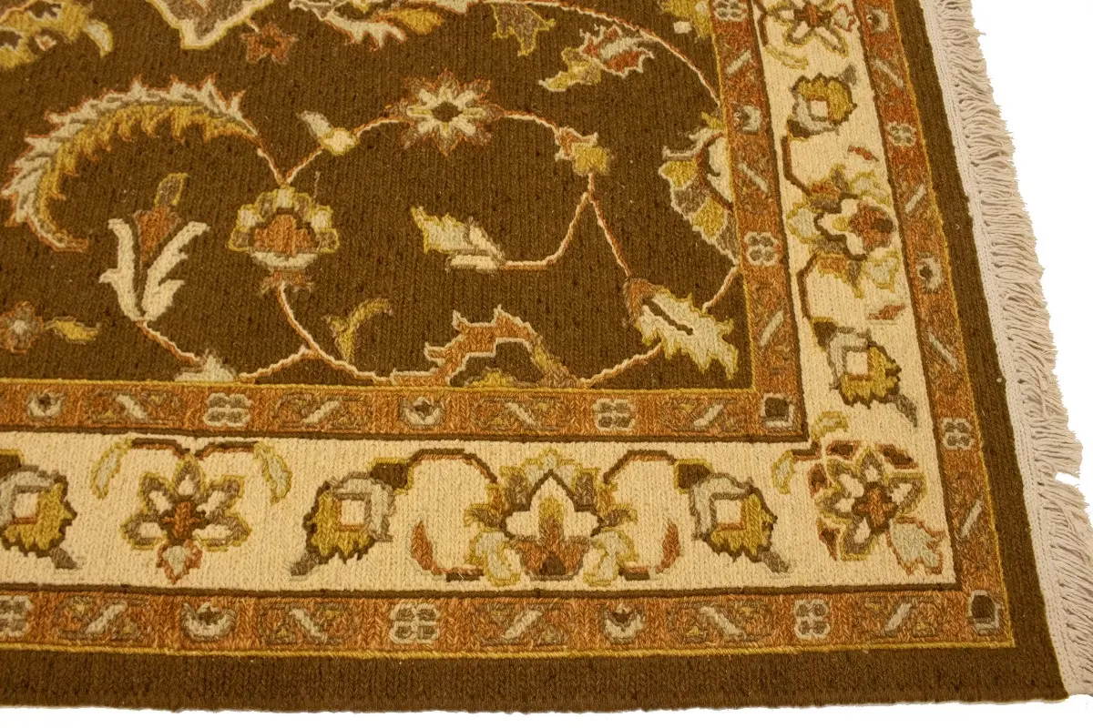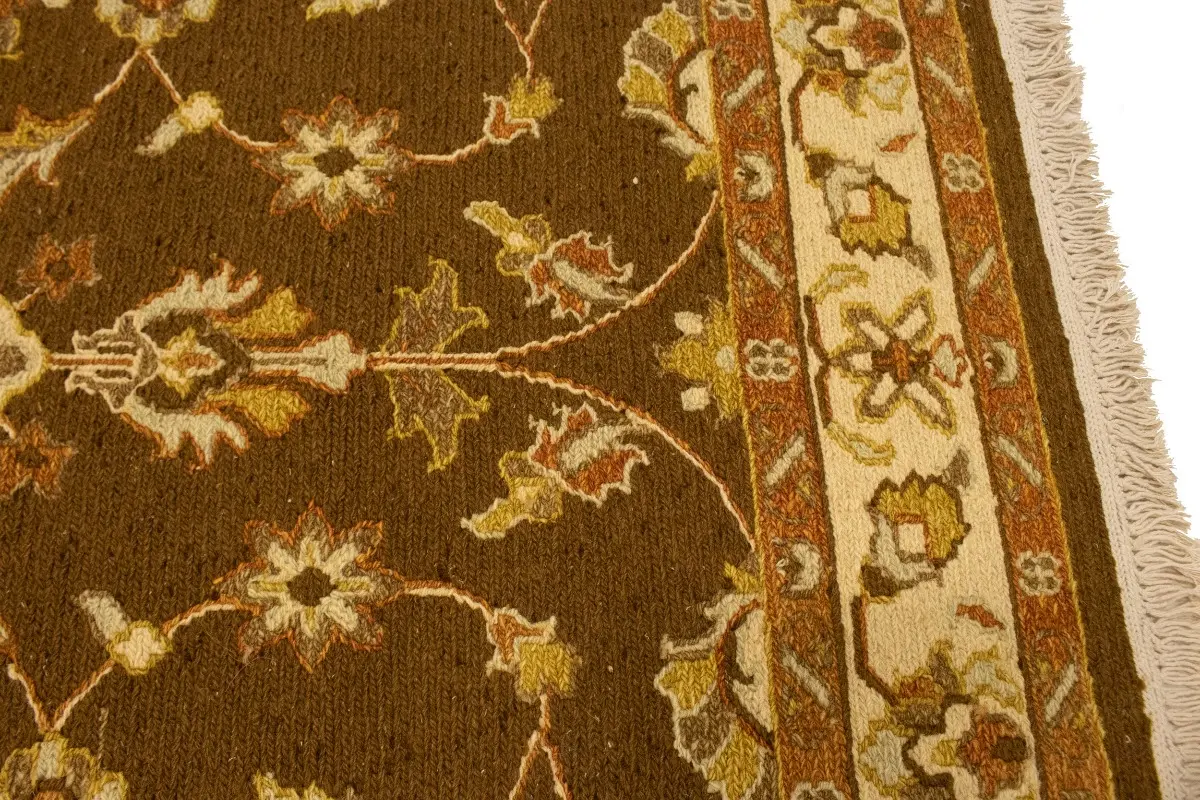 This genuine 4X6 brown new Oriental rug was made by the hands of gifted weavers inspired by a variety of spectacular artistic designs, to recreate the aged look of the original piece with a richness of color and ornately patterned background field. What set this vintage style Oriental area rug from the others are the material and dye used (wool pile and cotton foundation), knot count, ancient designs, fantastic grades, and its regional historical connection: it has deep roots, from the story of the people who produced it to the meaning of the symbols and colors displayed across its canvas that have been praised for centuries. This Indian home décor carpet will be completely cozy and inviting that never will go out of style! Also, this Oriental rug would be among your most valuable treasures, it is a great investment that accrues value over time, and it will last for generations because was woven with high-quality, all-natural wool. Environmentally friendly, opulent yet affordable; this rug will give you a thorough amount of character to help define your living space with elegance and warmth that will capture the eyes and attention of your audience (homeowners, designers, decorators, family and friends). OT-6547
