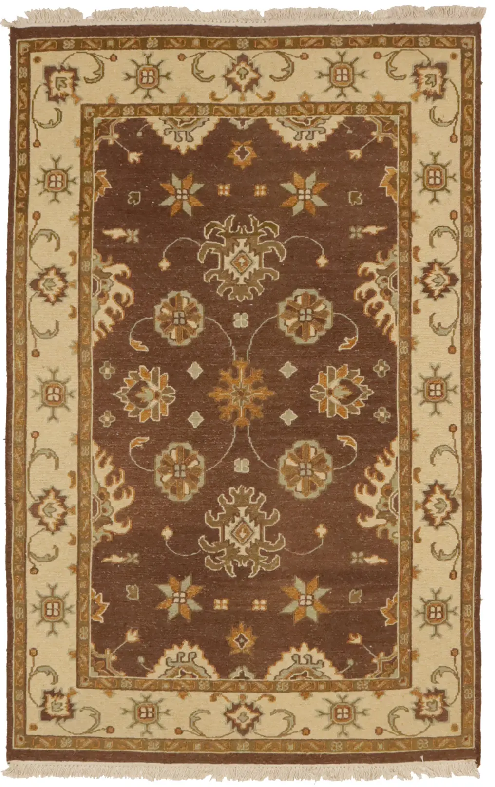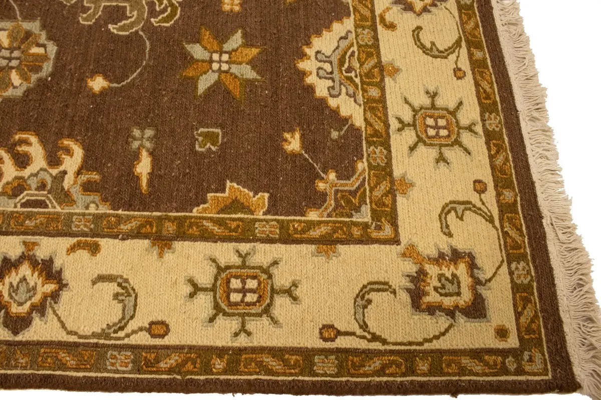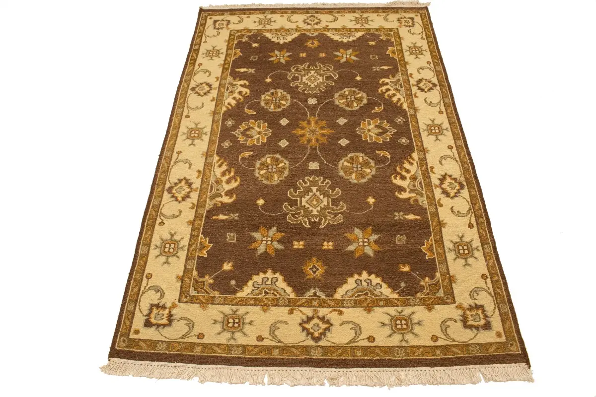This genuine 4X6 dark brown new Oriental rug was well-constructed by the hands of master weavers motivated by a variety of stunning artistic designs, to recreate the aged look of the exceptional piece with a richness of color and developed decorative background field. What set this vintage style Oriental area rug from the others are the material and dye used (wool pile and cotton foundation), knot count, ancient designs, fantastic grades, and its regional historical connection: it has deep roots, from the story of the people who produced it to the meaning of the symbols and colors displayed across its canvas that have been praised for centuries. This Indian home décor carpet will be completely cozy and inviting that never will go out of style! Also, this Oriental rug would be among your most valuable treasures, it is a great investment that increase in value over time, and it will last a lifetime because was woven with high-quality, all-natural wool. Eco-friendly, opulent yet affordable; this rug give you an extra pop of character to help define your home environment with elegance and warmth that will capture the eyes and attention of your audience (homeowners, designers, decorators, family and friends). OT-6548