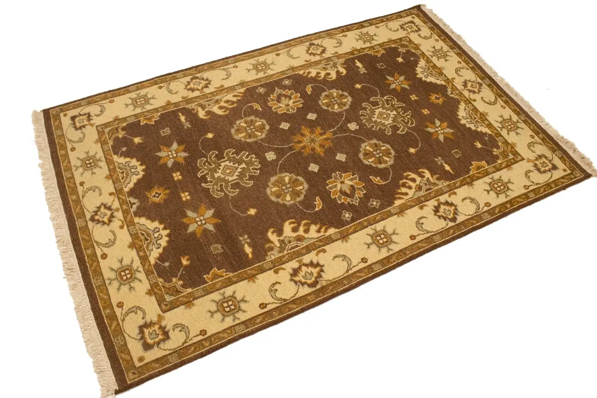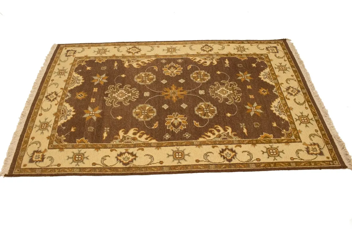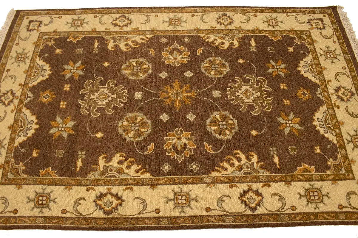 Handmade 4X6 dark brown Oriental rug made with vegetable dyes (fine wool pile and cotton foundation), superior knot count, and appealing ancient designs. This Oriental rug never will go out of style and would be among your most valuable treasures.