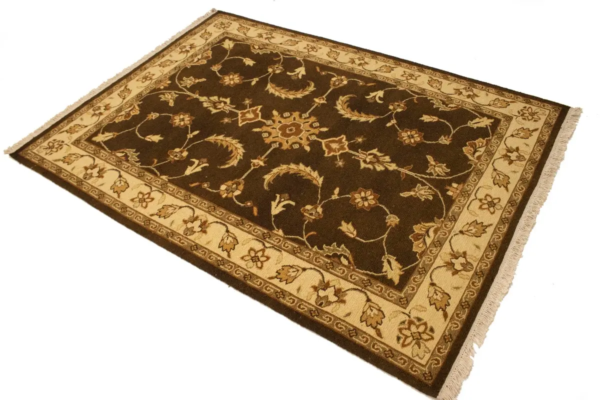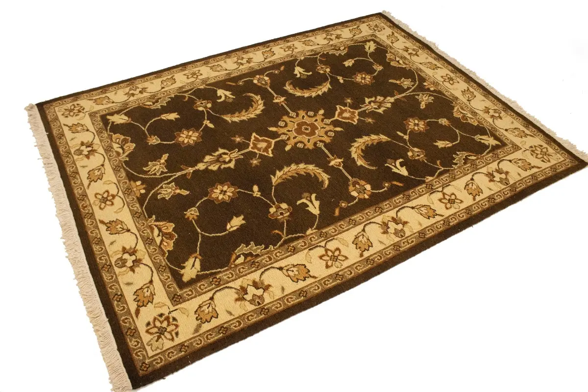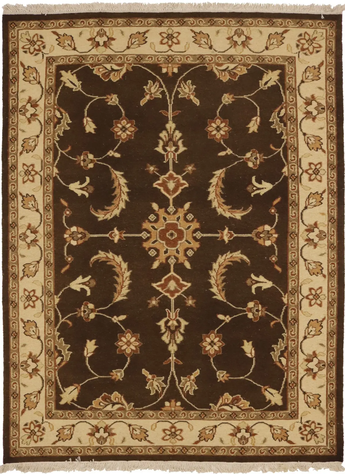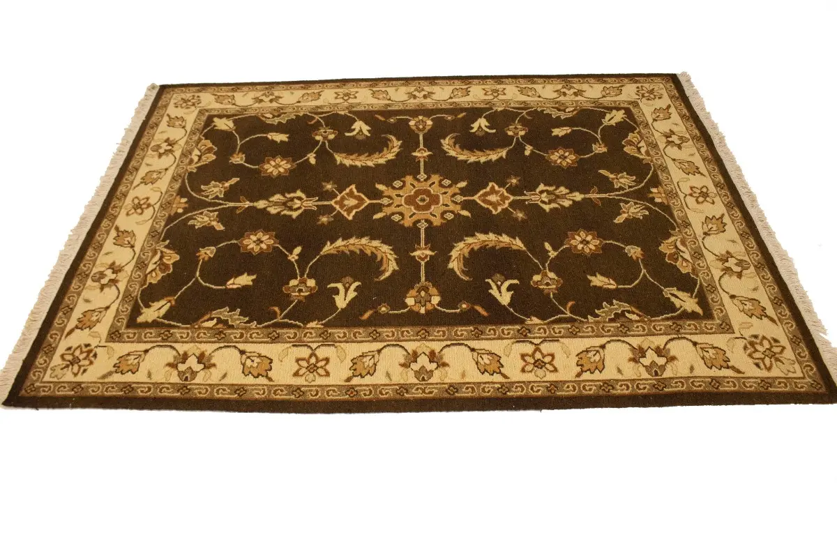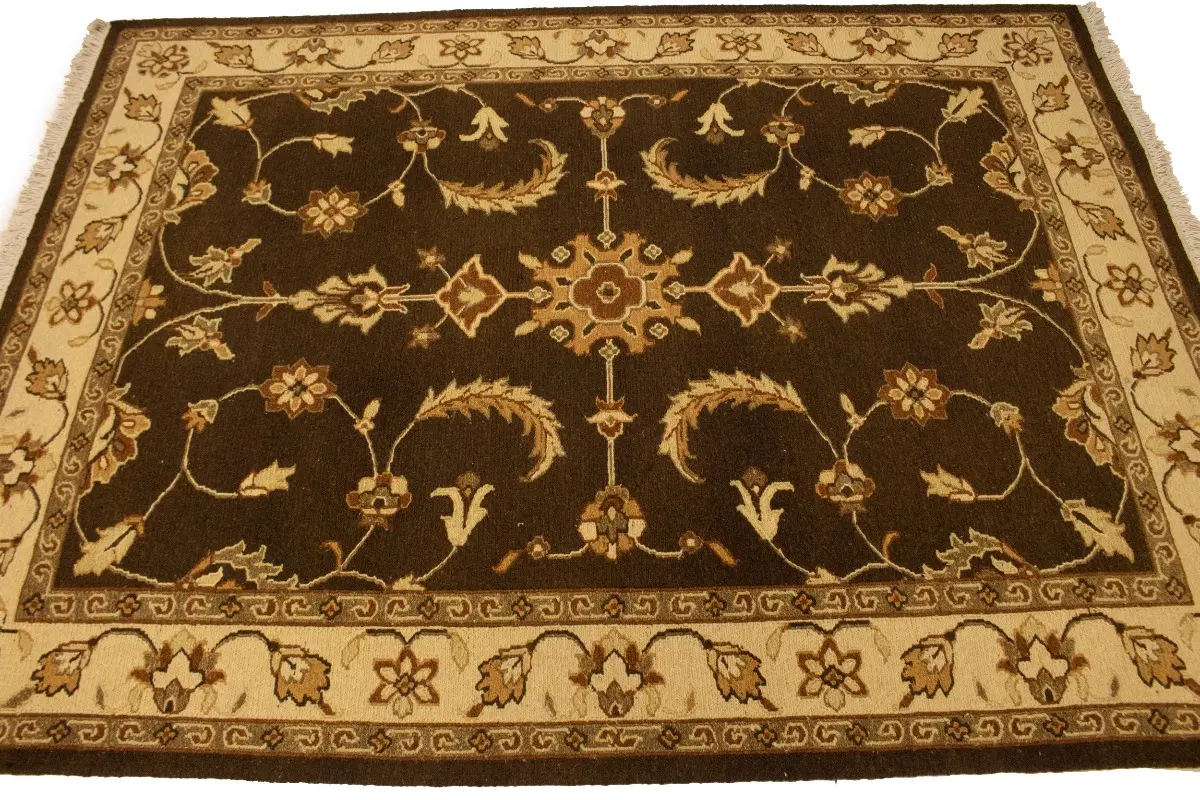 Handmade 5X7 brown Oriental rug made with vegetable dyes (fine wool pile and cotton foundation), superior knot count, and appealing ancient designs. This Oriental rug never will go out of style and would be among your most valuable treasures.