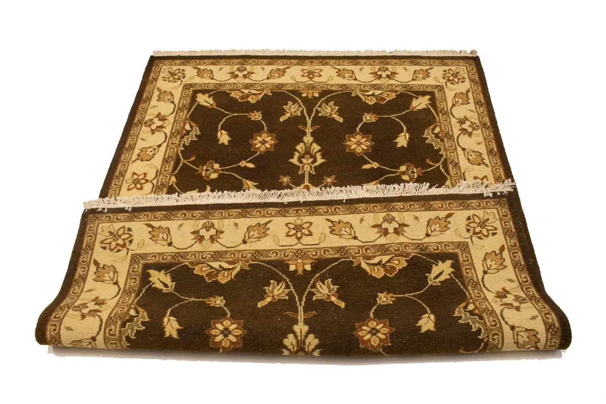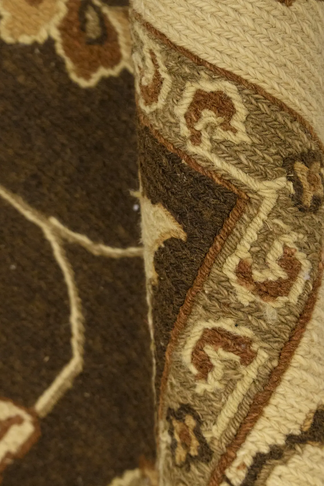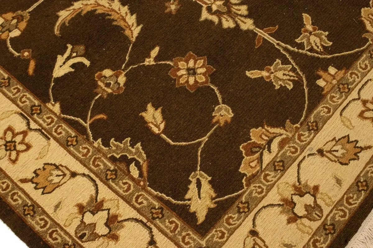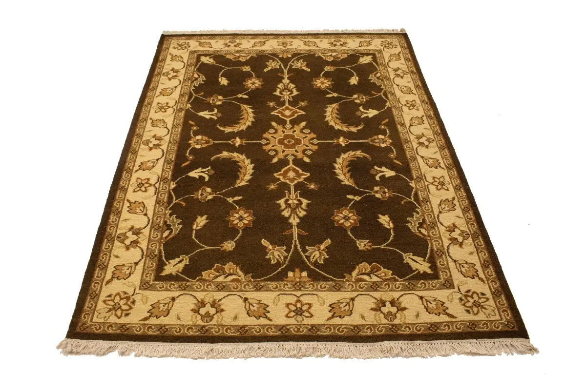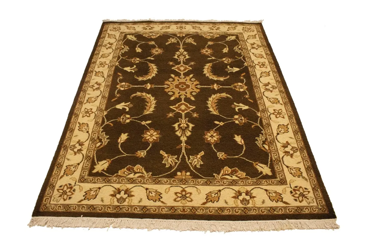 Handmade 5X7 brown Oriental rug made with vegetable dyes (fine wool pile and cotton foundation), superior knot count, and appealing ancient designs. This Oriental rug never will go out of style and would be among your most valuable treasures.