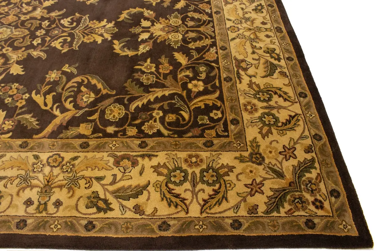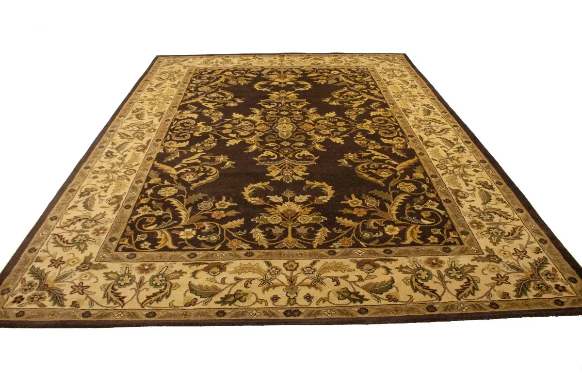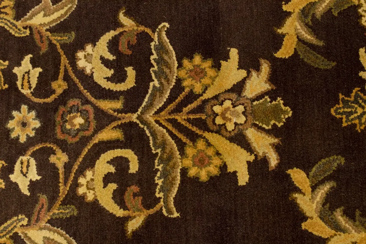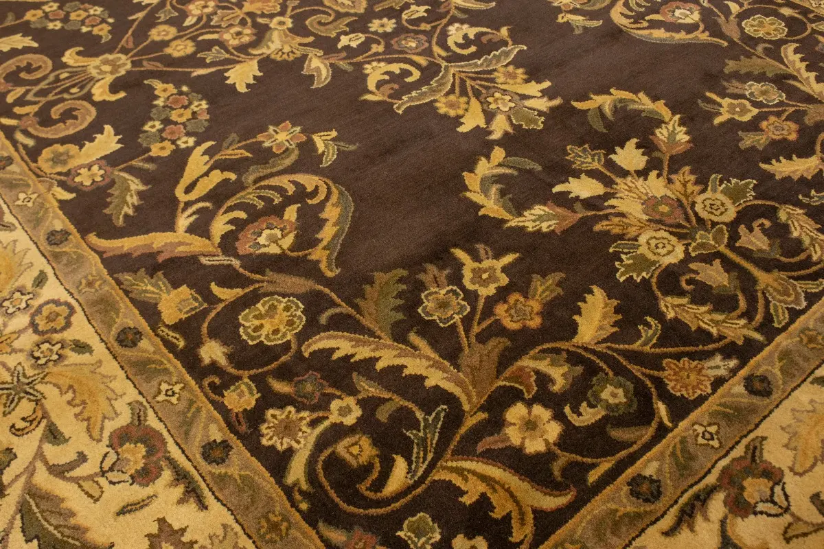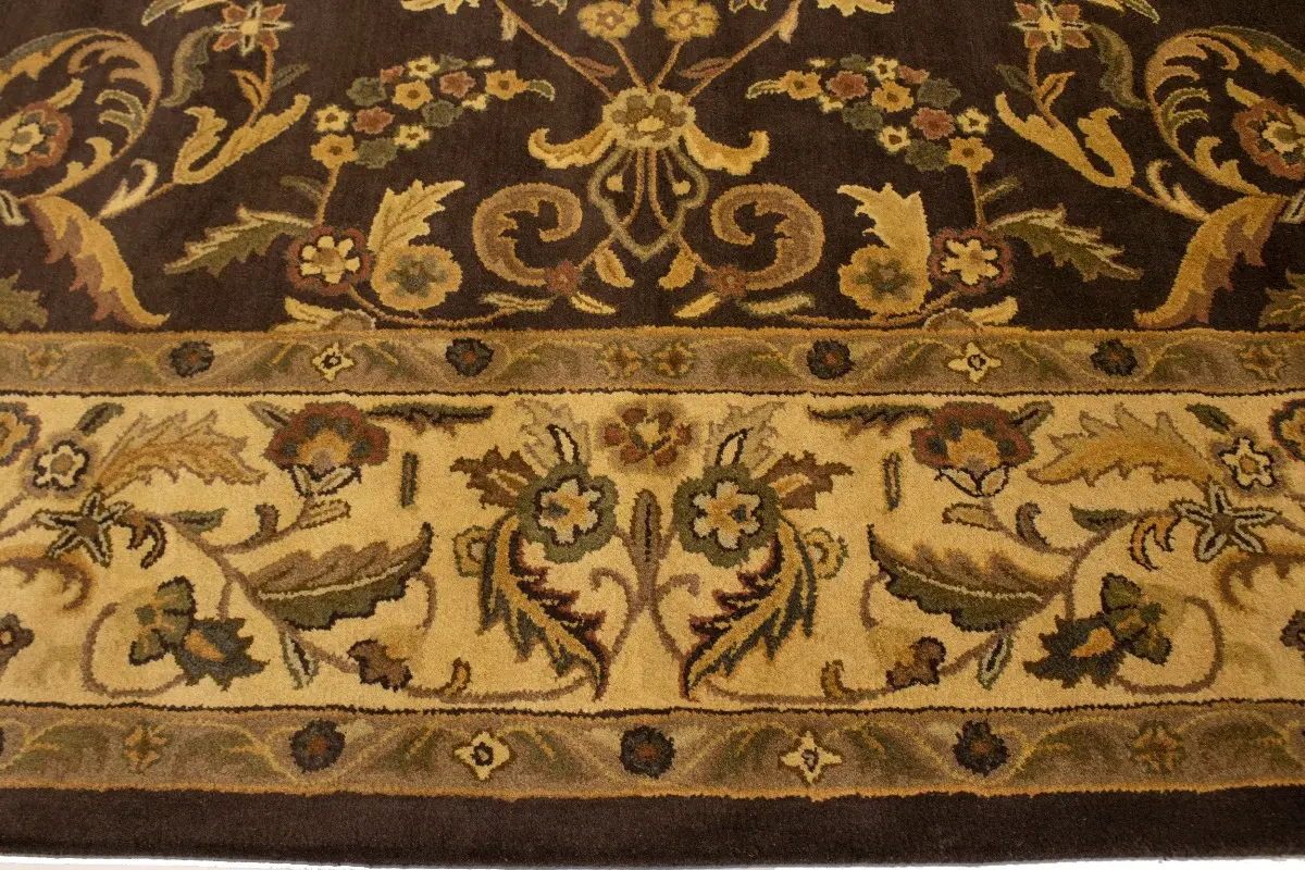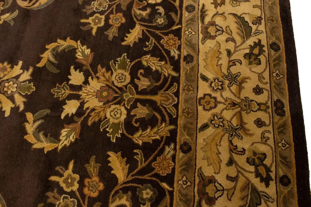 Handmade 9'5X13 dark brown Oriental rug made with vegetable dyes (fine wool pile and cotton foundation), superior knot count, and alluring ancient designs. This Oriental rug never will go out of style and would be among your most valuable treasures.