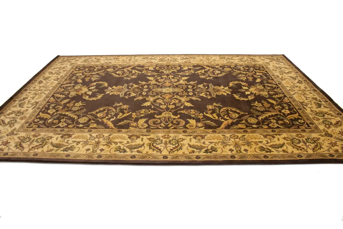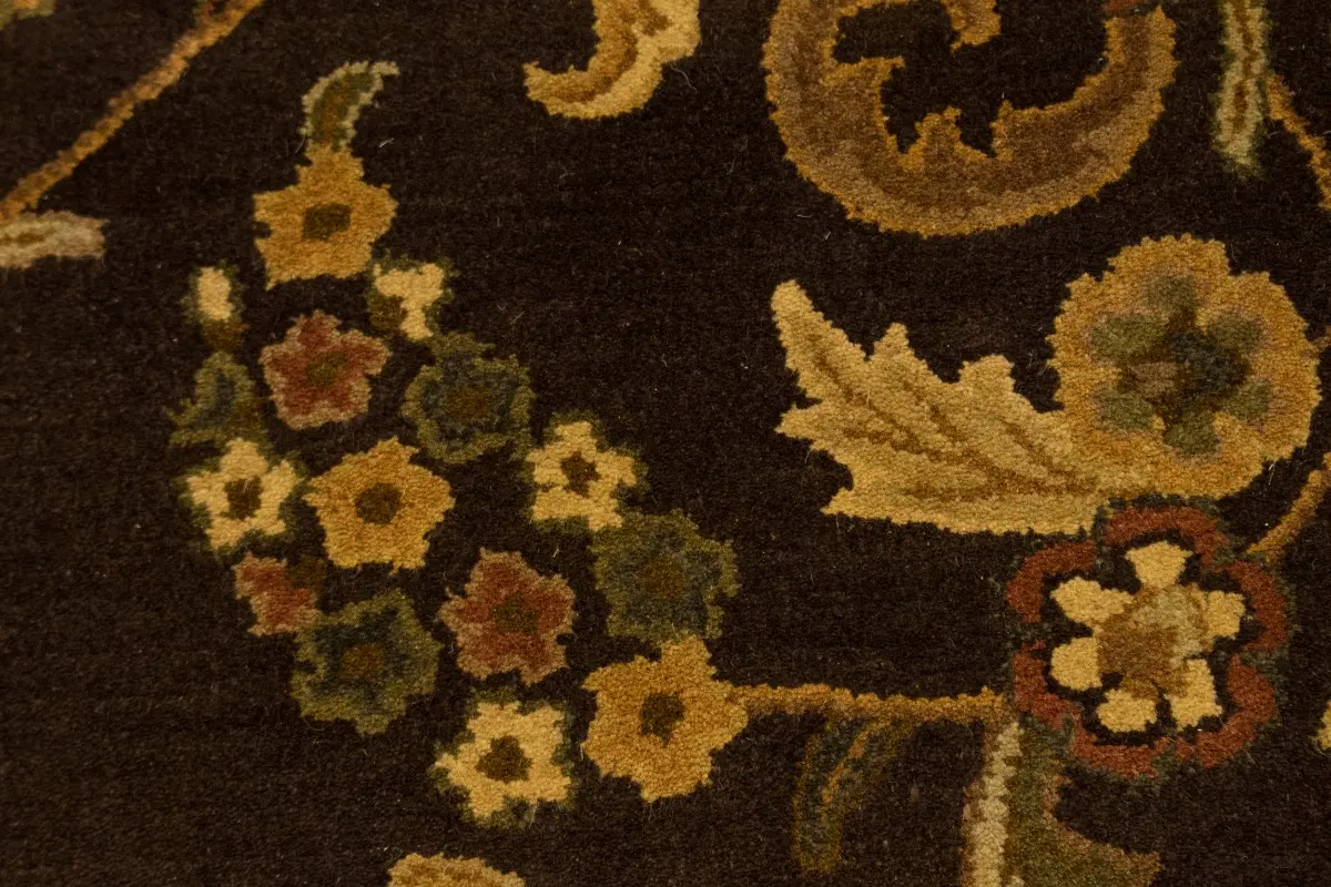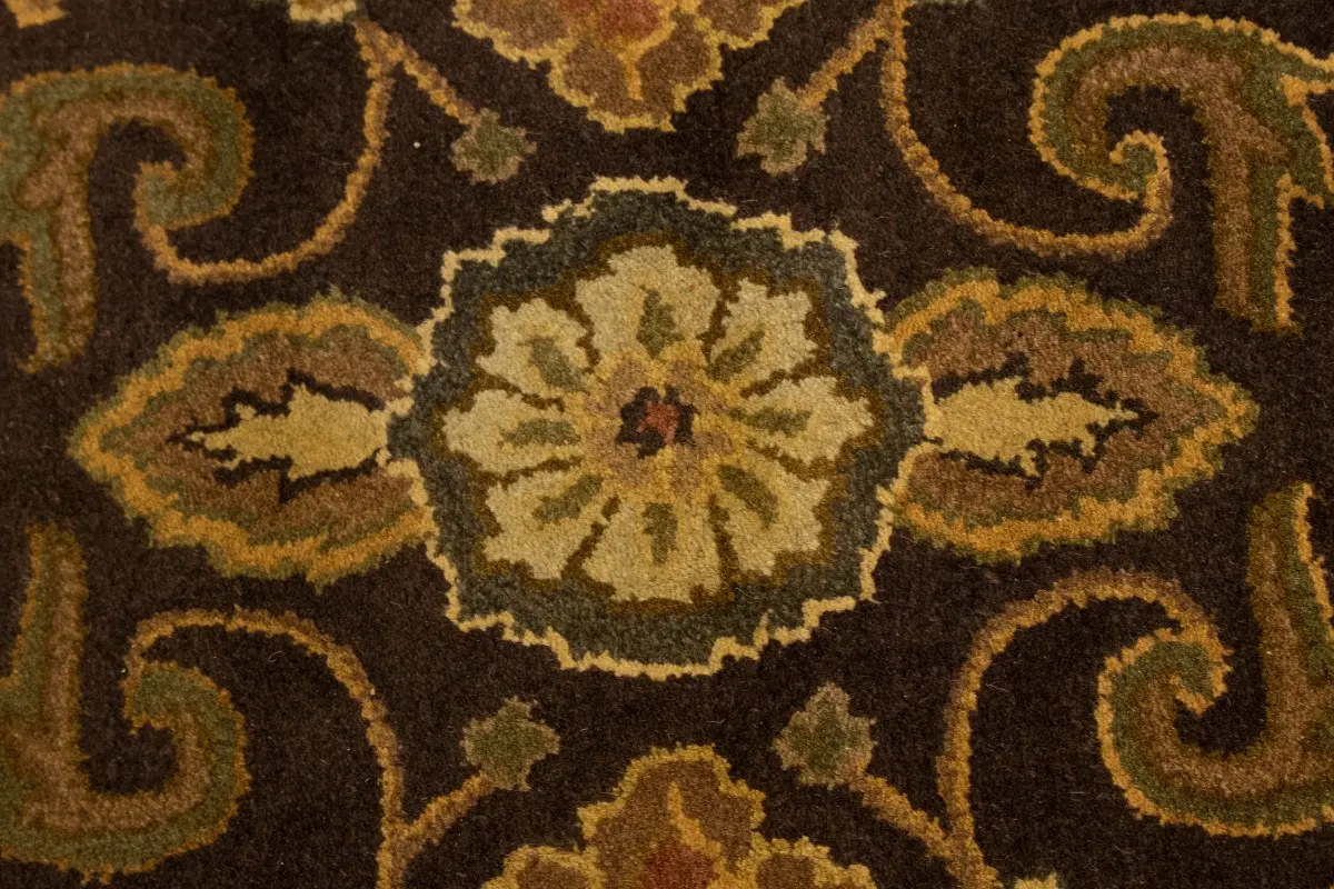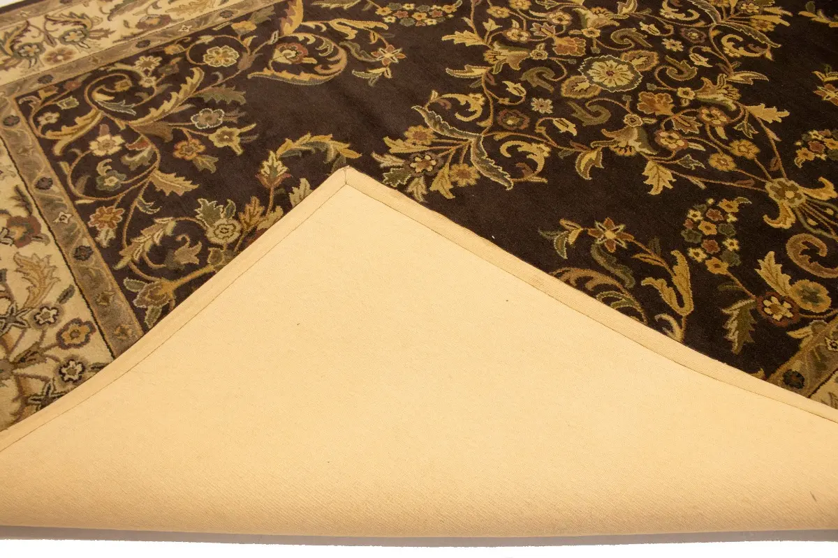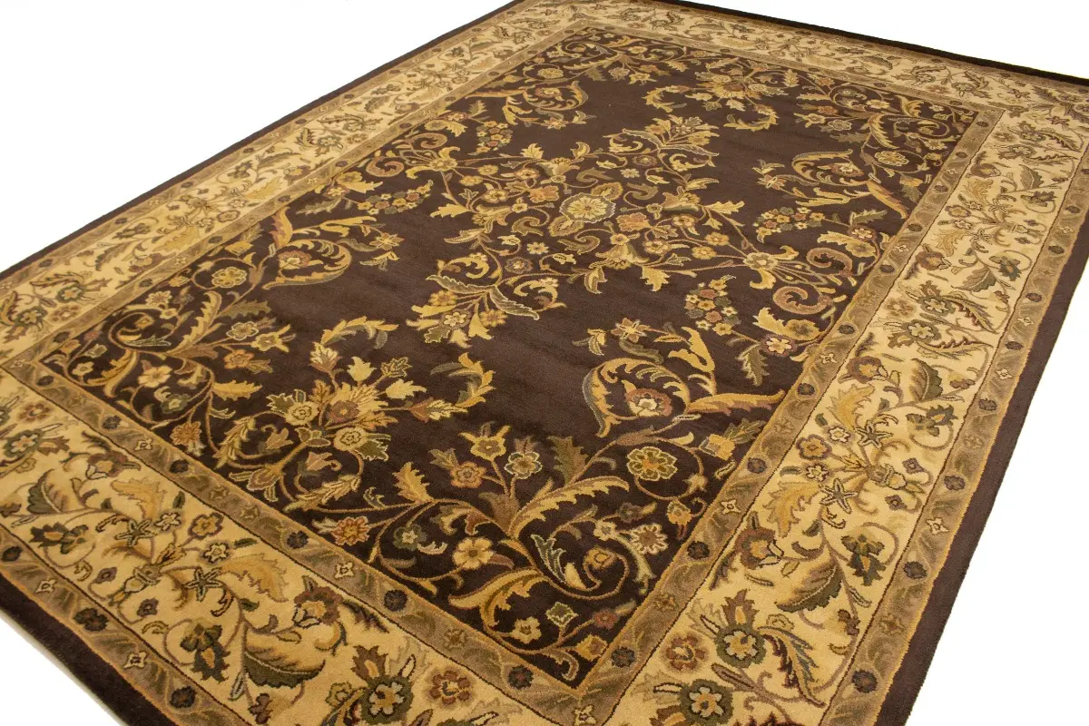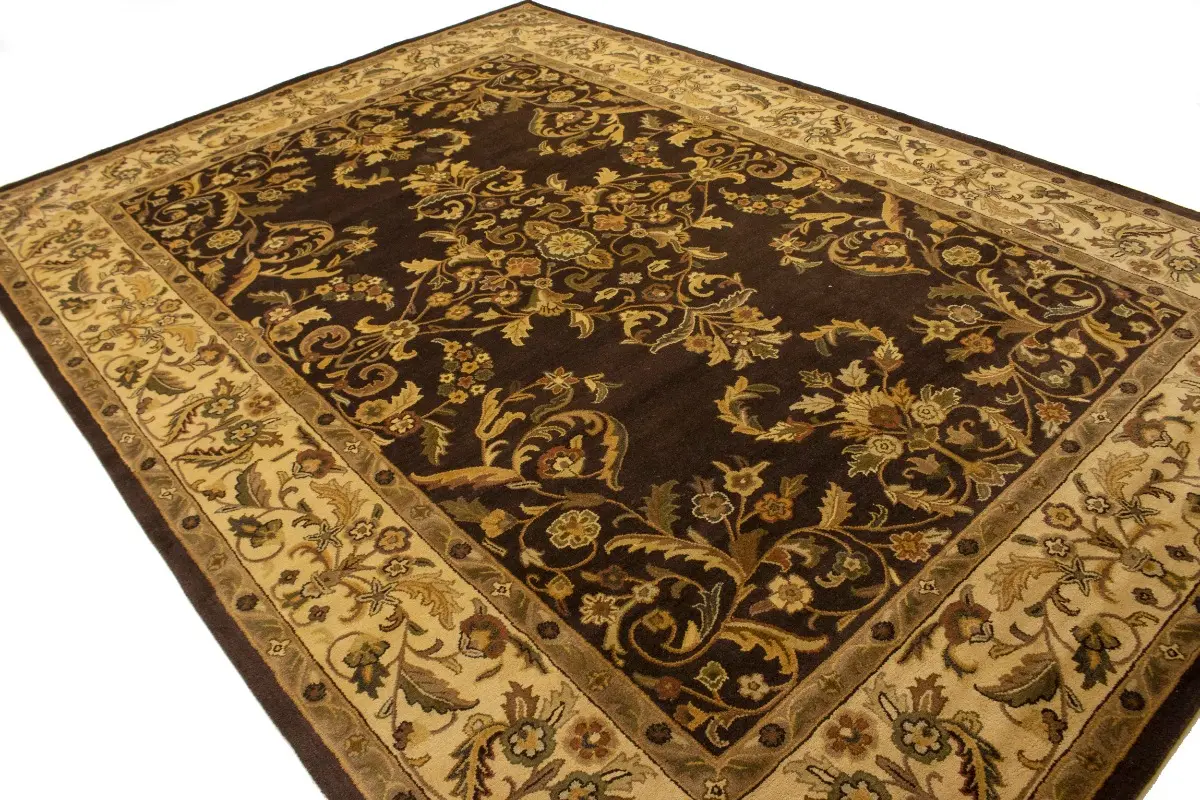 Handmade 9'5X13 dark brown Oriental rug made with vegetable dyes (fine wool pile and cotton foundation), superior knot count, and alluring ancient designs. This Oriental rug never will go out of style and would be among your most valuable treasures.