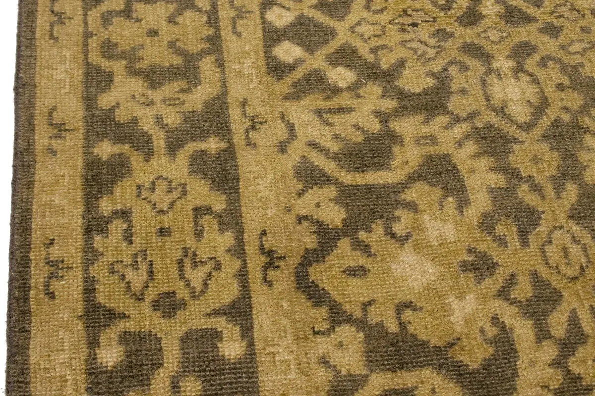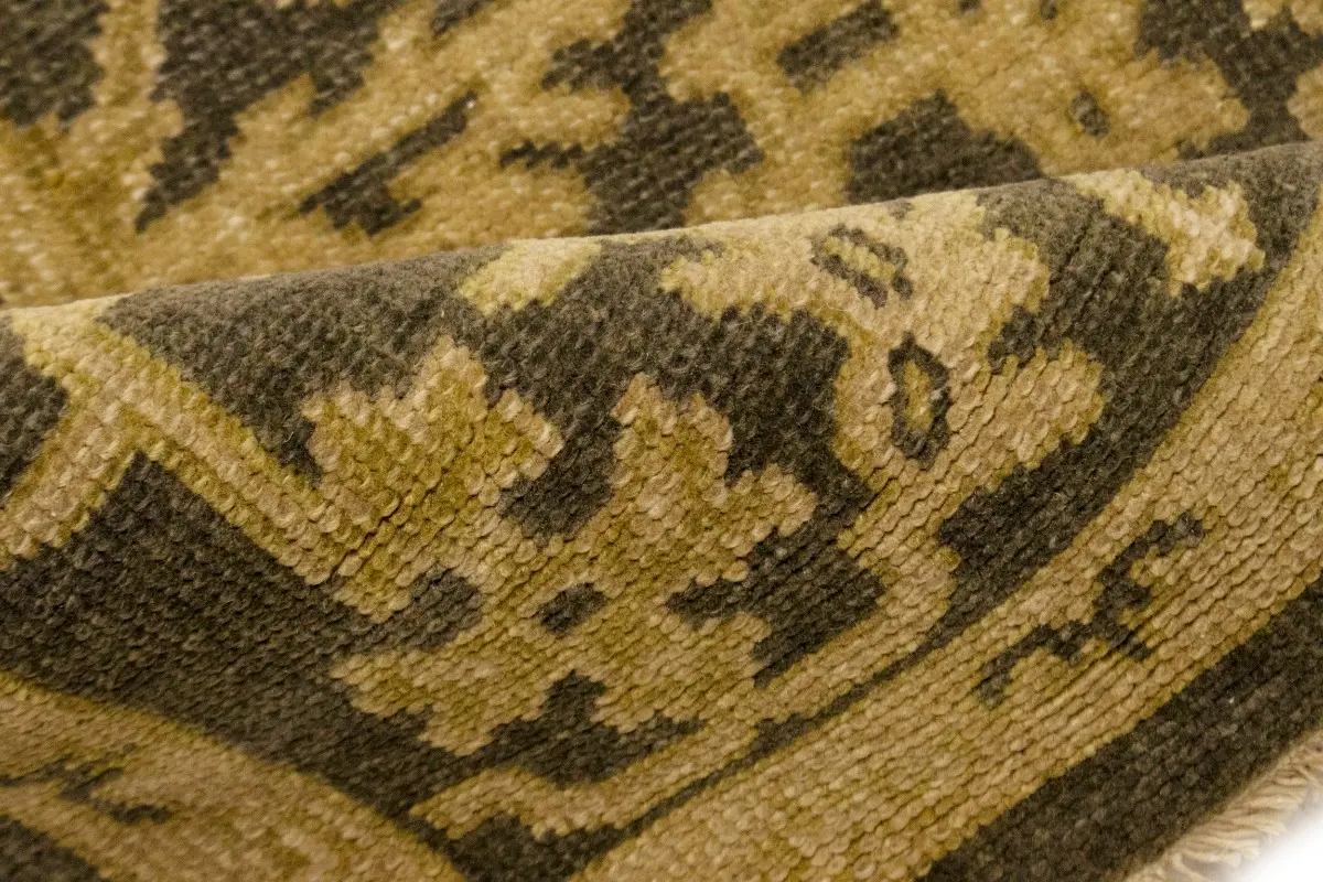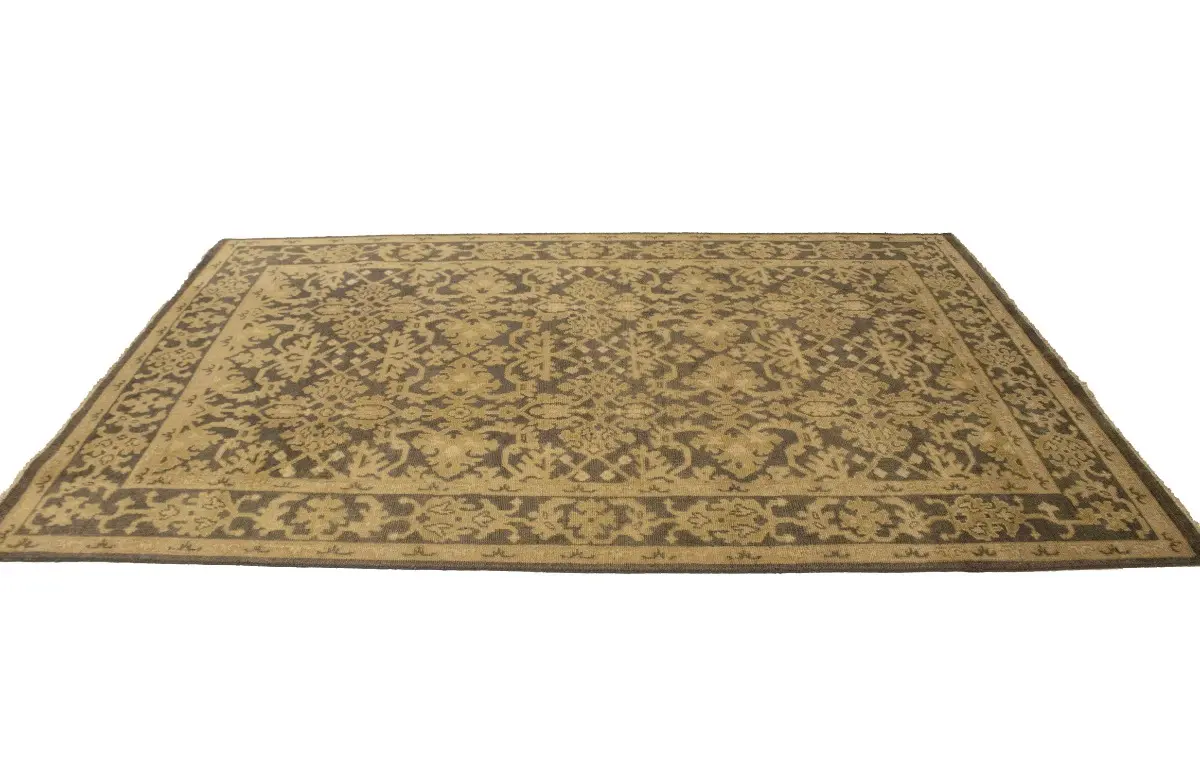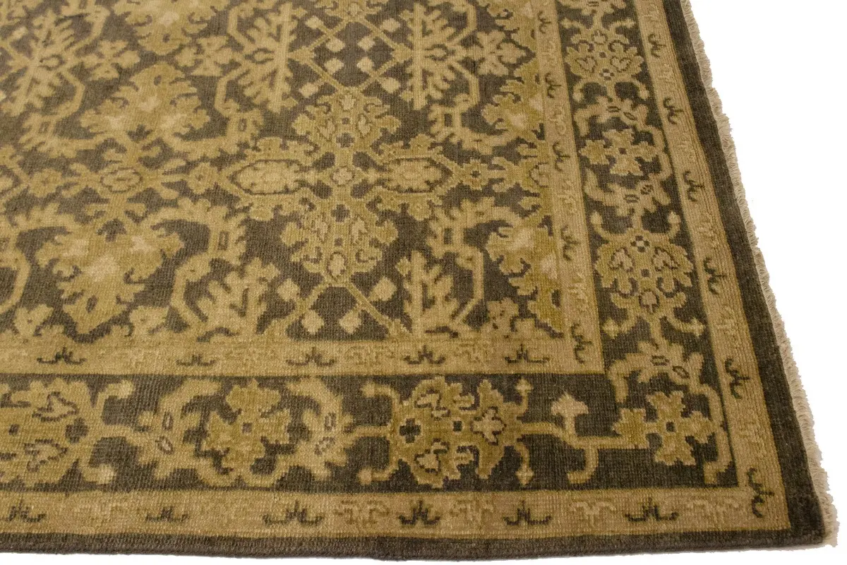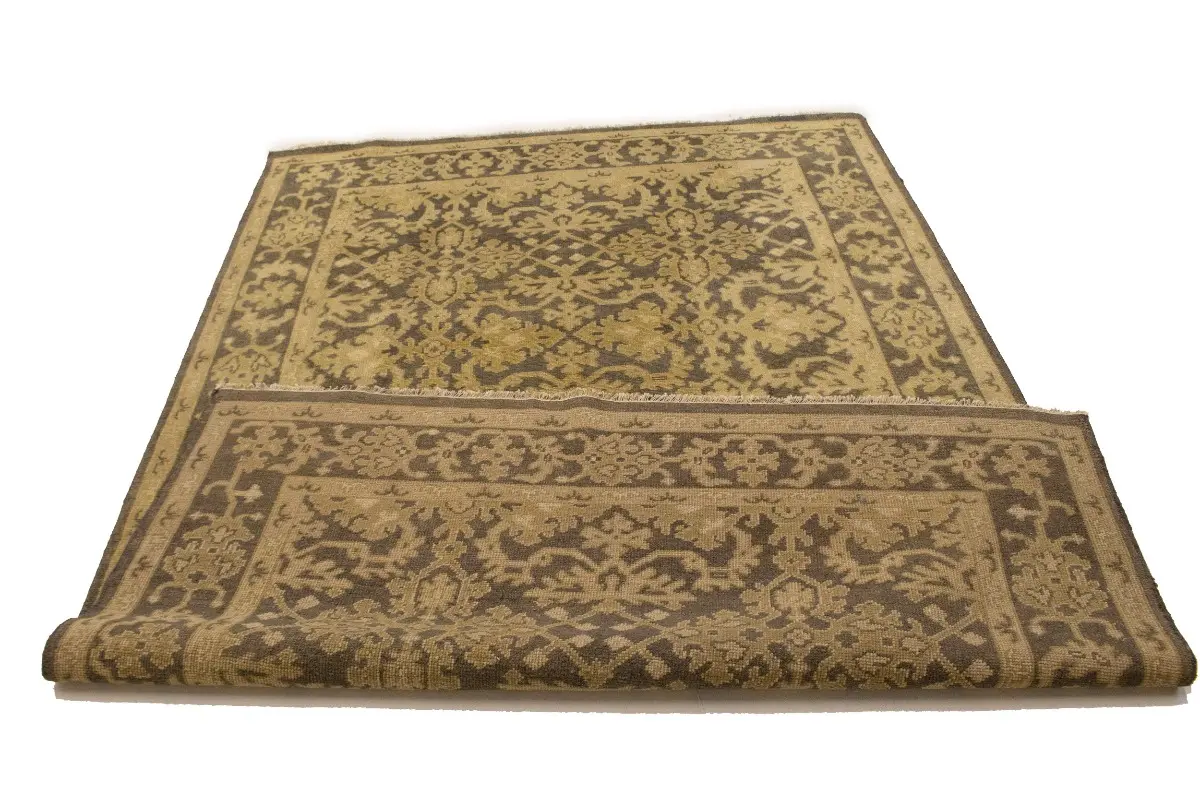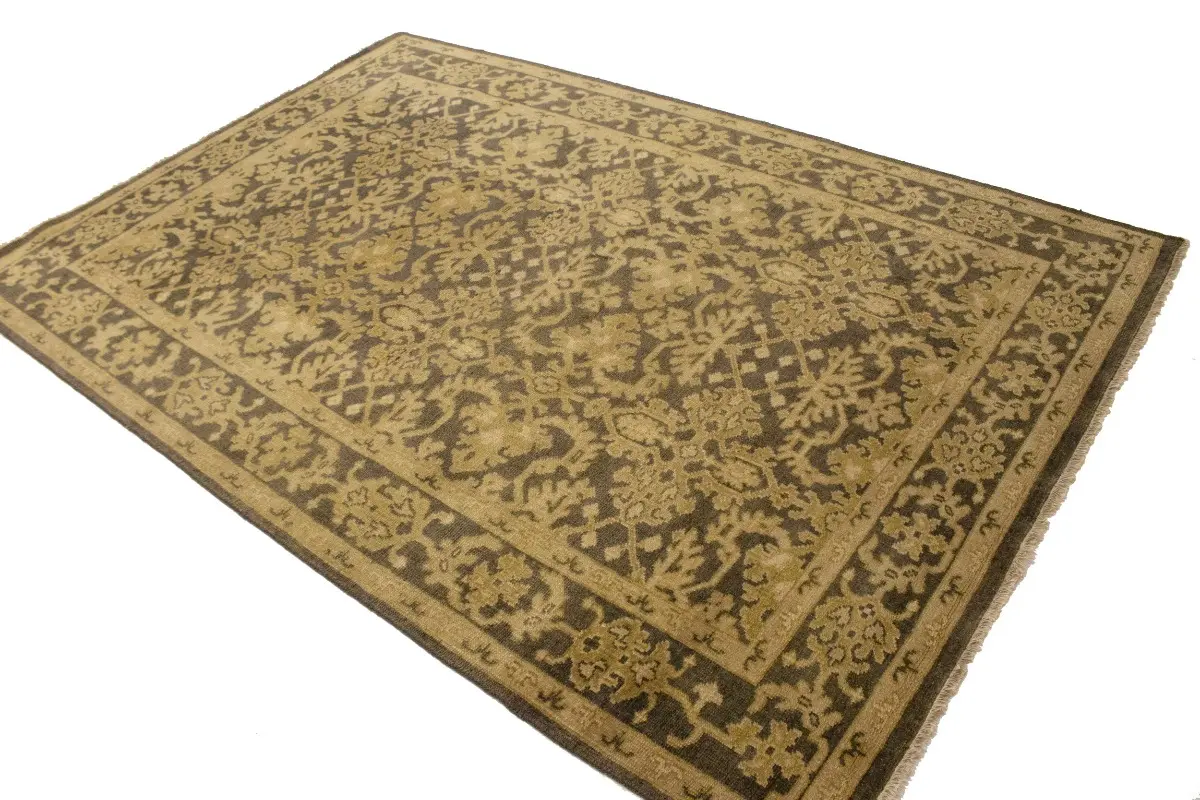 This authentic 6X9 brown new Oriental rug was masterly knotted by the hands of weavers inspired by a variety of wonderful artistic designs, to recreate the aged look of the original piece with a richness of color and intricate patterned background field. What set this vintage style Oriental area rug from the others are the material and dye used (wool pile and cotton foundation), knot count, antique designs, fantastic grades, and its regional historical connection: it has deep roots, from the story of the people who produced it to the meaning of the symbols and colors displayed across its canvas that have been praised for centuries. This Indian home décor carpet will be completely cozy and inviting that never will go out of style! Also, this Oriental rug would be among your most valuable treasures, it is a great investment that accrues value over time, and it will last for generations because was woven with high-quality, all-natural wool. Environmentally friendly, opulent yet affordable; this rug will give you a thorough amount of character to help define your living space with luxury and warmth that will capture the eyes and attention of your audience (homeowners, designers, decorators, family and friends). OT-6817
