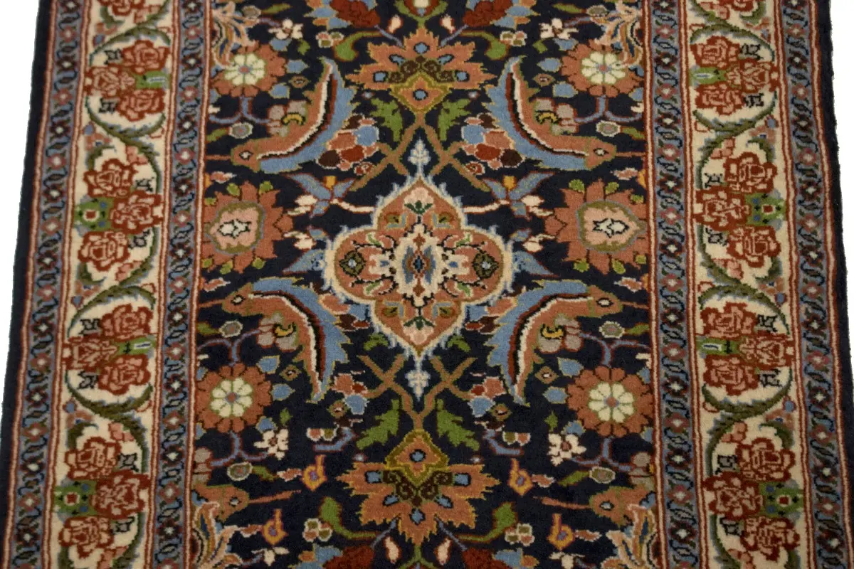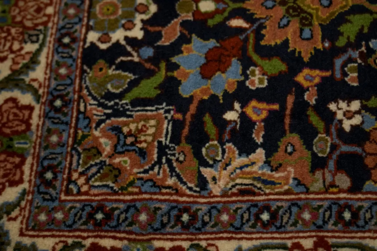 Handmade Persian rug made with vegetable dyes (fine wool pile and cotton foundation), superior knot count, and alluring ancient designs. This Oriental rug never will go out of style and would be among your most valuable treasures.