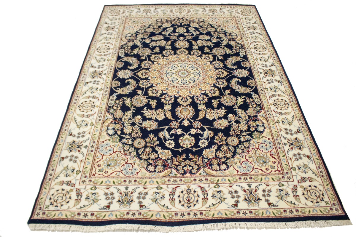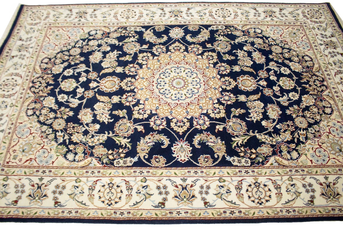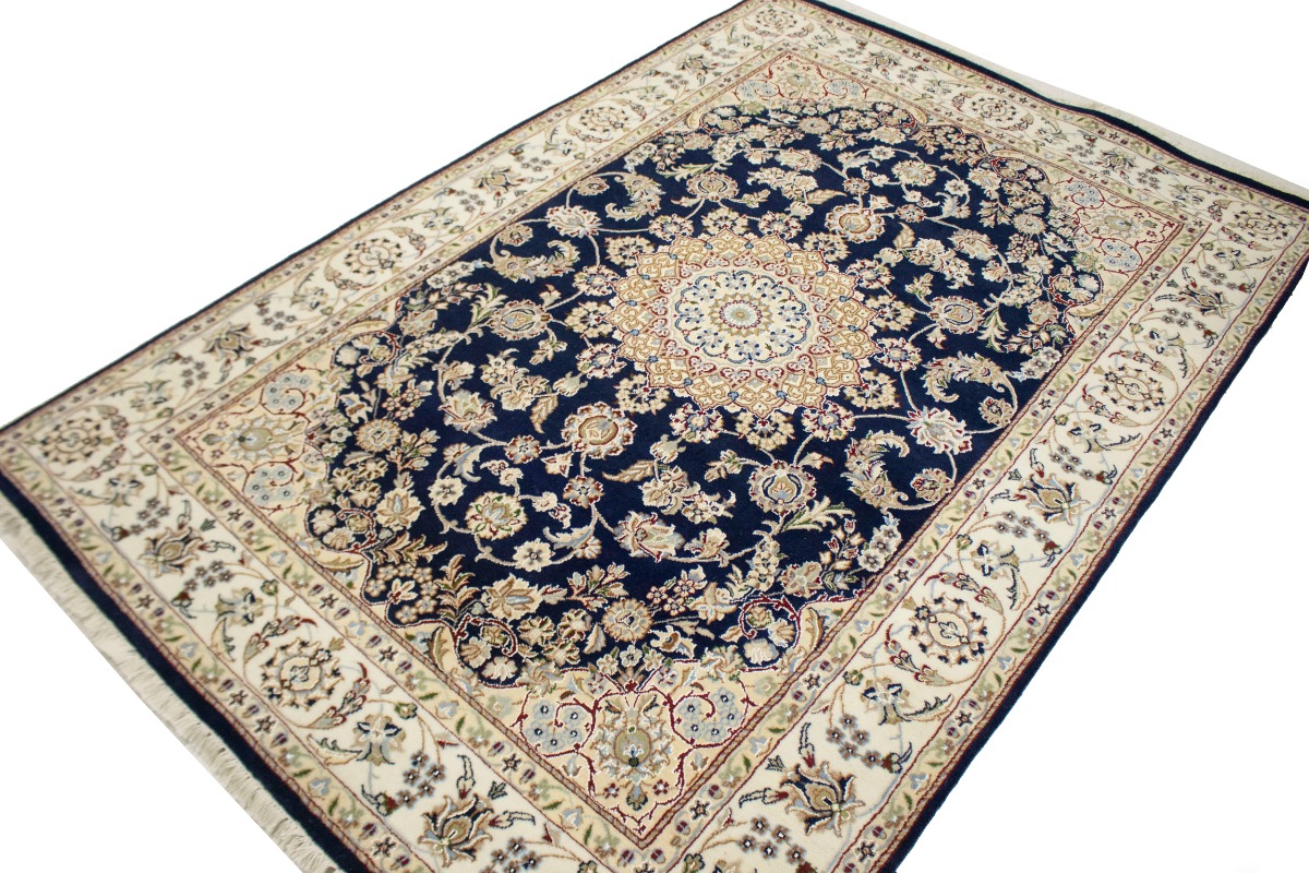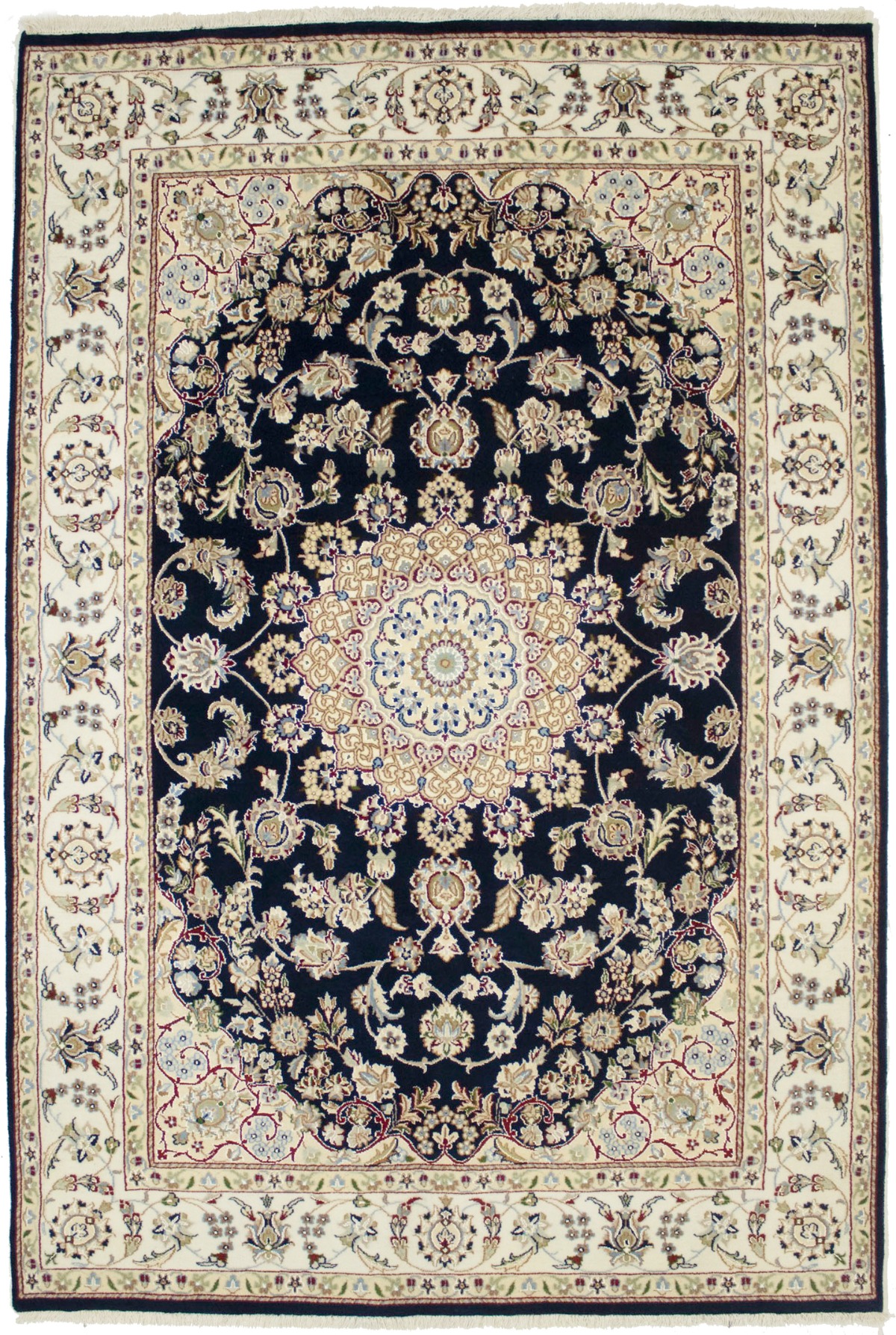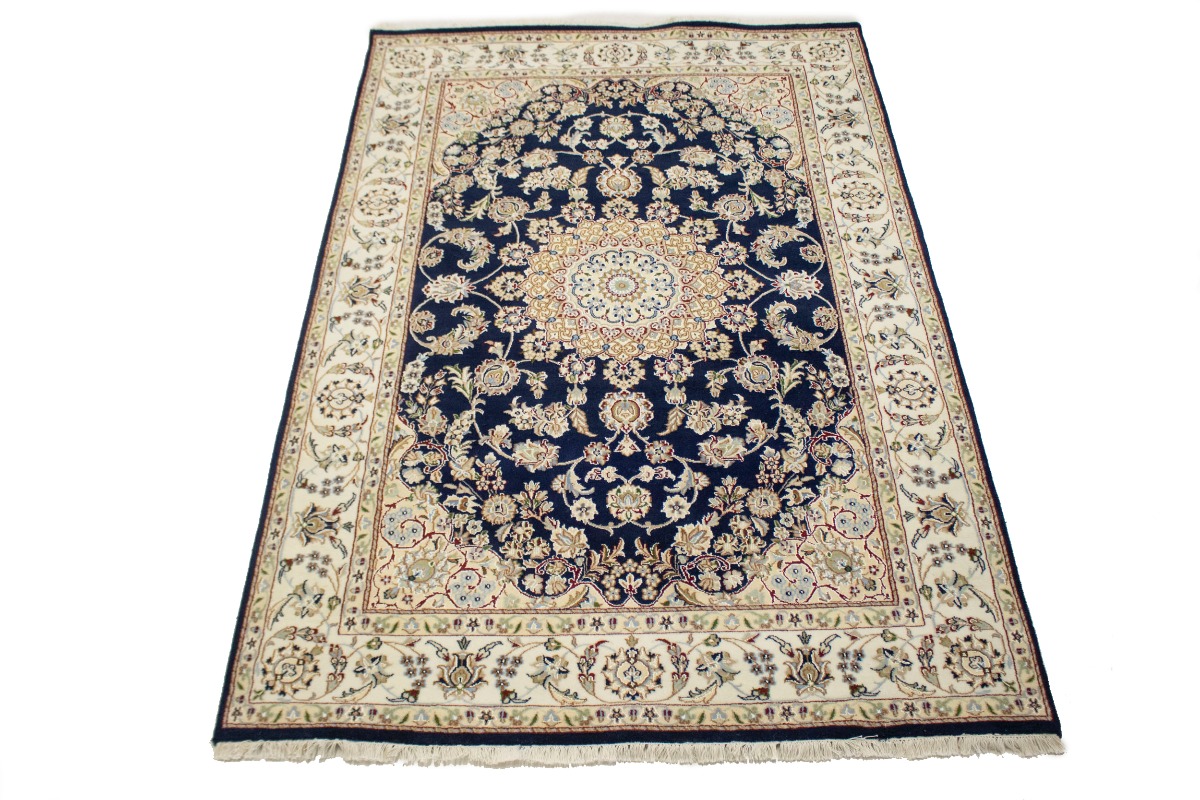 Dark Navy Classic Floral 5'5X8 Indo-Nain Oriental Rug