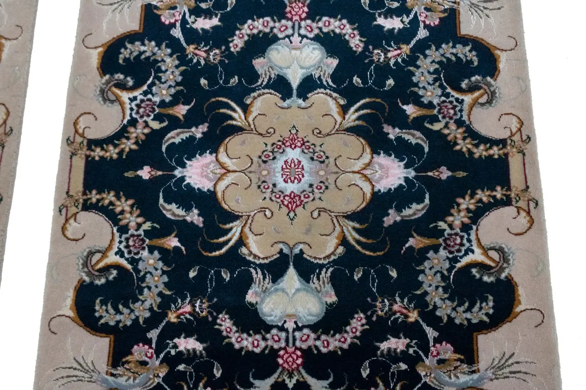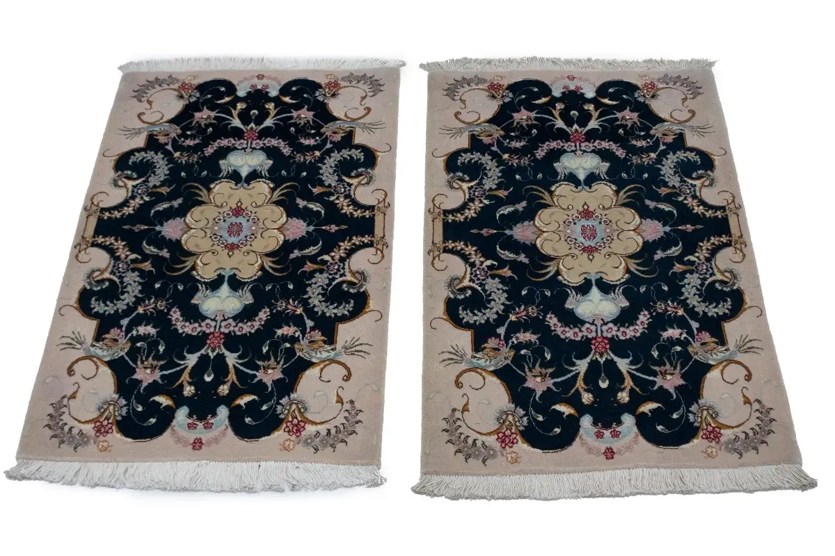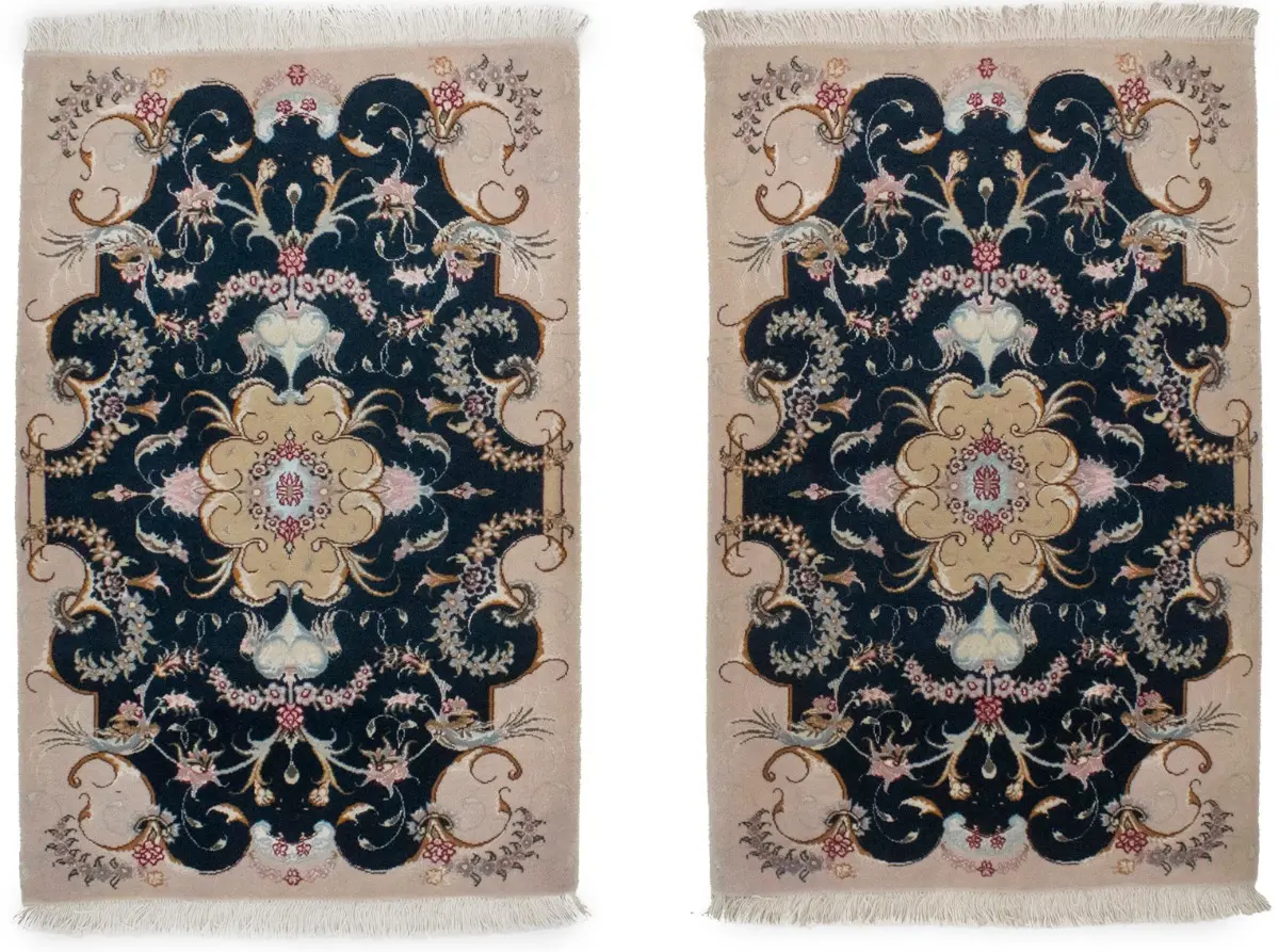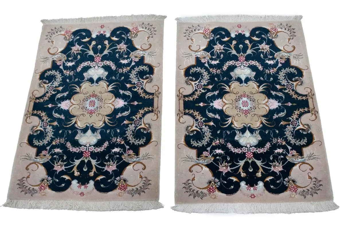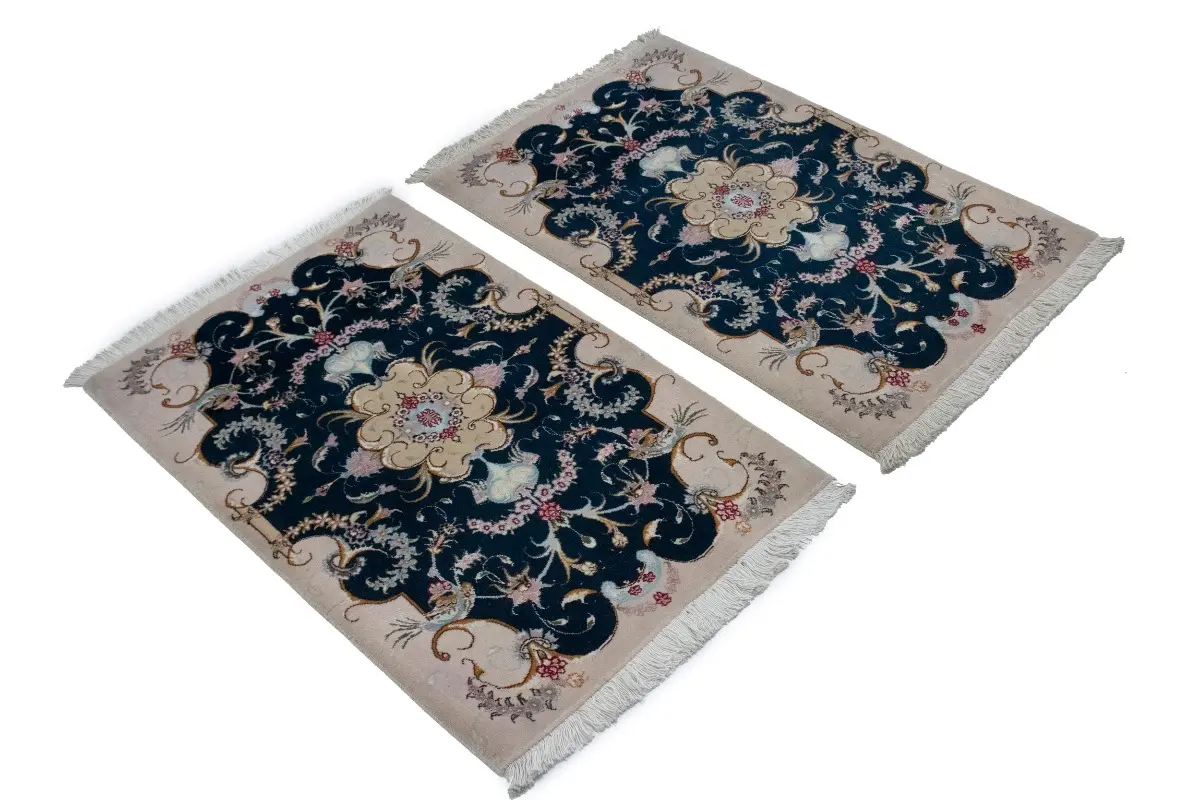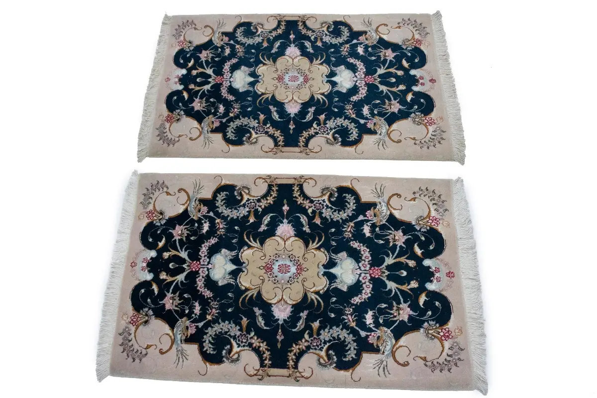 Dark Navy & Cream Traditional 2X3 Pair of Tabriz Persian Rugs
