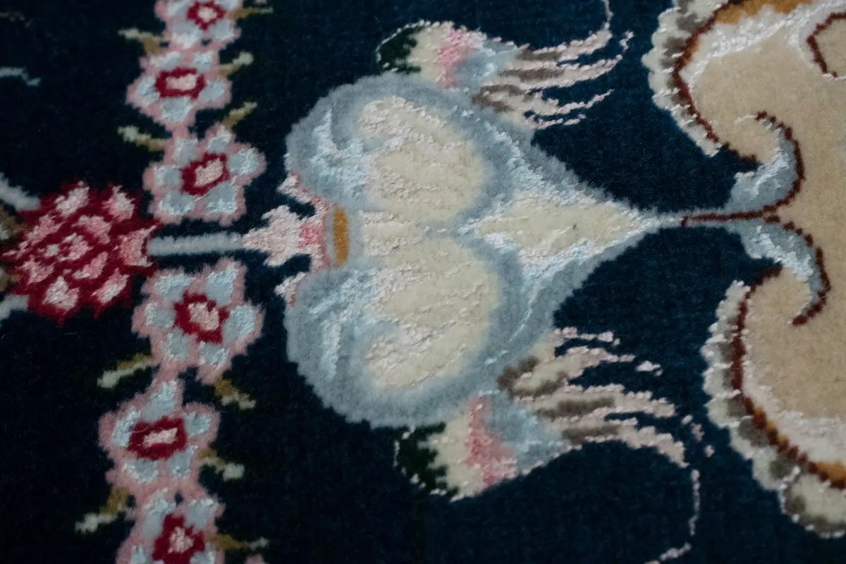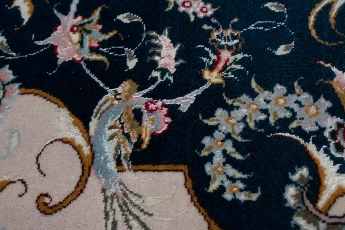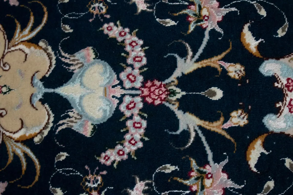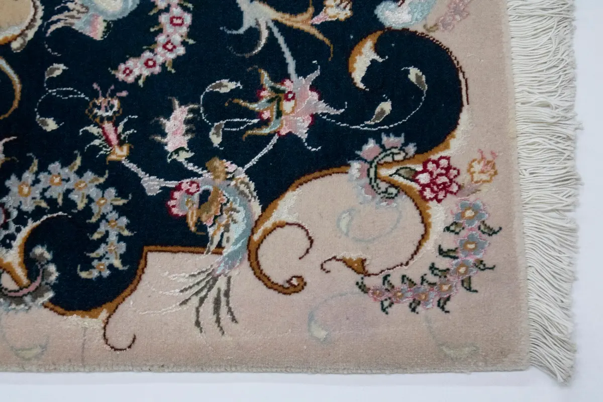 Handmade 2X3 dark navy Persian rug made with vegetable dyes (fine wool pile and cotton foundation), exceptional knot count, and appealing ancient designs. This Oriental rug never will go out of style and would be among your most valuable treasures.
