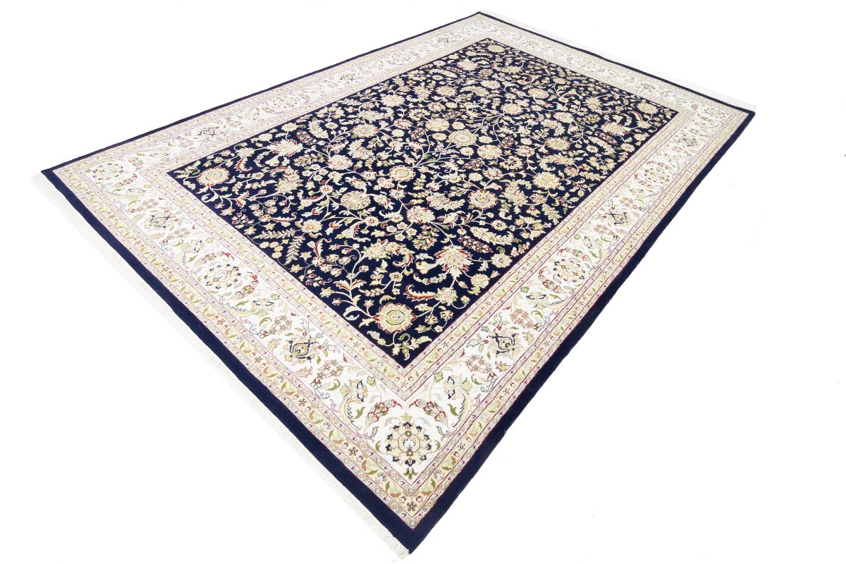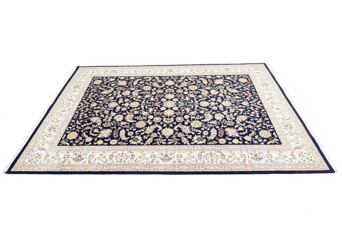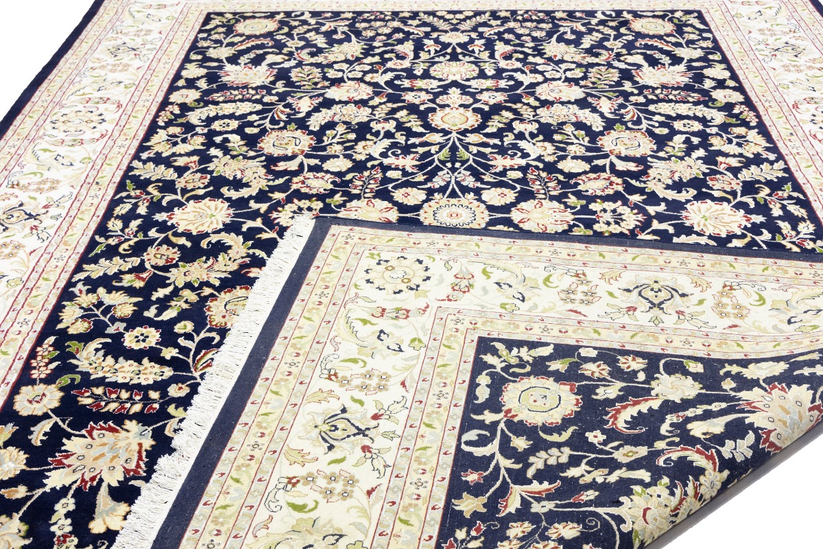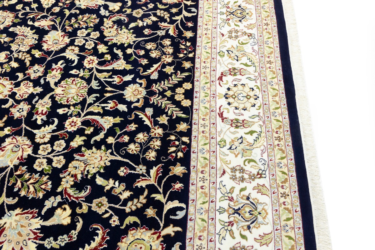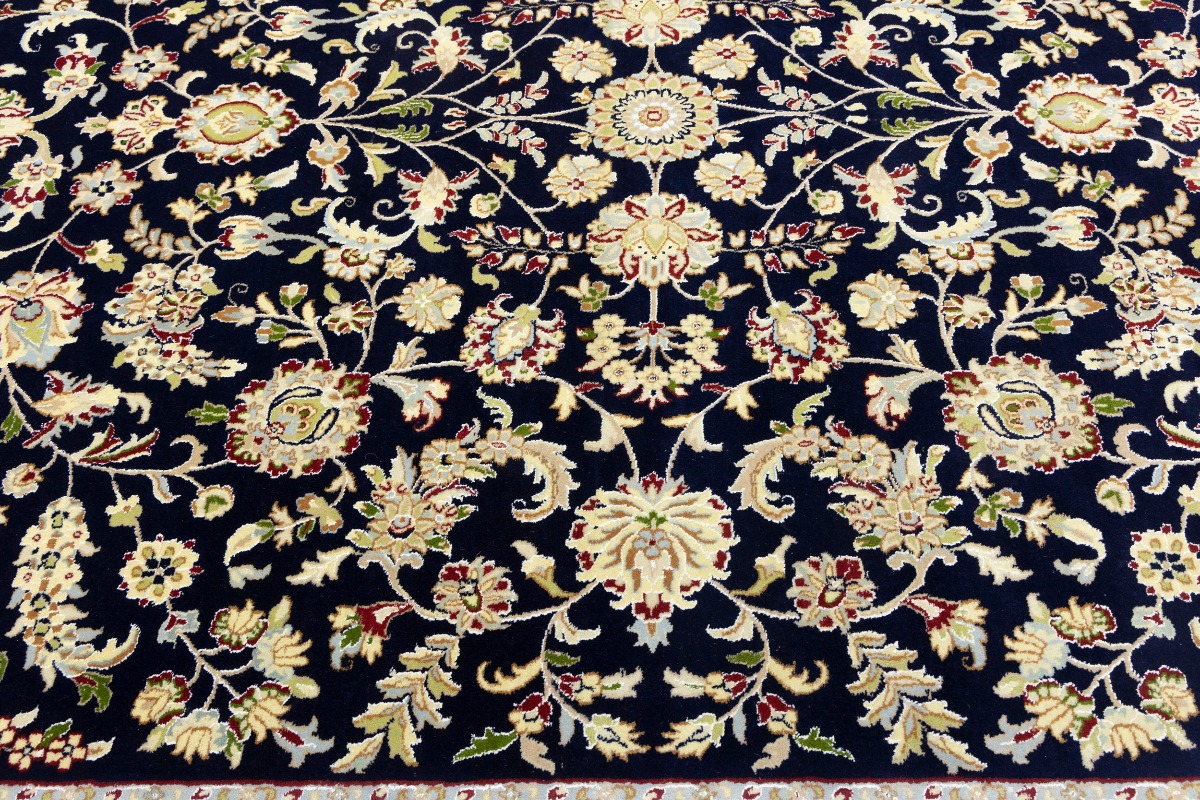 Dark Navy Floral 10X14 Indo-Nain Oriental Rug